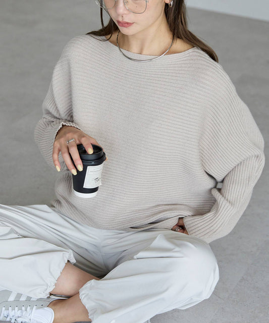 ボトルネックリブニットプルオーバー