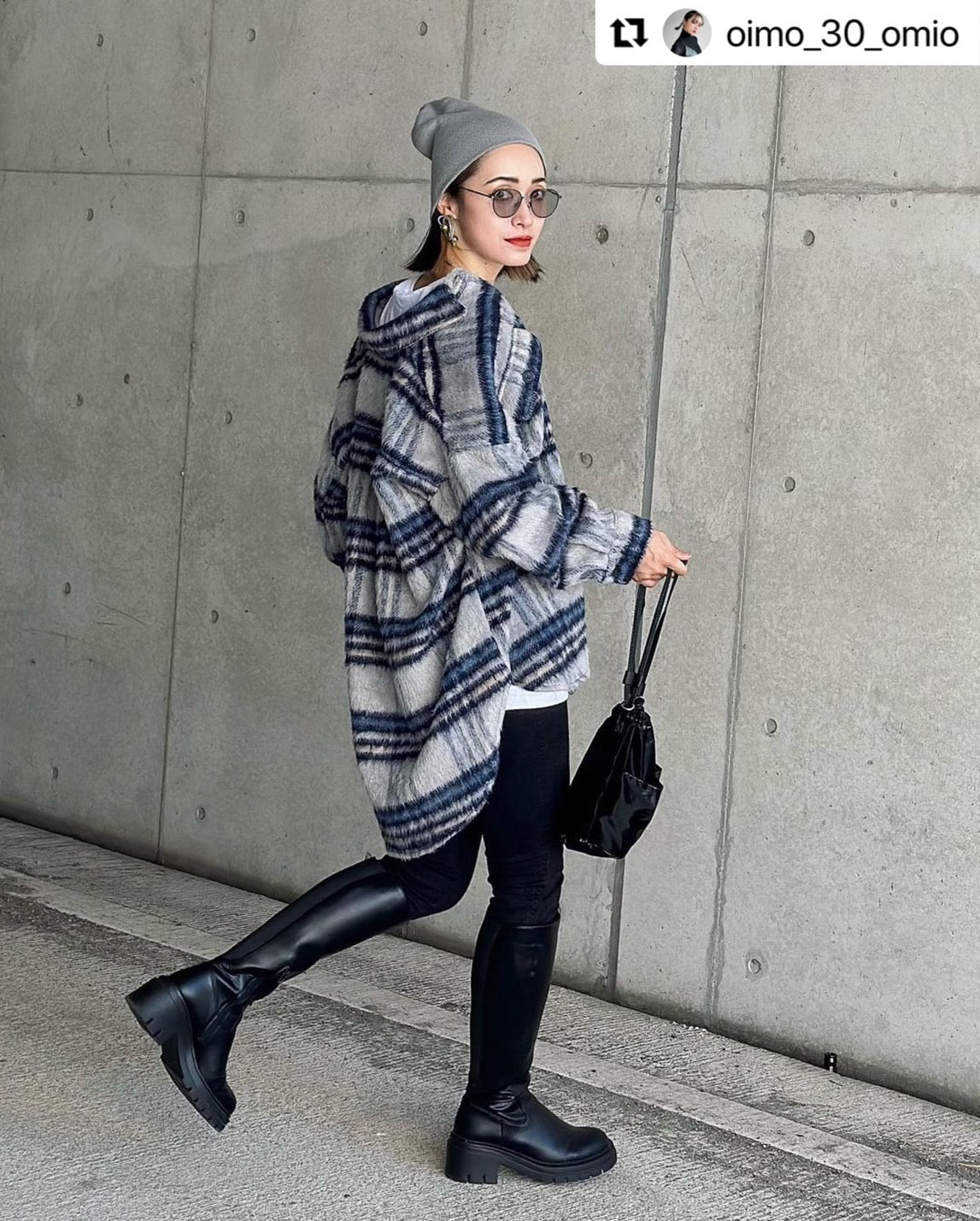 メンズライクなジャケットですが、毛足の長いシャギーにすることでやわらかい印象に♪