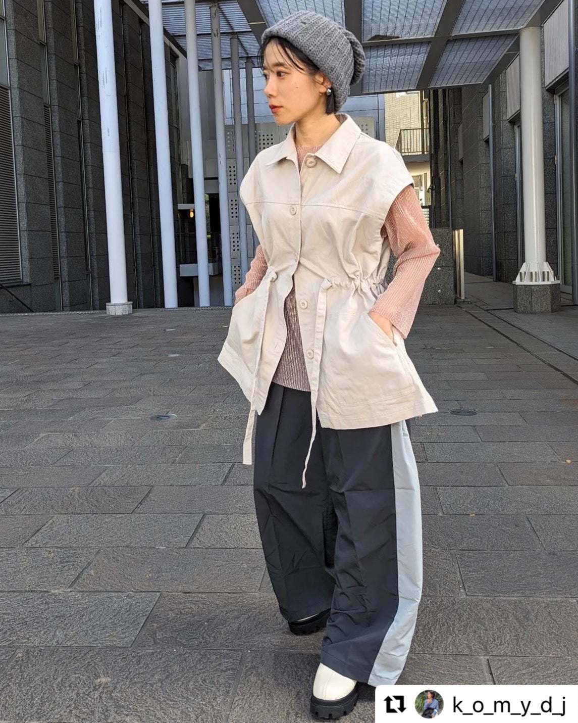 袖の取り外しが可能な2WAY仕様のジャケット。メンズライクなデザインですが、ウエストを絞って着ると程よいバランスに♪ジャケットとベストの2WAYなので、着回しして長いシーズンで着ていただけます。 ※袖の取り外しはボタンの仕様です。
