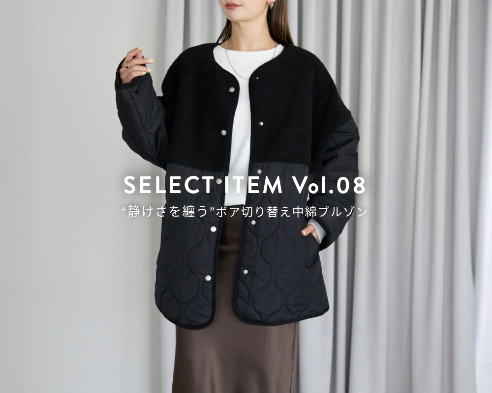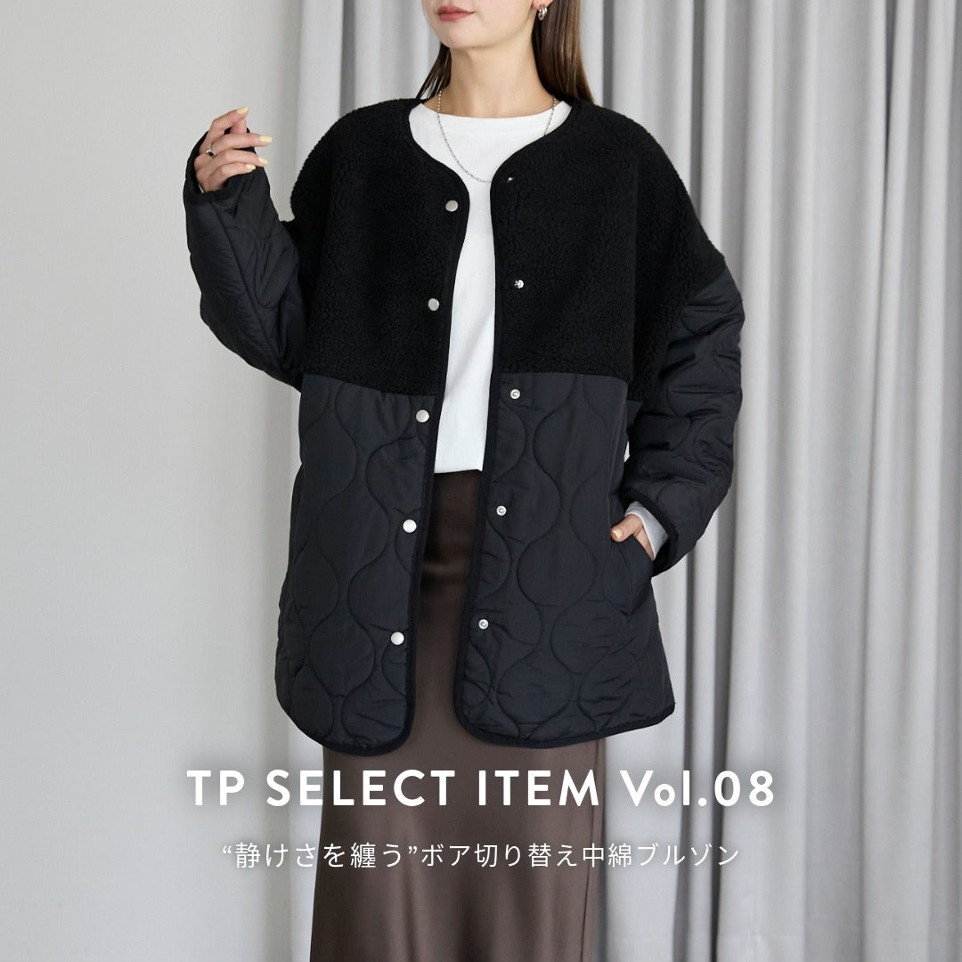 TRIANGLE PALETTE(トライアングルパレット)のアイテムを紹介する「select style」。Vol.8では、毎年大人気のボアブルゾンをPICK UP。ボア切り替え中綿ブルゾン通常¥7,400(税込) /全4色展開(画像ブラック、他アイボリー、カーキ、ブラック×オフ、モカ)