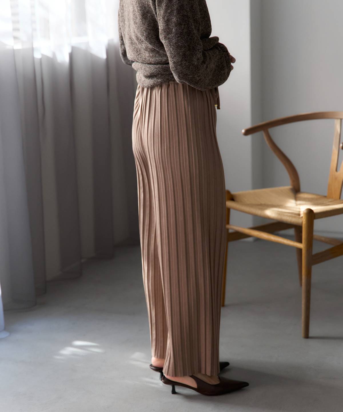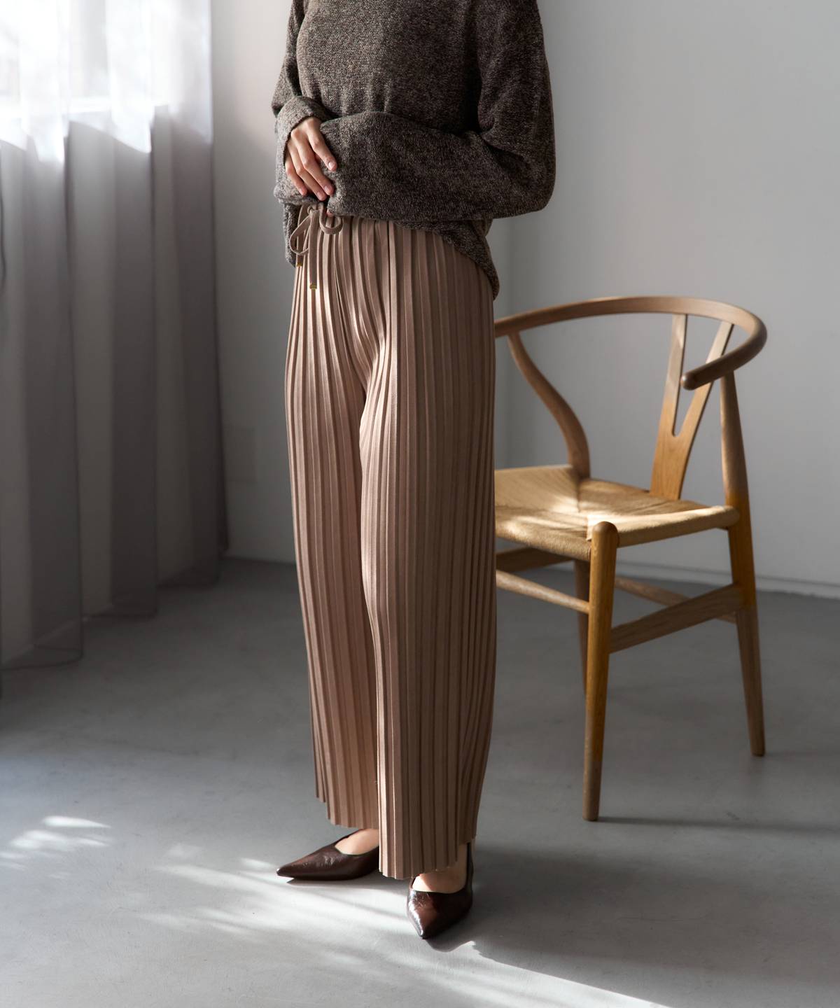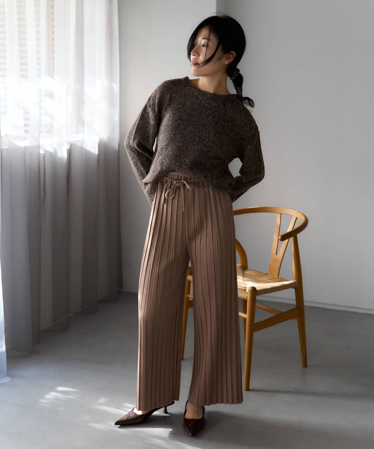 楽ちんパンツですが、スウェードの素材感が高見え効果◎