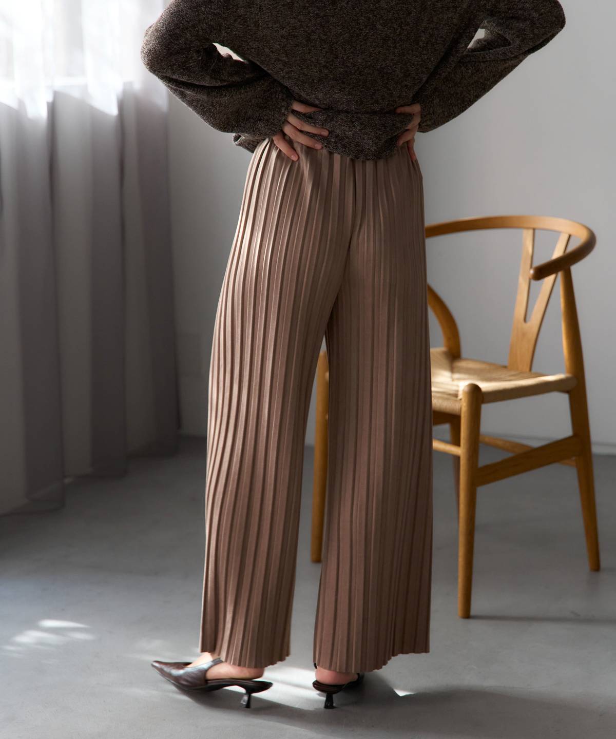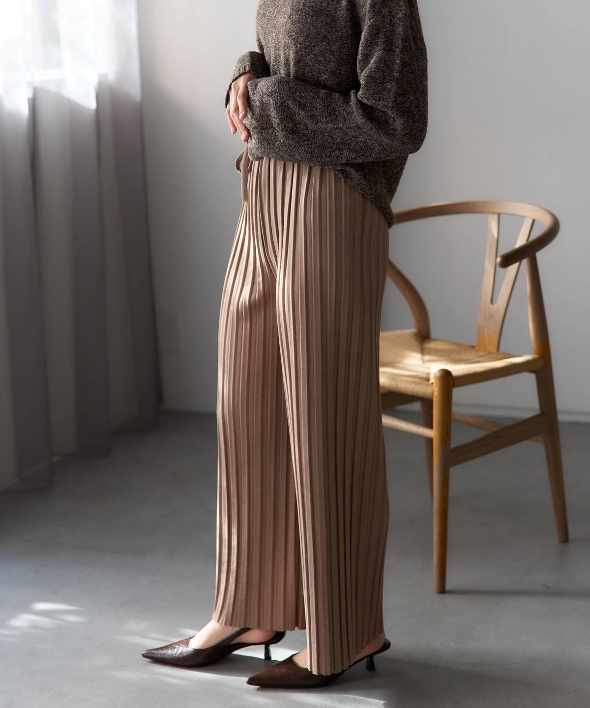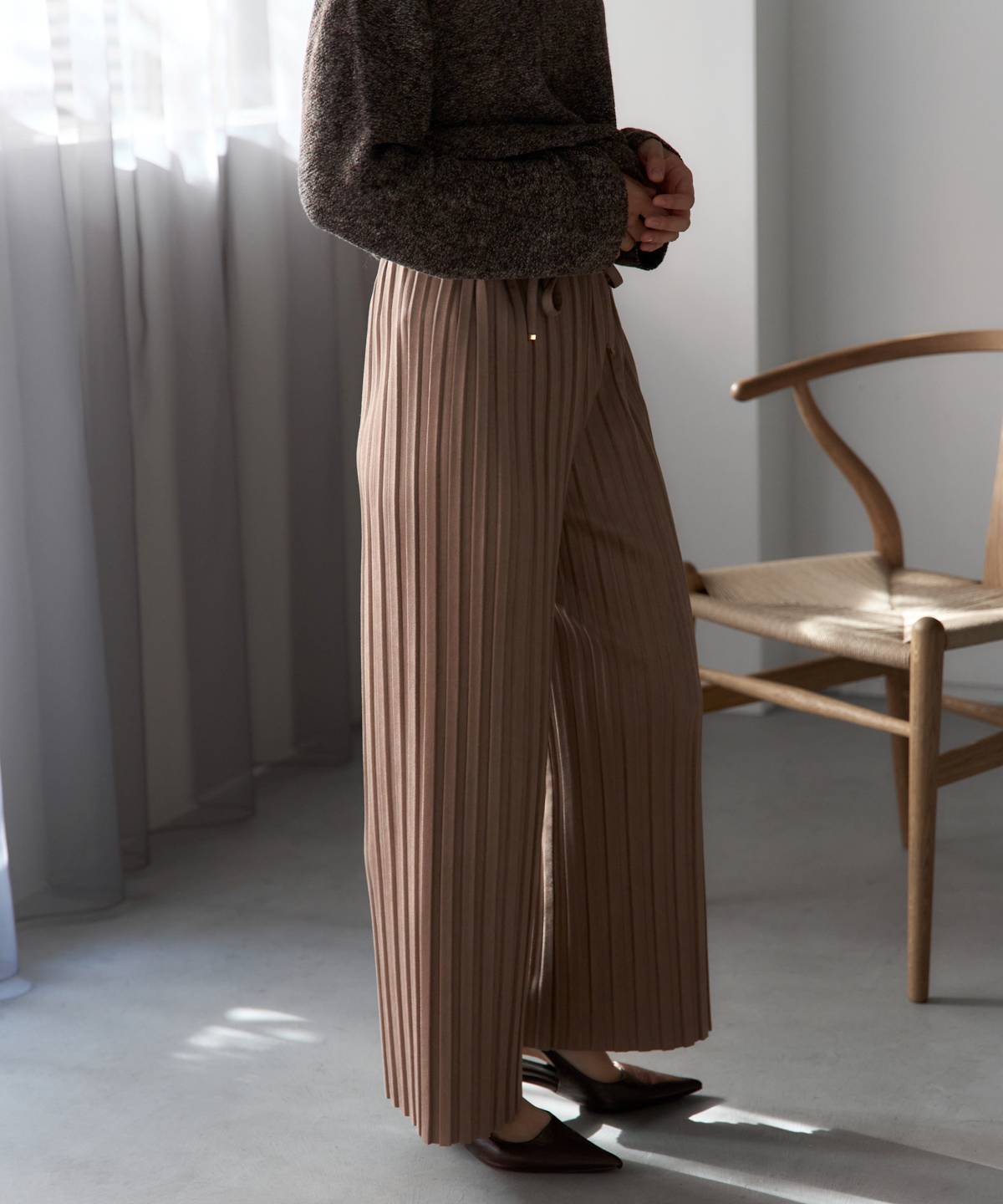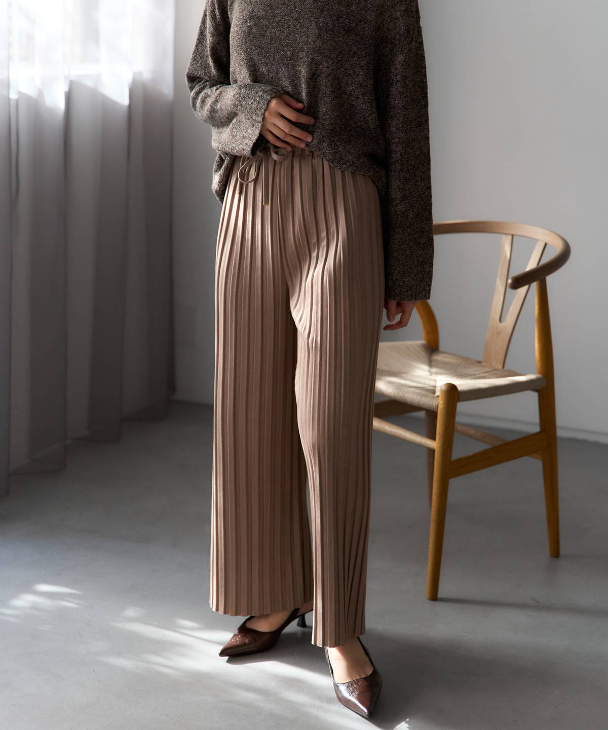 楽ちんパンツですが、スウェードの素材感が高見え効果◎