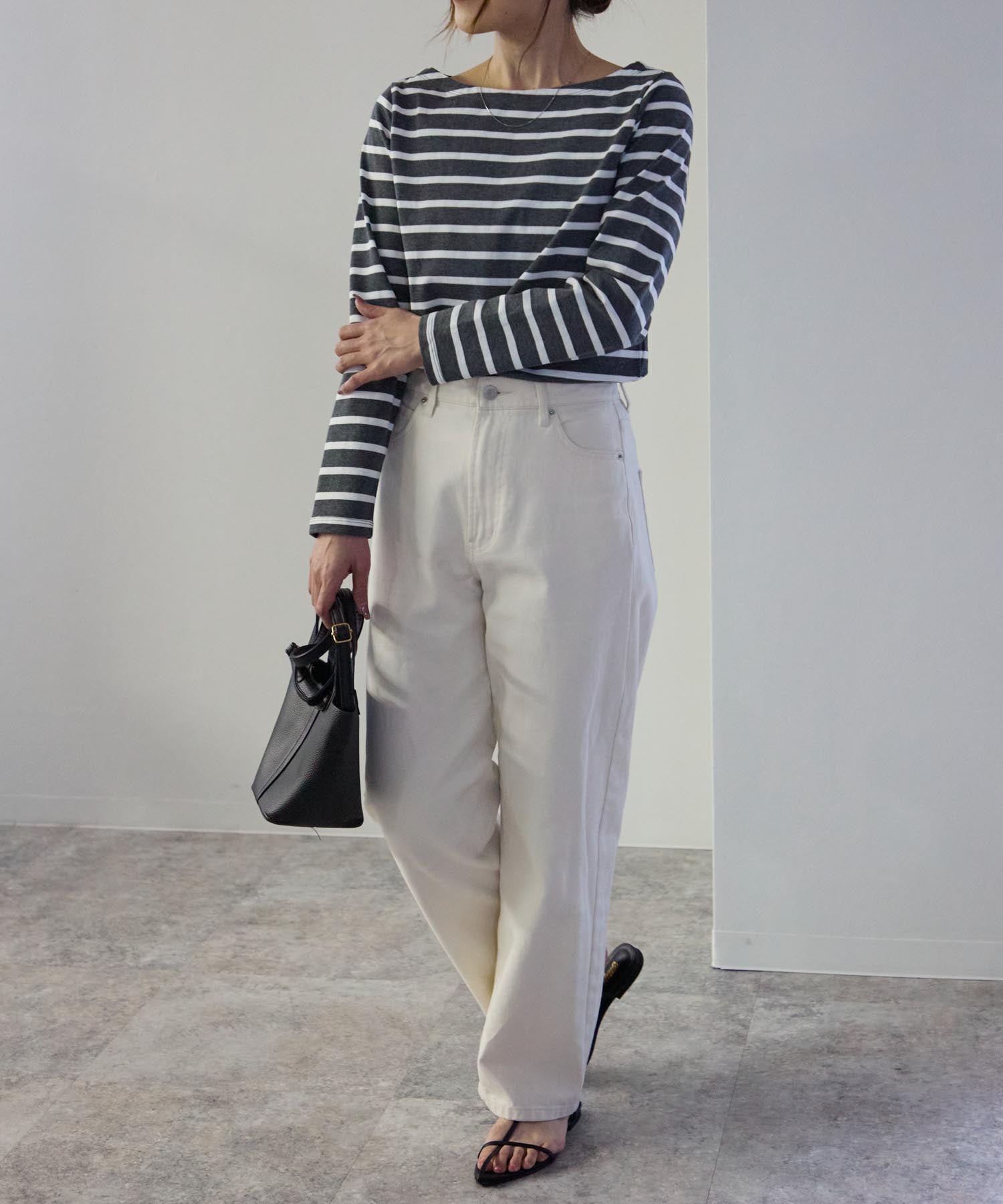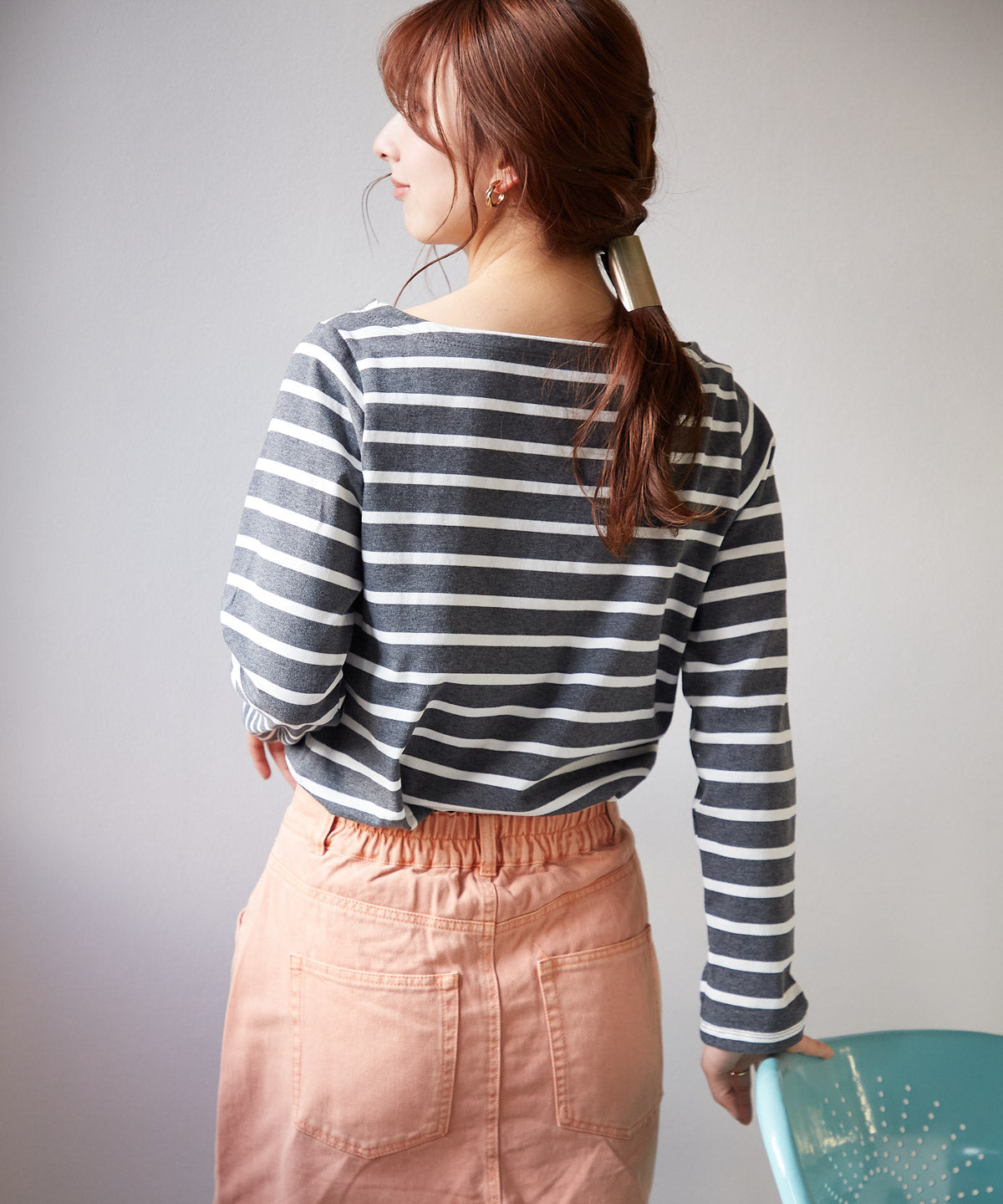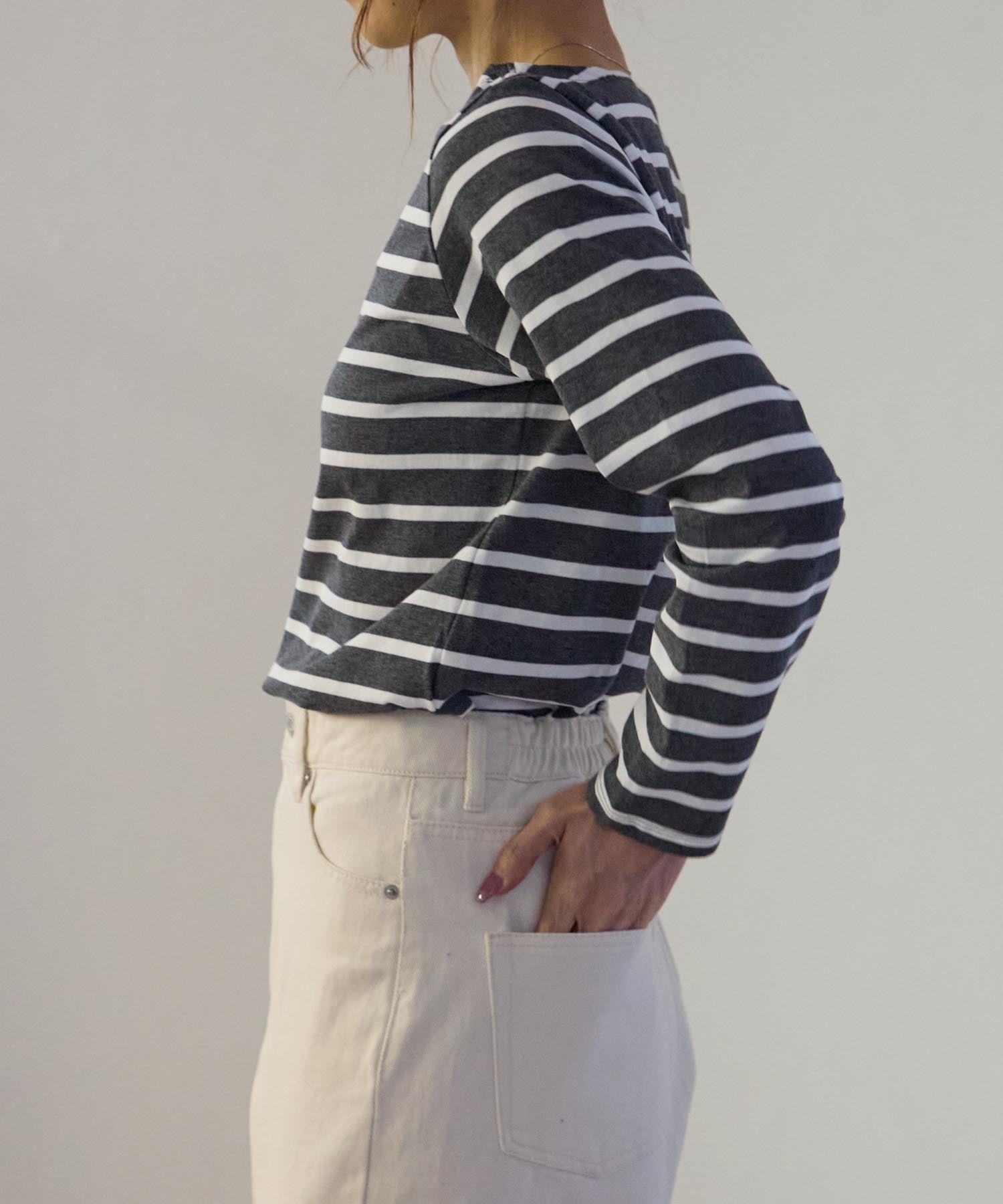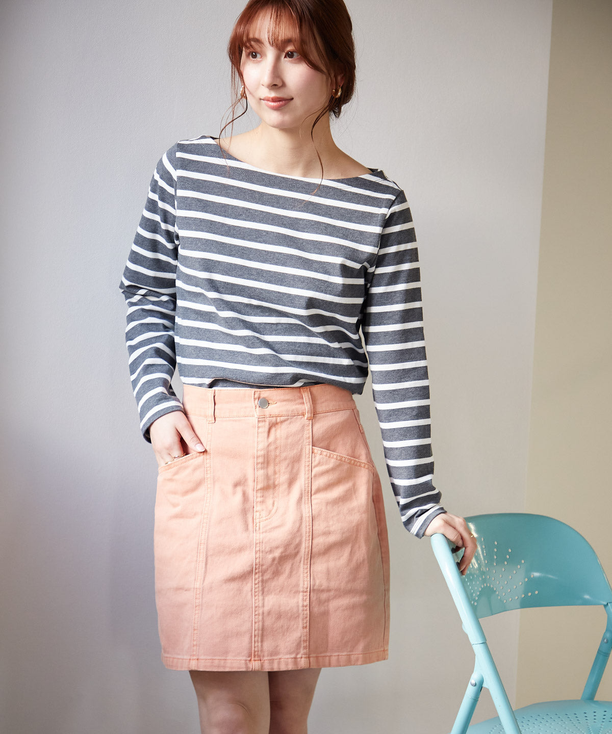 ・ボトムを選ばないTシャツなので、スカートやパンツお好みで合わせられるのがポイントです。