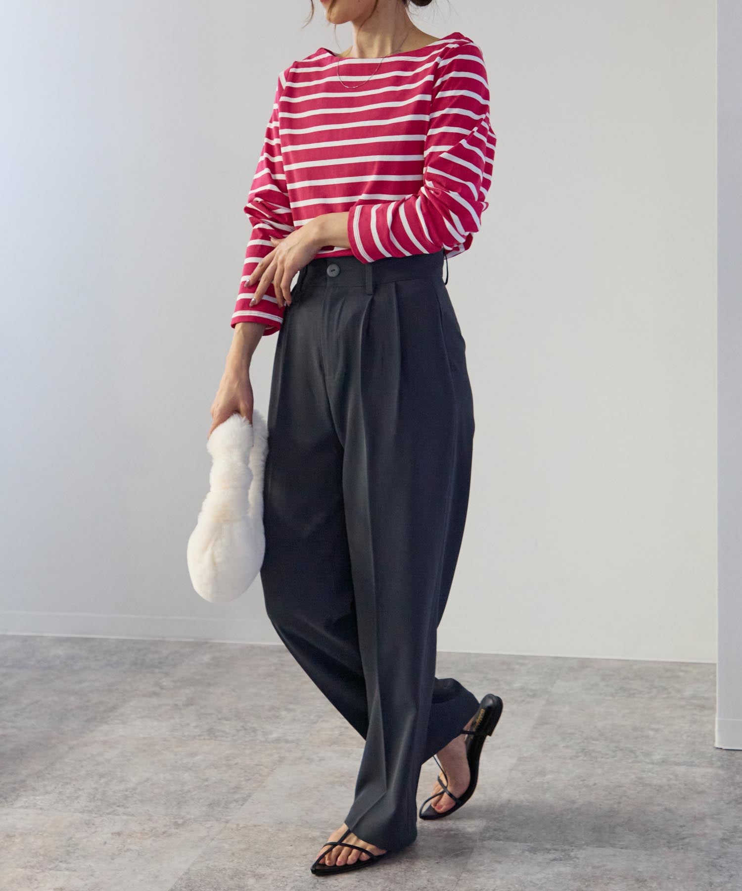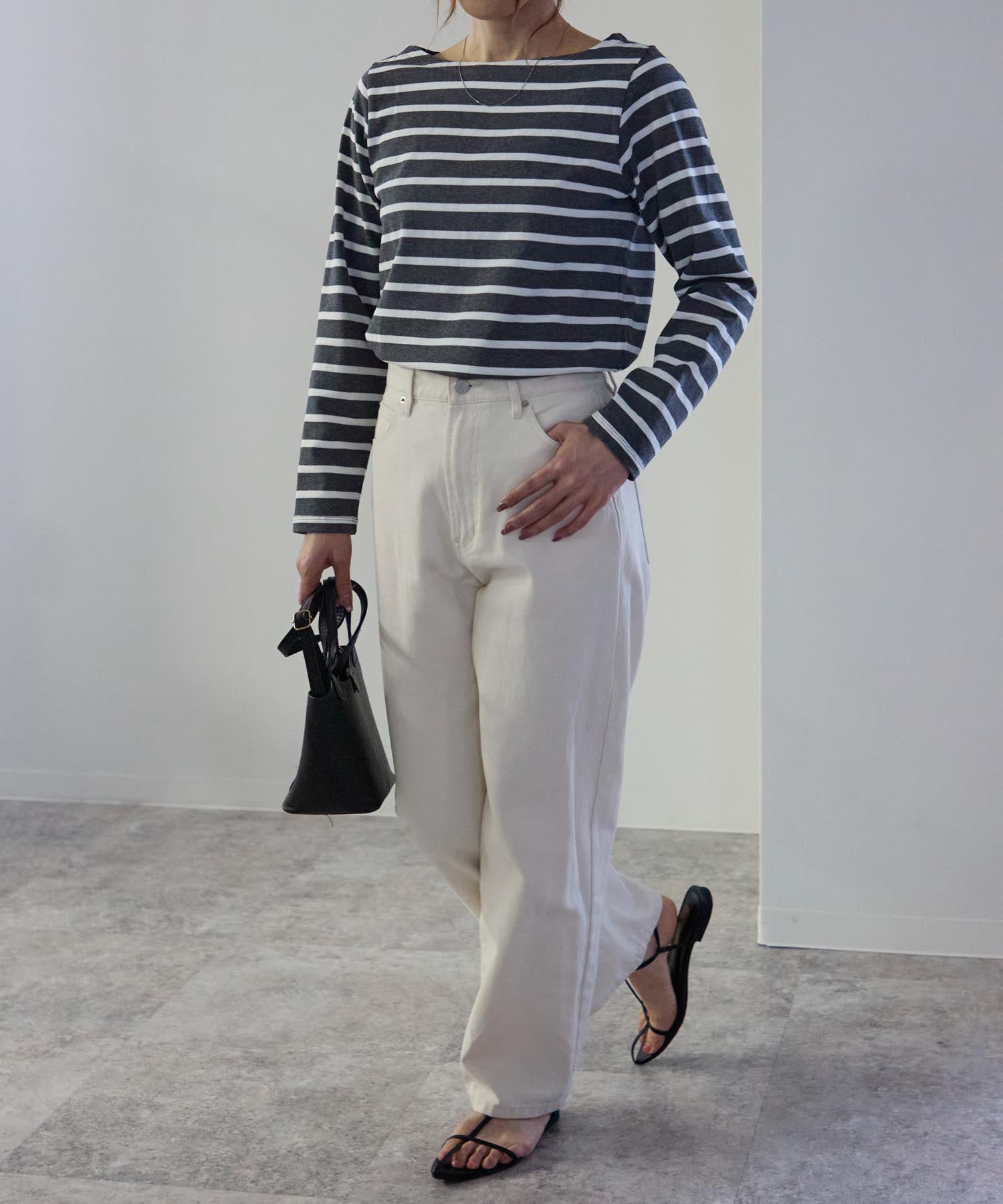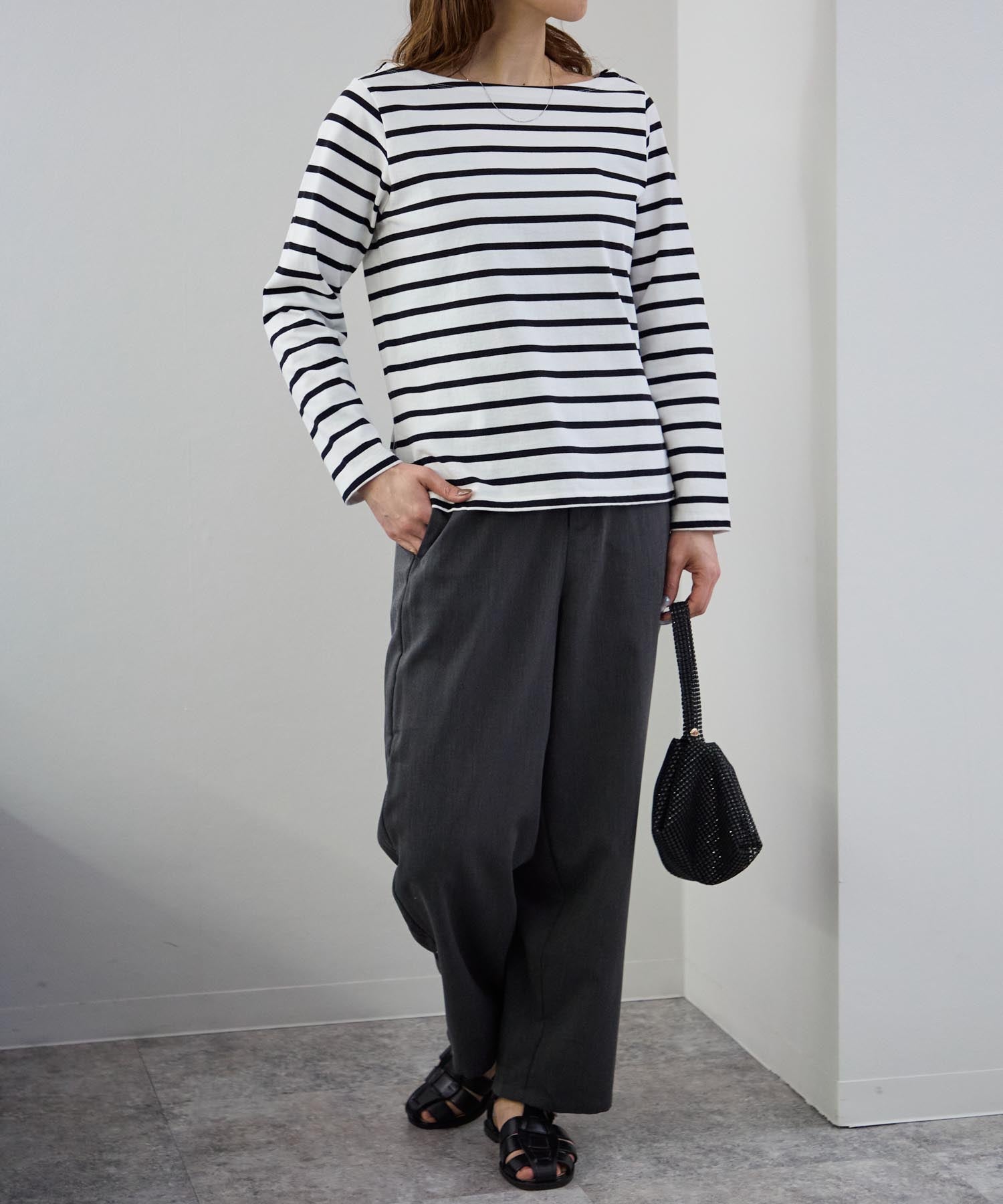 ・ボトムを選ばないTシャツなので、スカートやパンツお好みで合わせられるのがポイントです。
