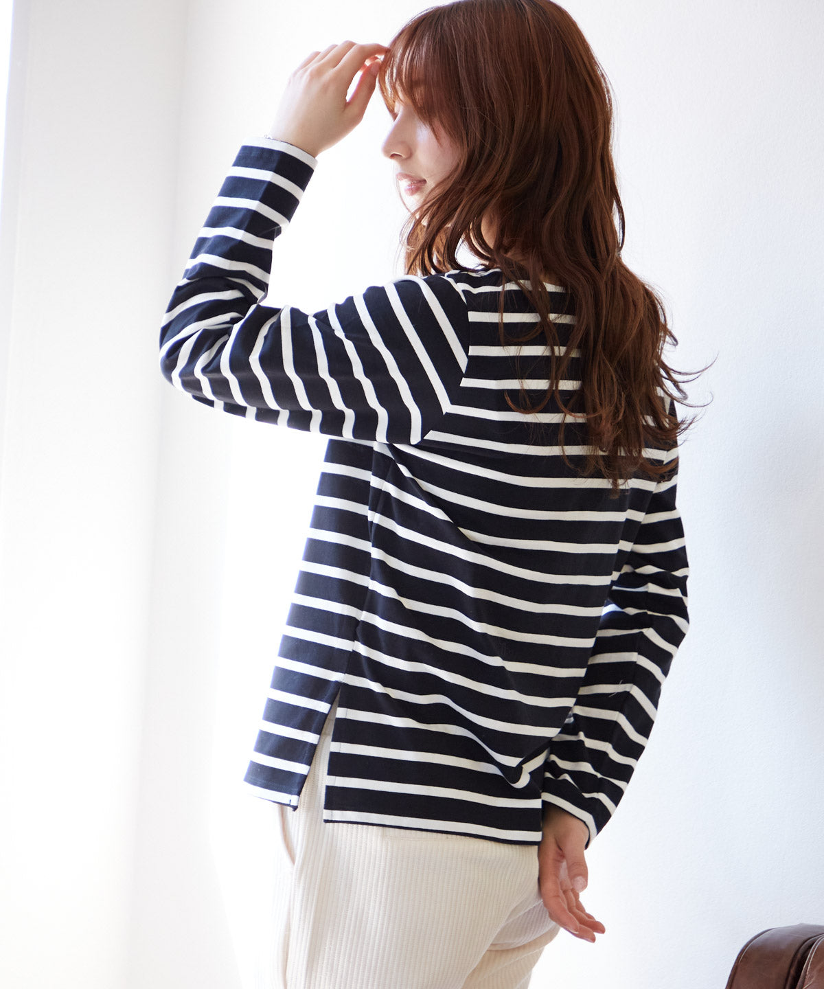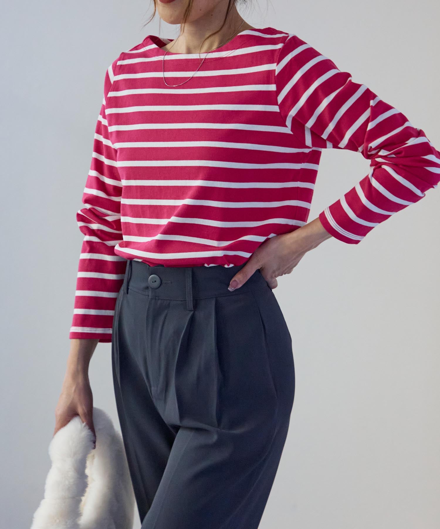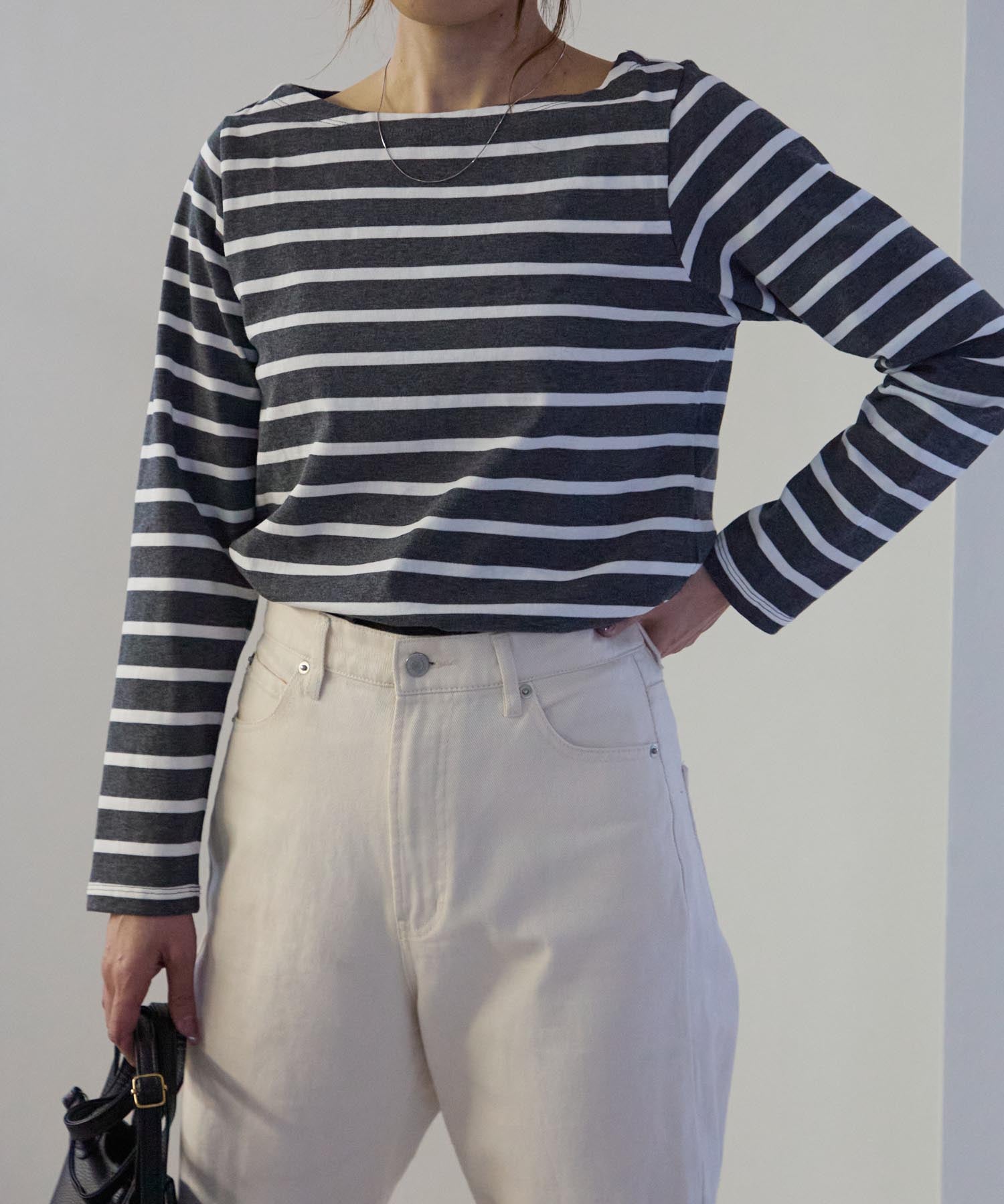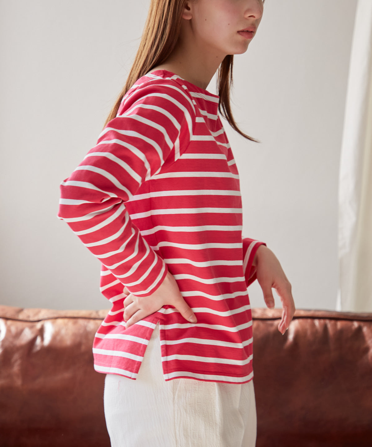 ・ボトムを選ばないTシャツなので、スカートやパンツお好みで合わせられるのがポイントです。