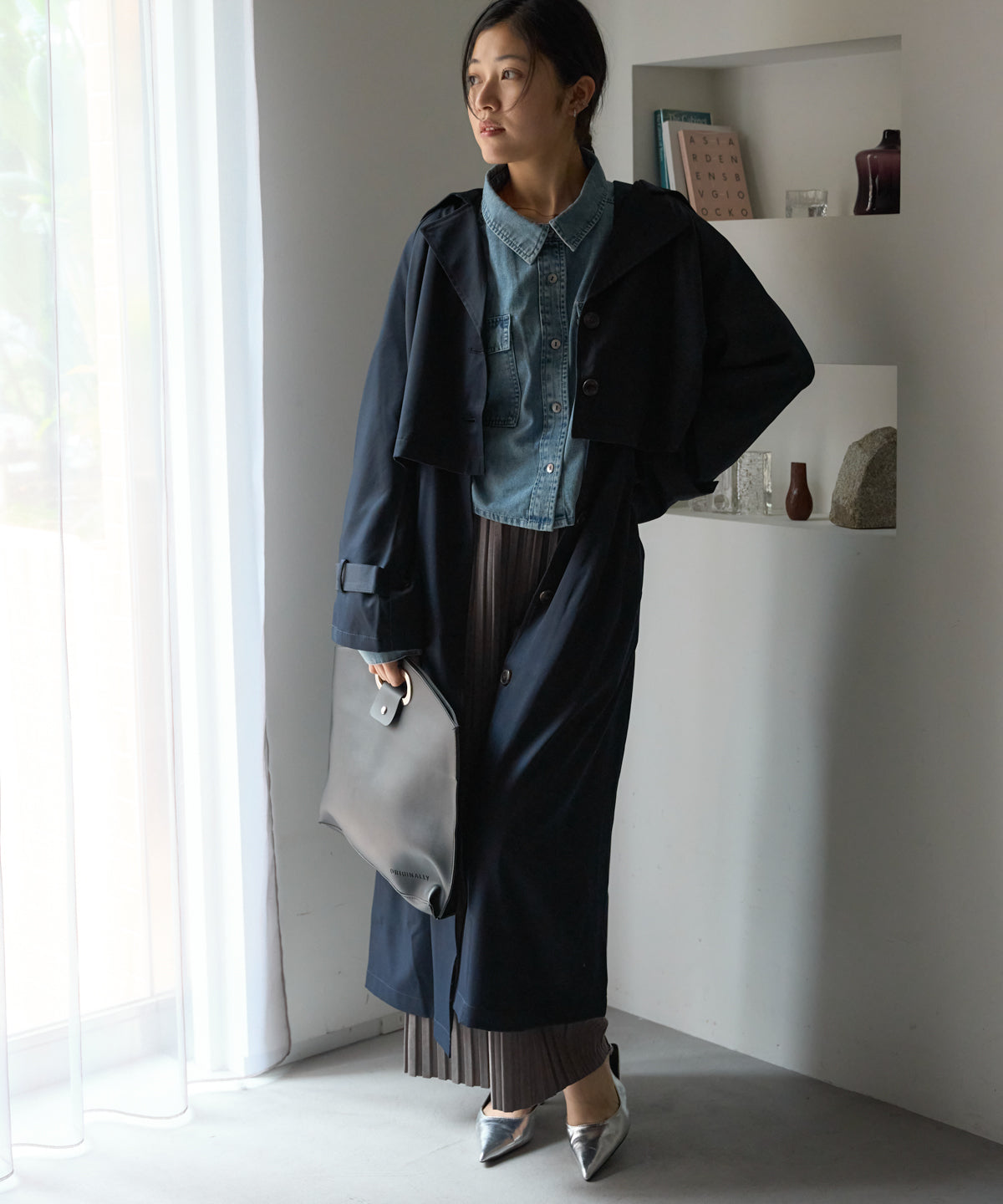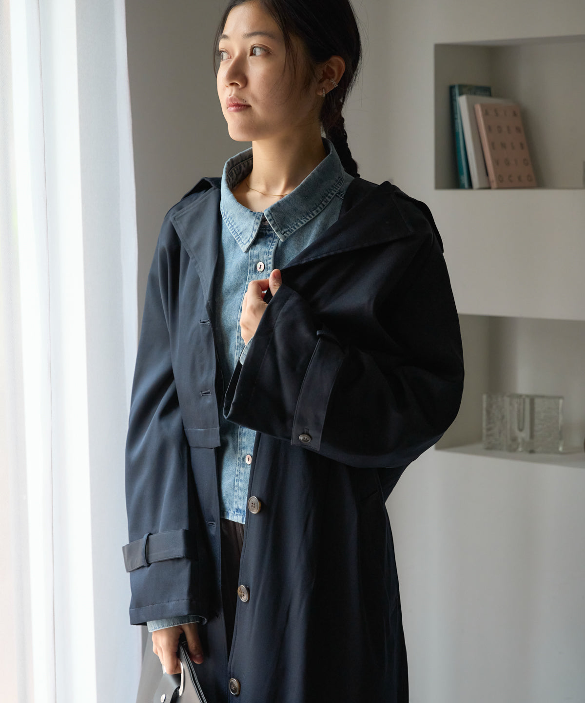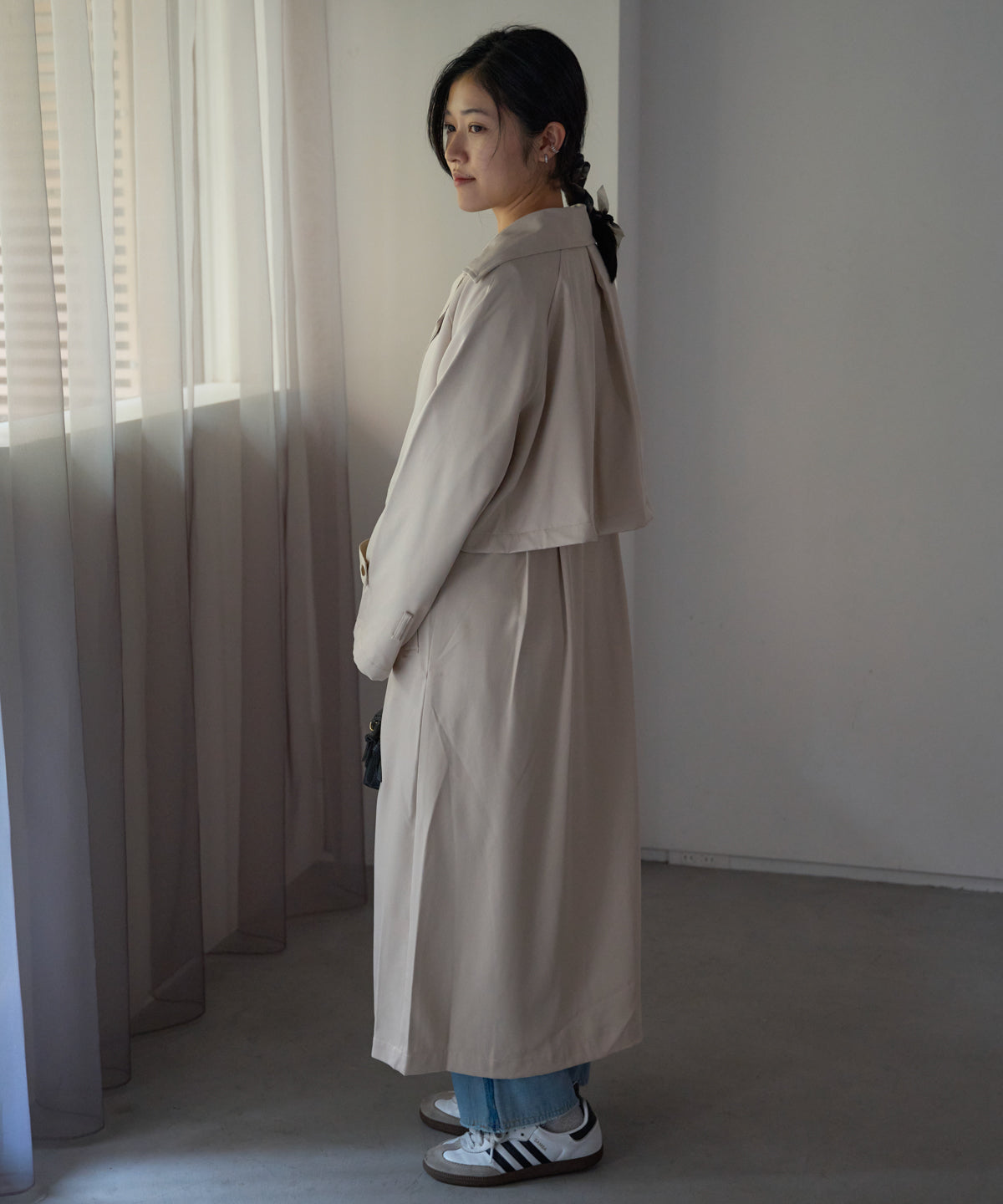 ・トレンチコートとしてはシンプルなデザインなので、普段使いにピッタリ。