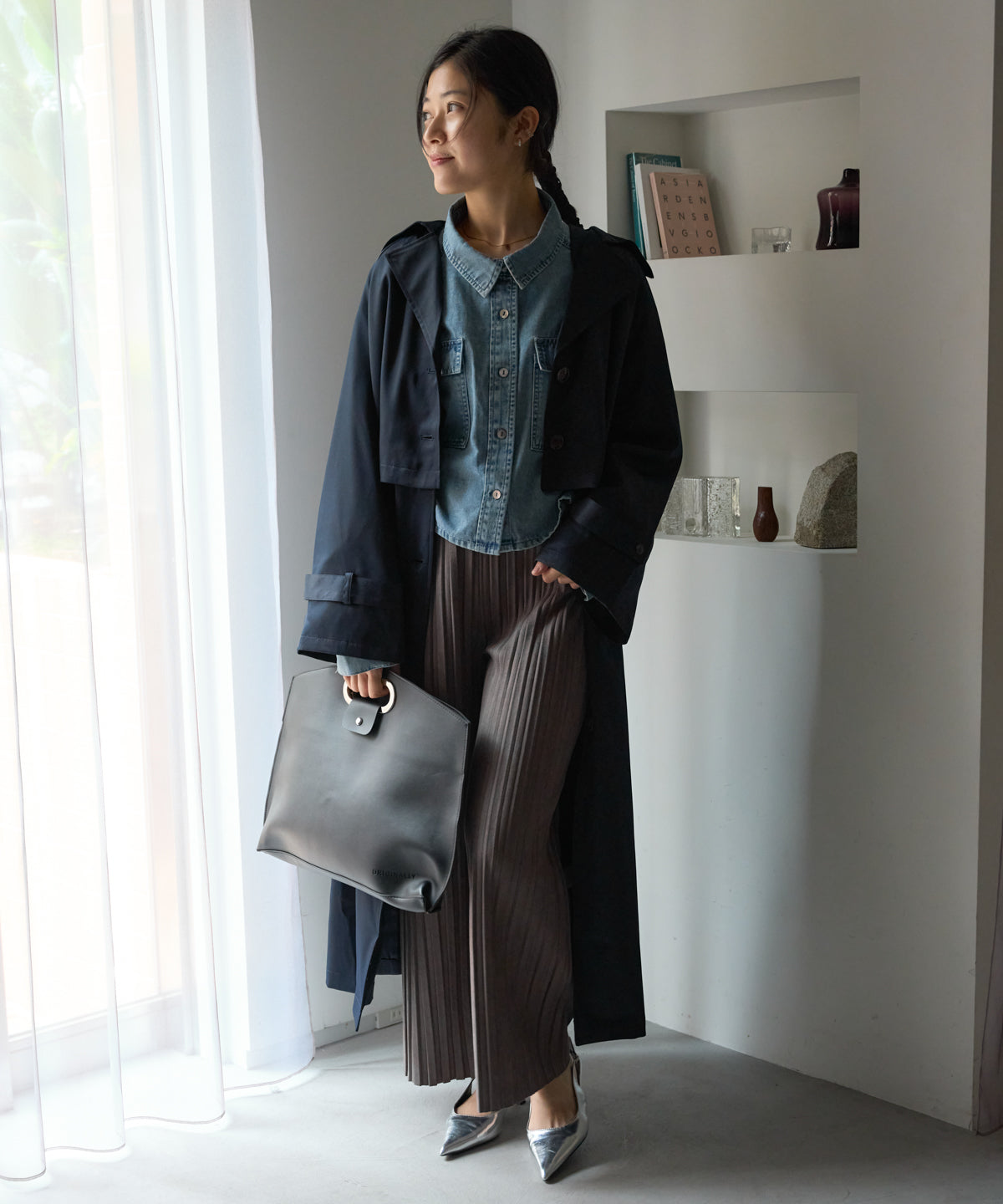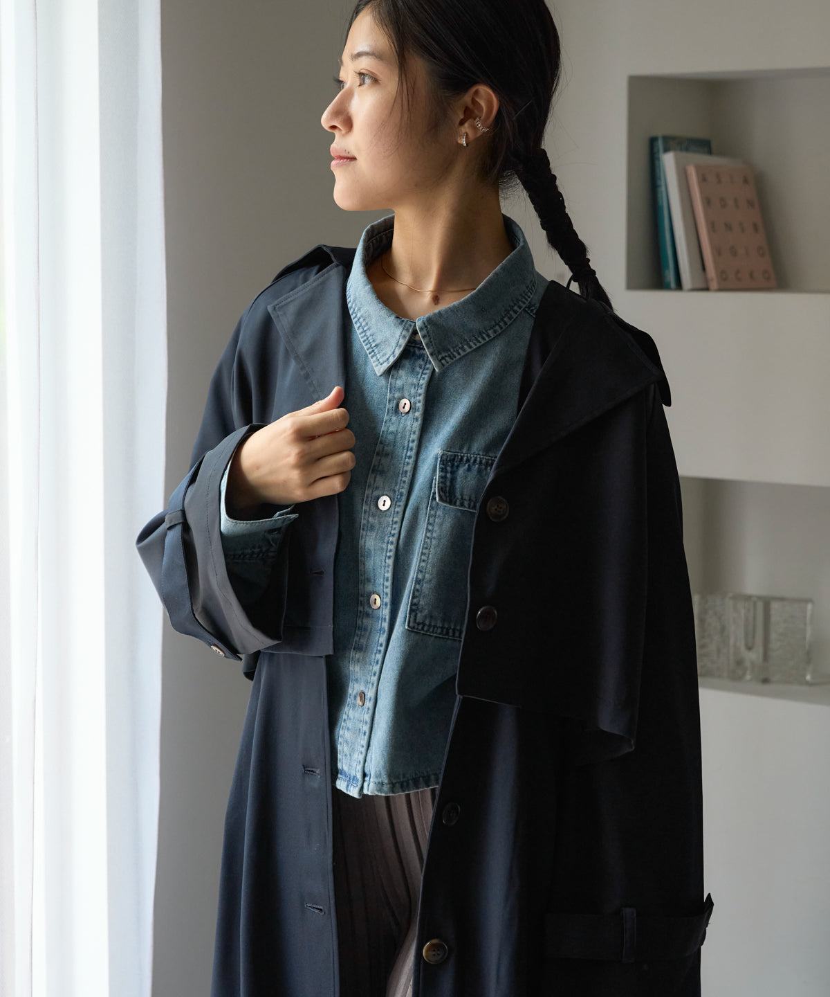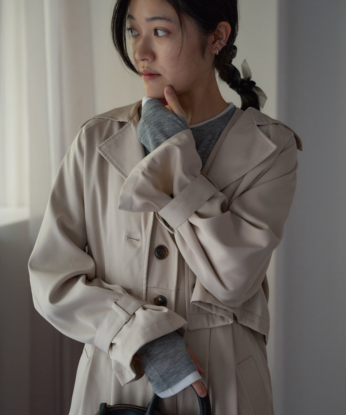 ・トレンチコートとしてはシンプルなデザインなので、普段使いにピッタリ。