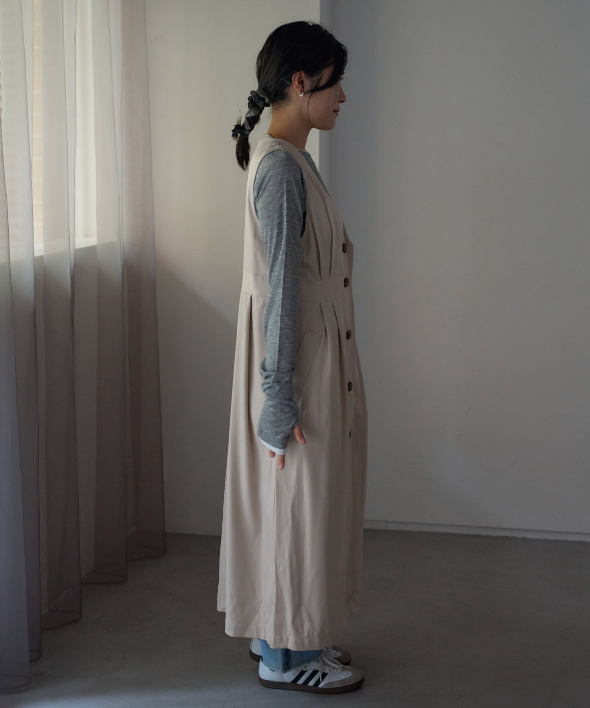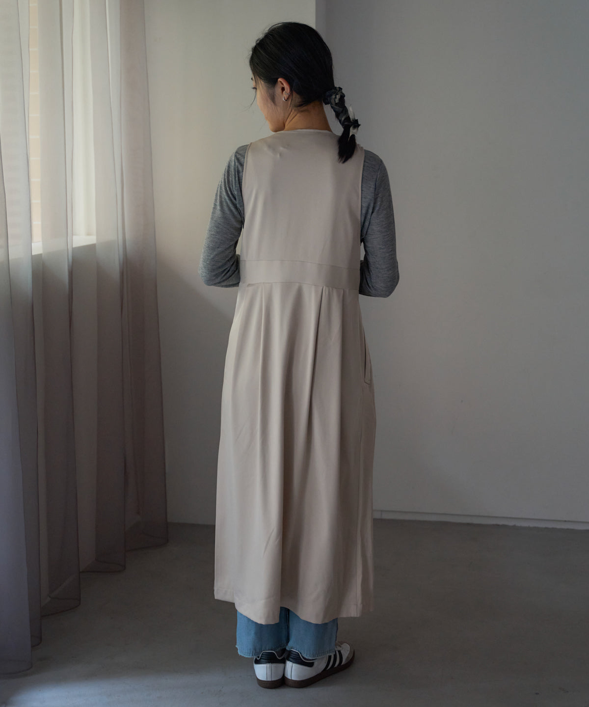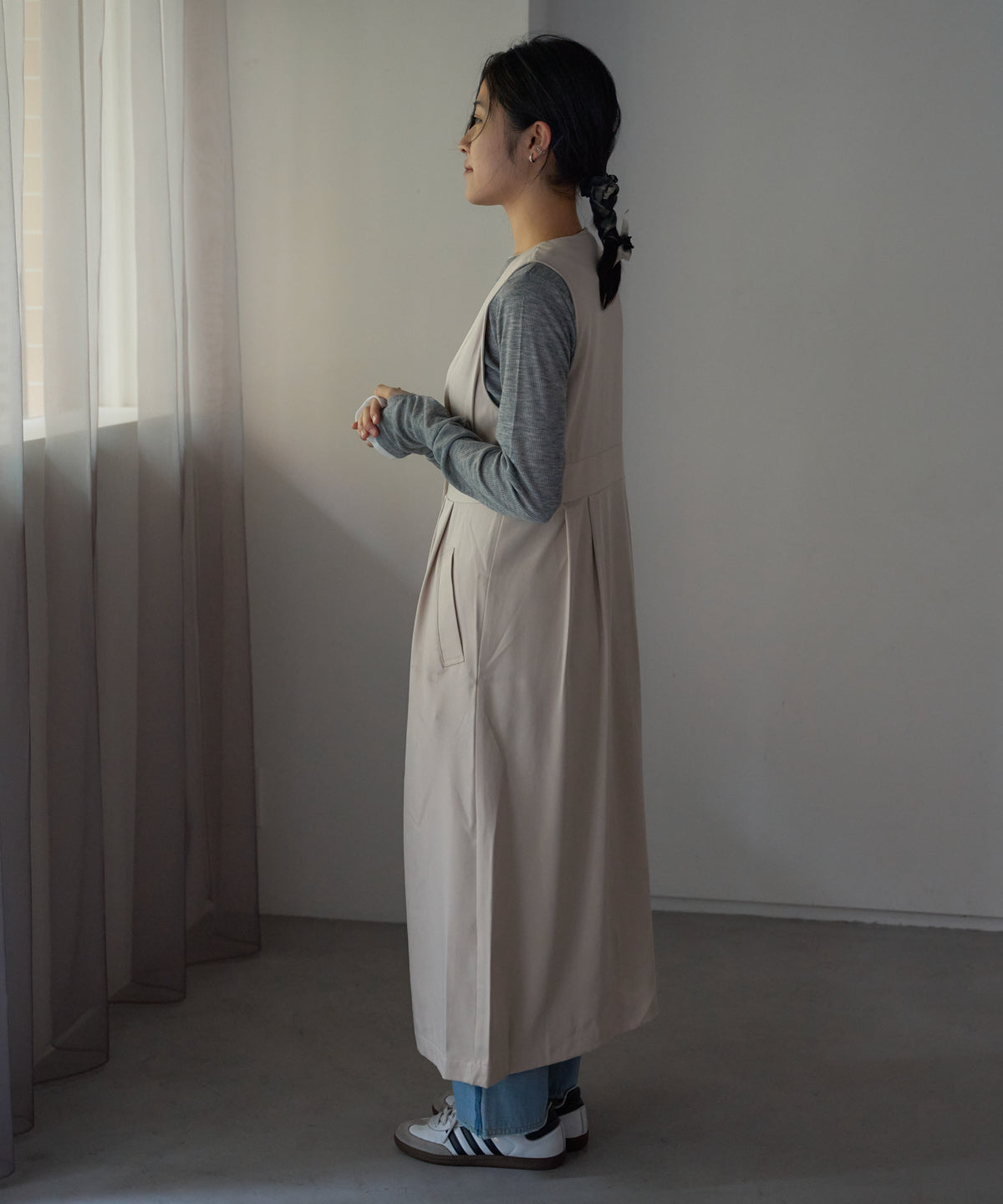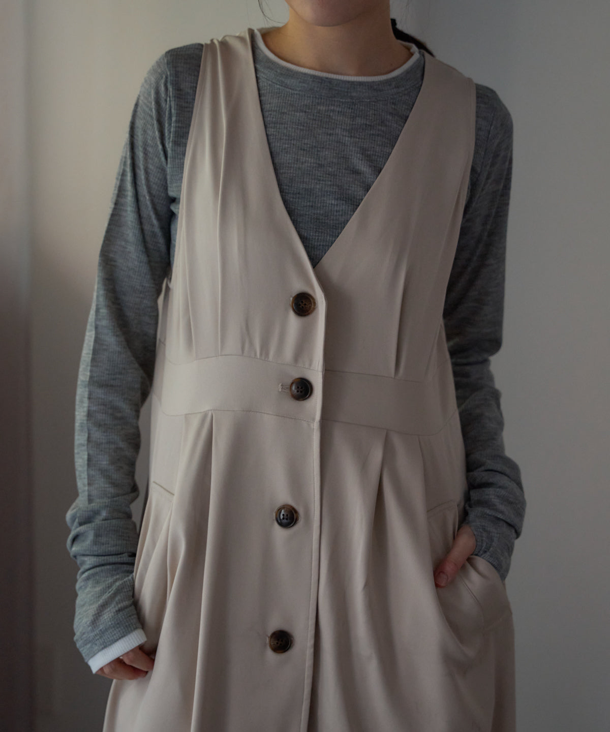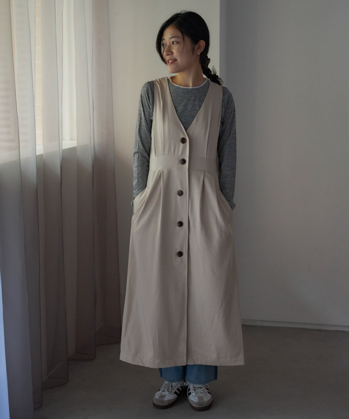 ・ワンピースやTシャツとデニムのようなシンプルなコーデにジレをプラスするだけでおしゃれ度アップ◎