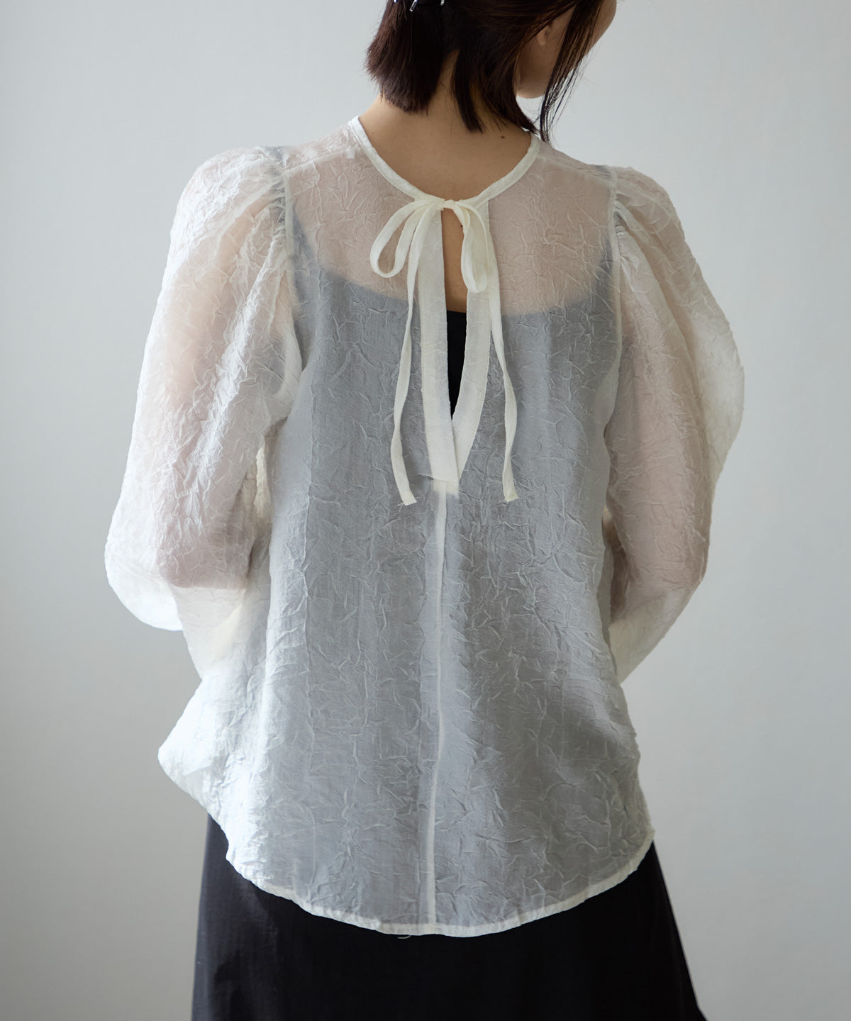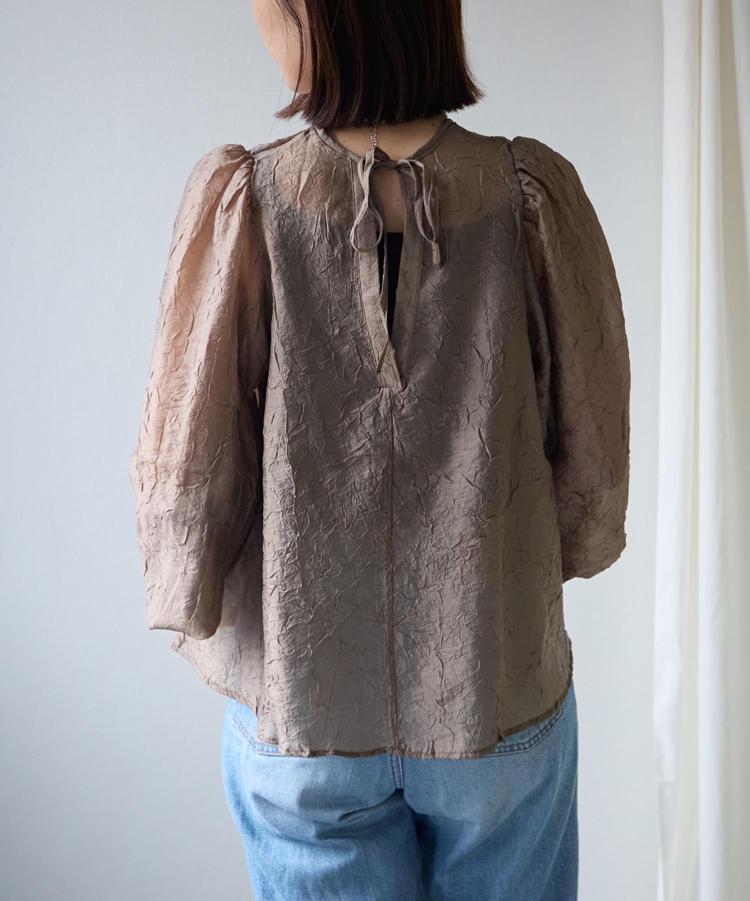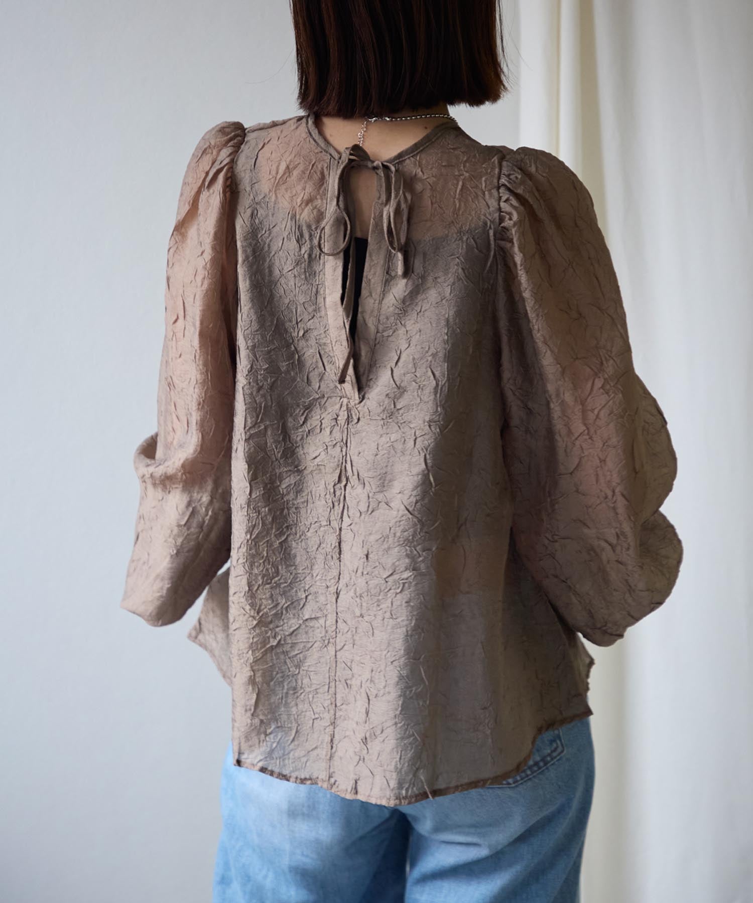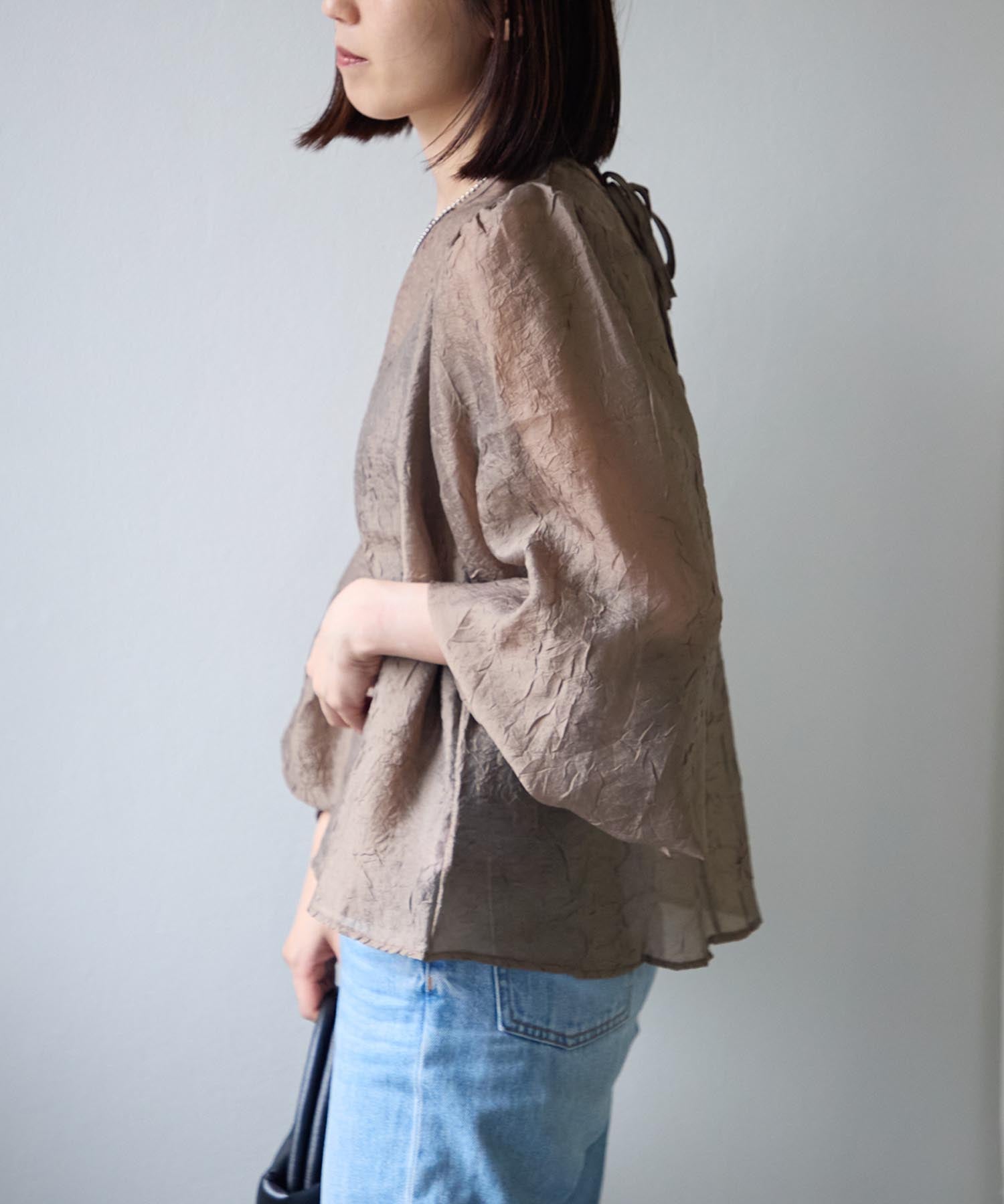 バックリボンクリンクルブラウス