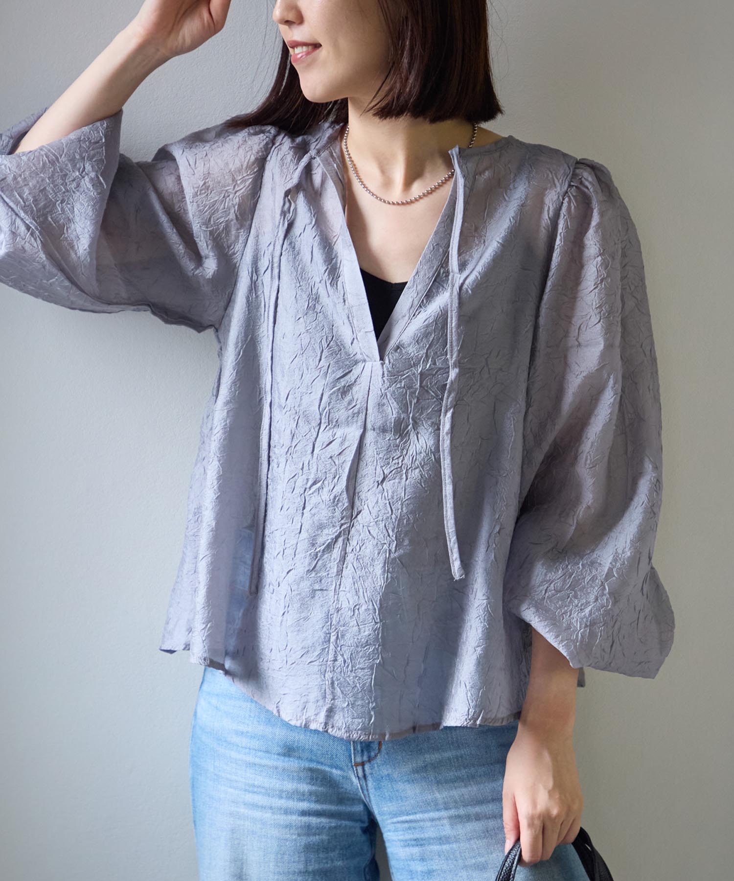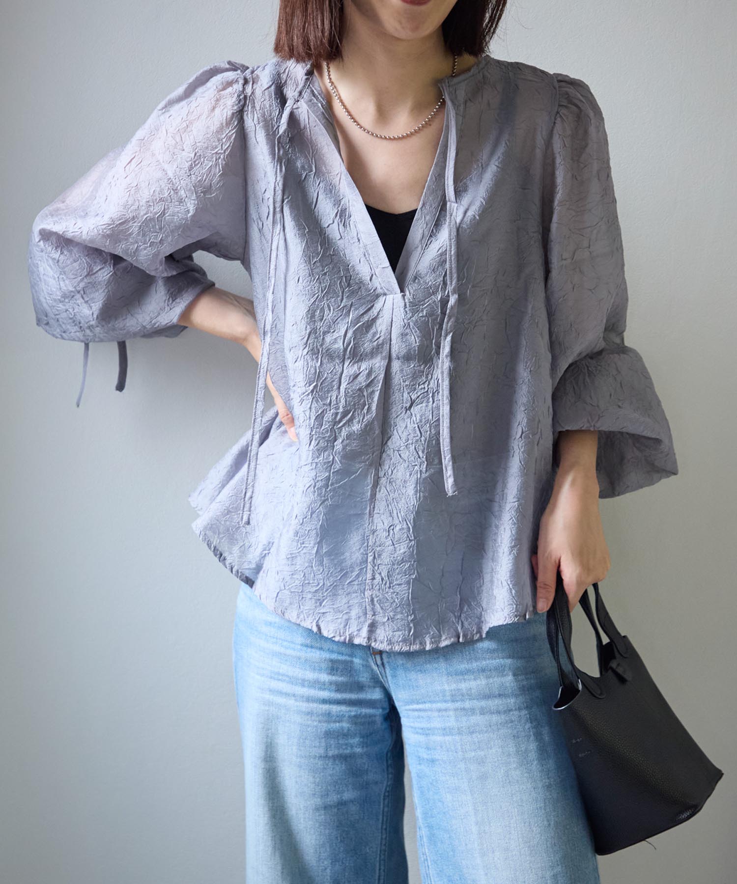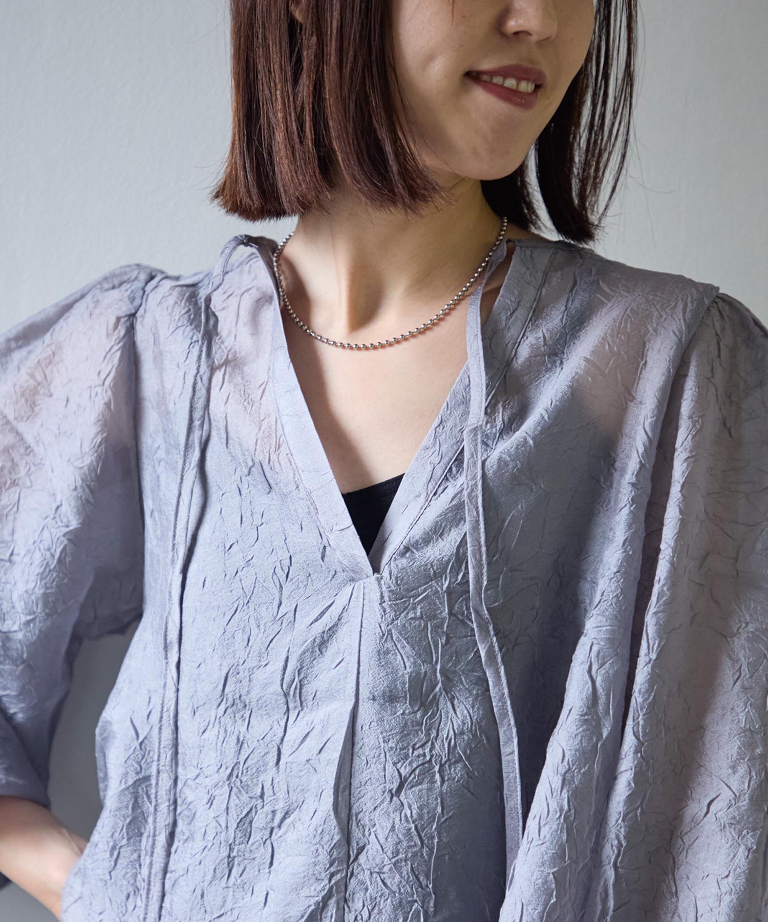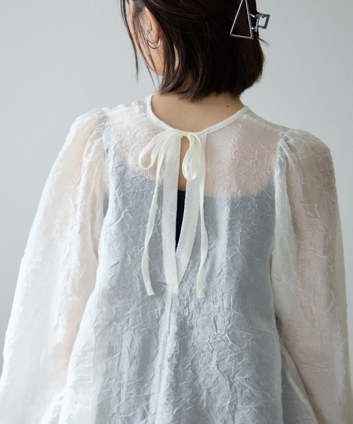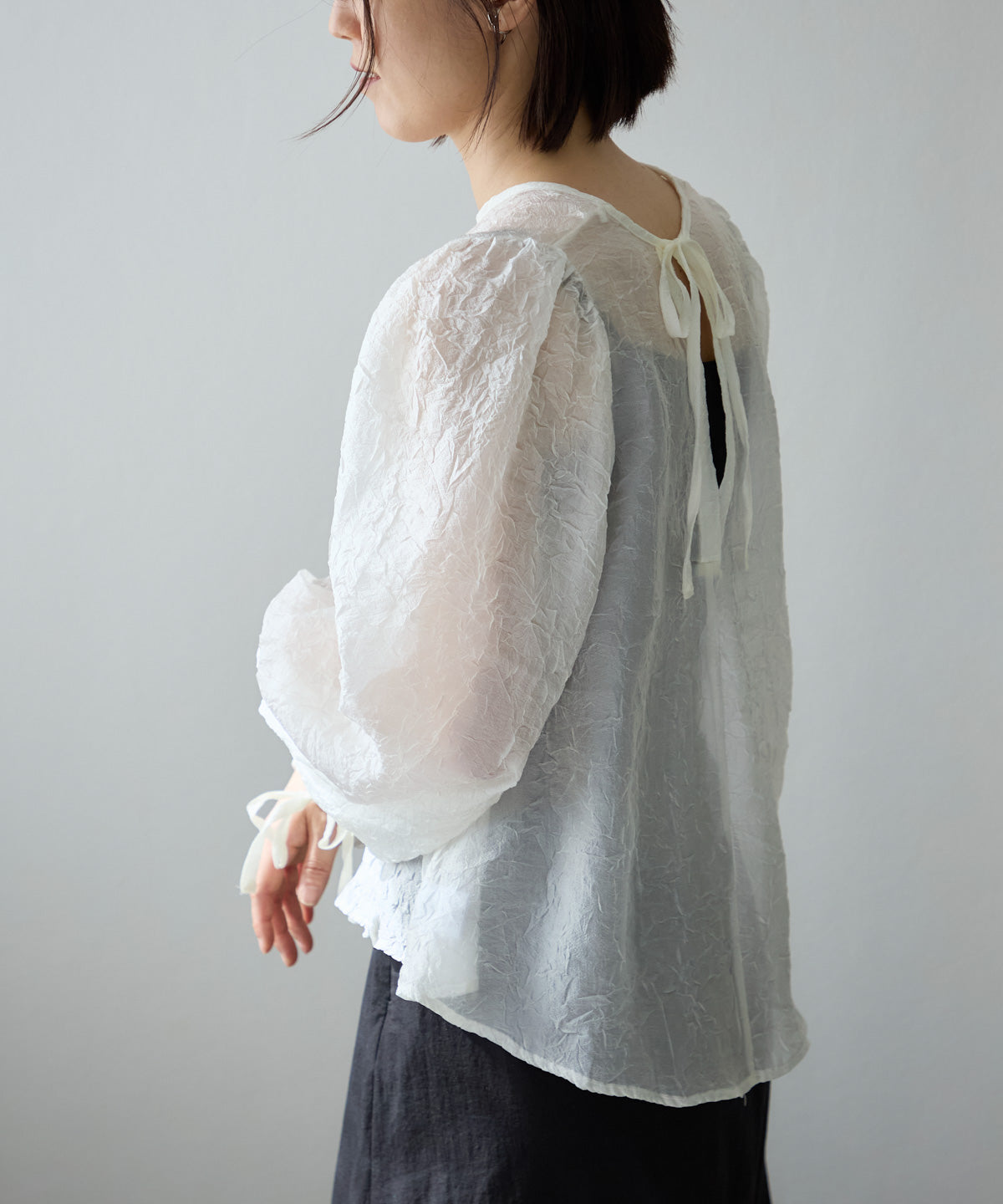 バックリボンクリンクルブラウス