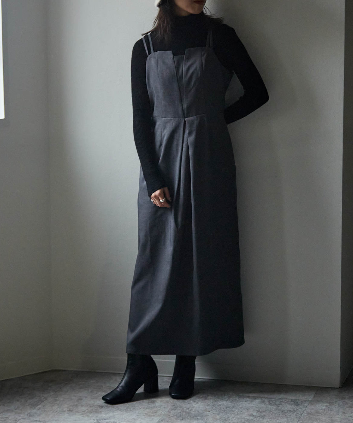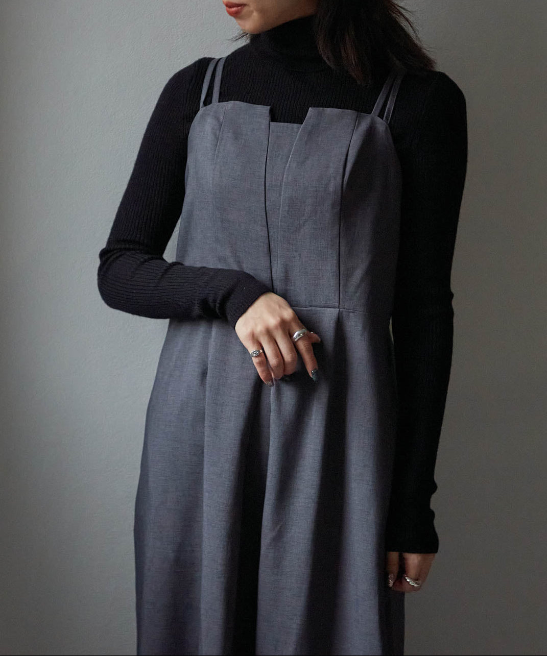 ・ 冬はタートルニットやジャケットと合わせてレイヤードスタイルに
