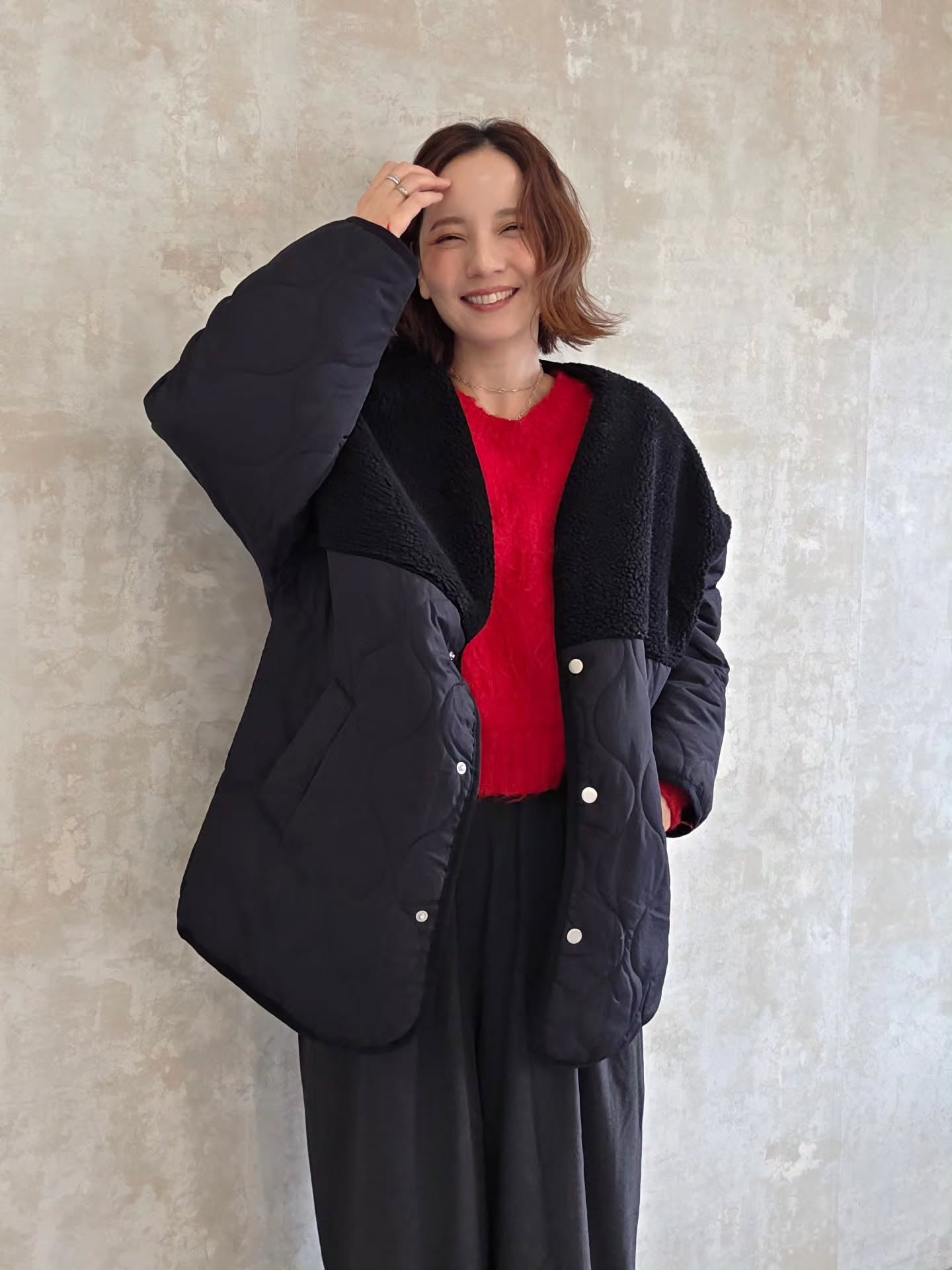 ・ノーカラーで首回りもスッキリするので、ストールやタートルニットとのコーディネートにも最適です◎