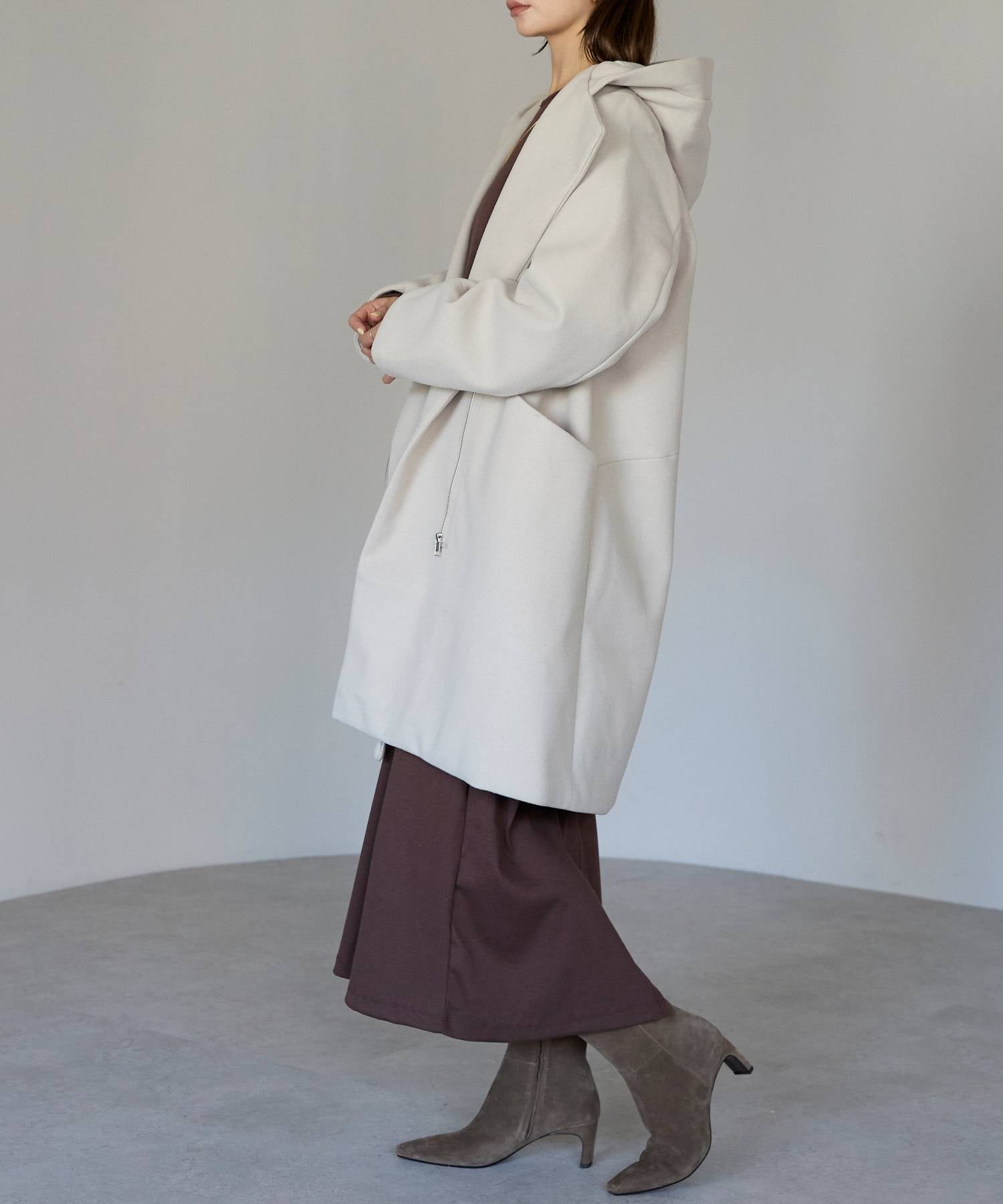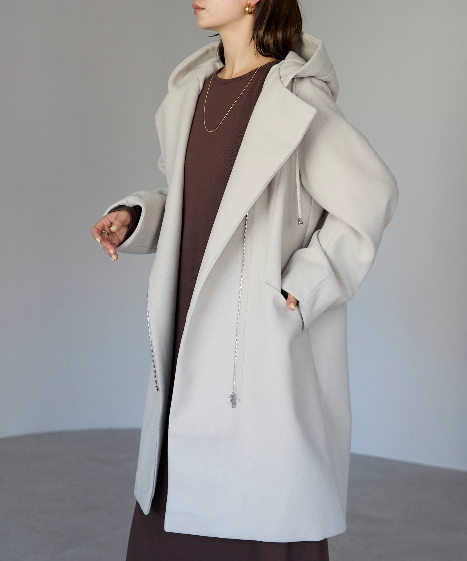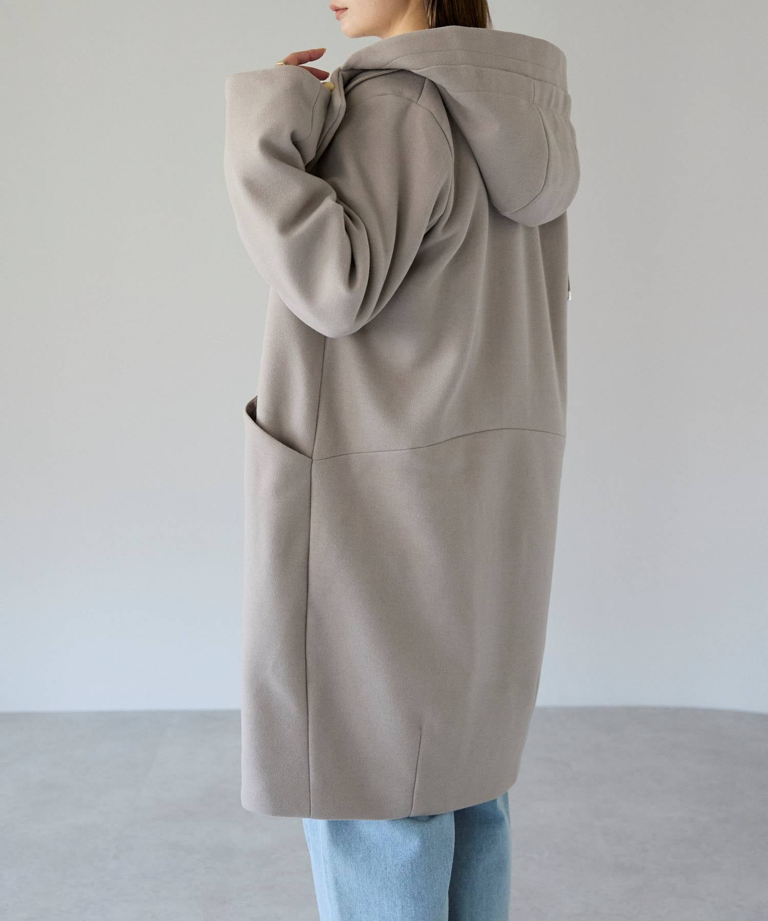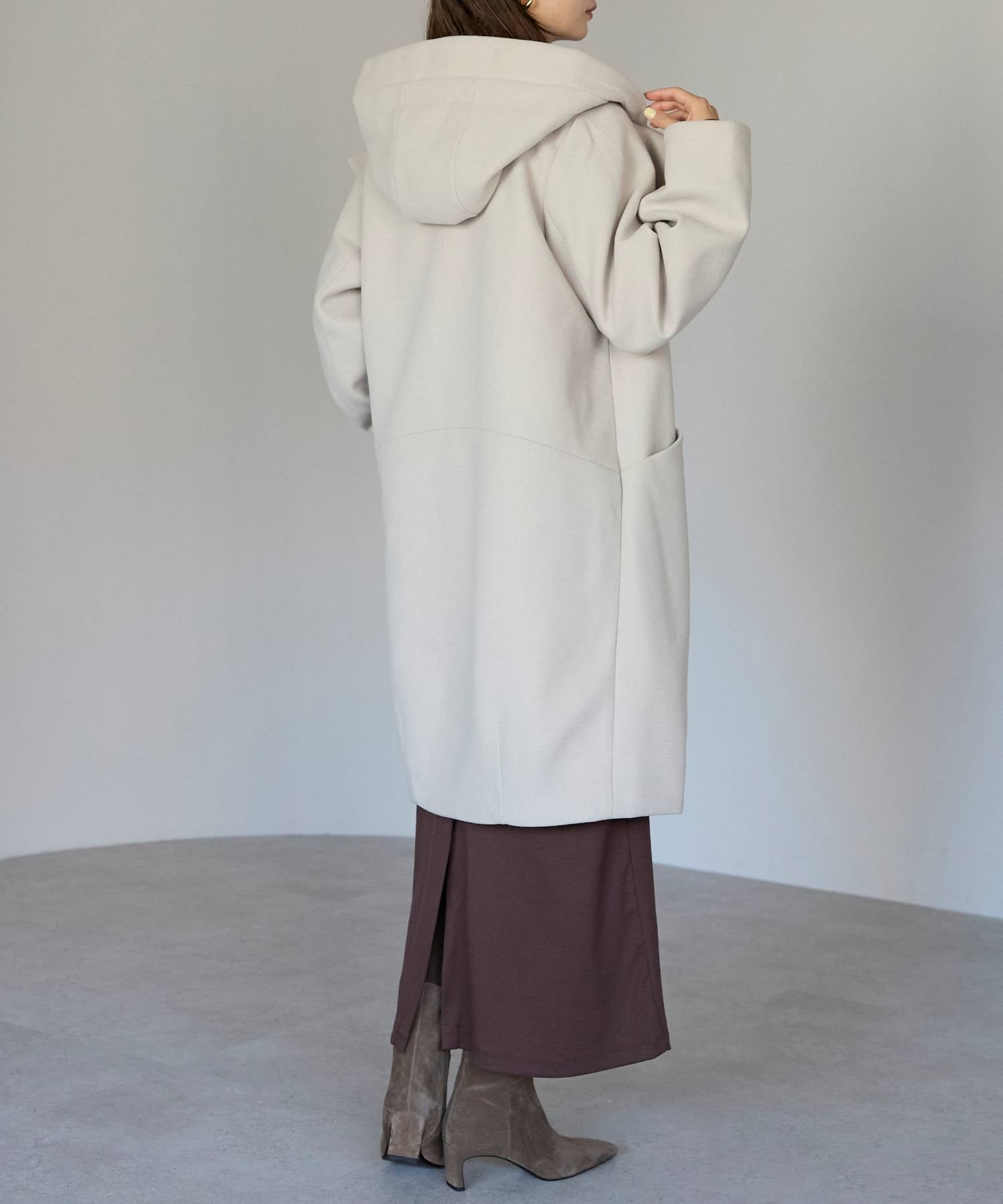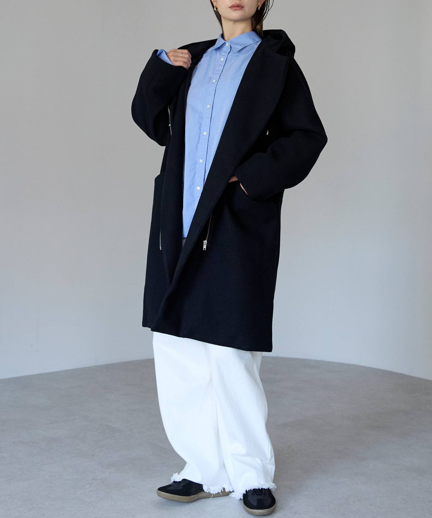 キレイ目にもカジュアルにもお使い頂けるフード付きコート。