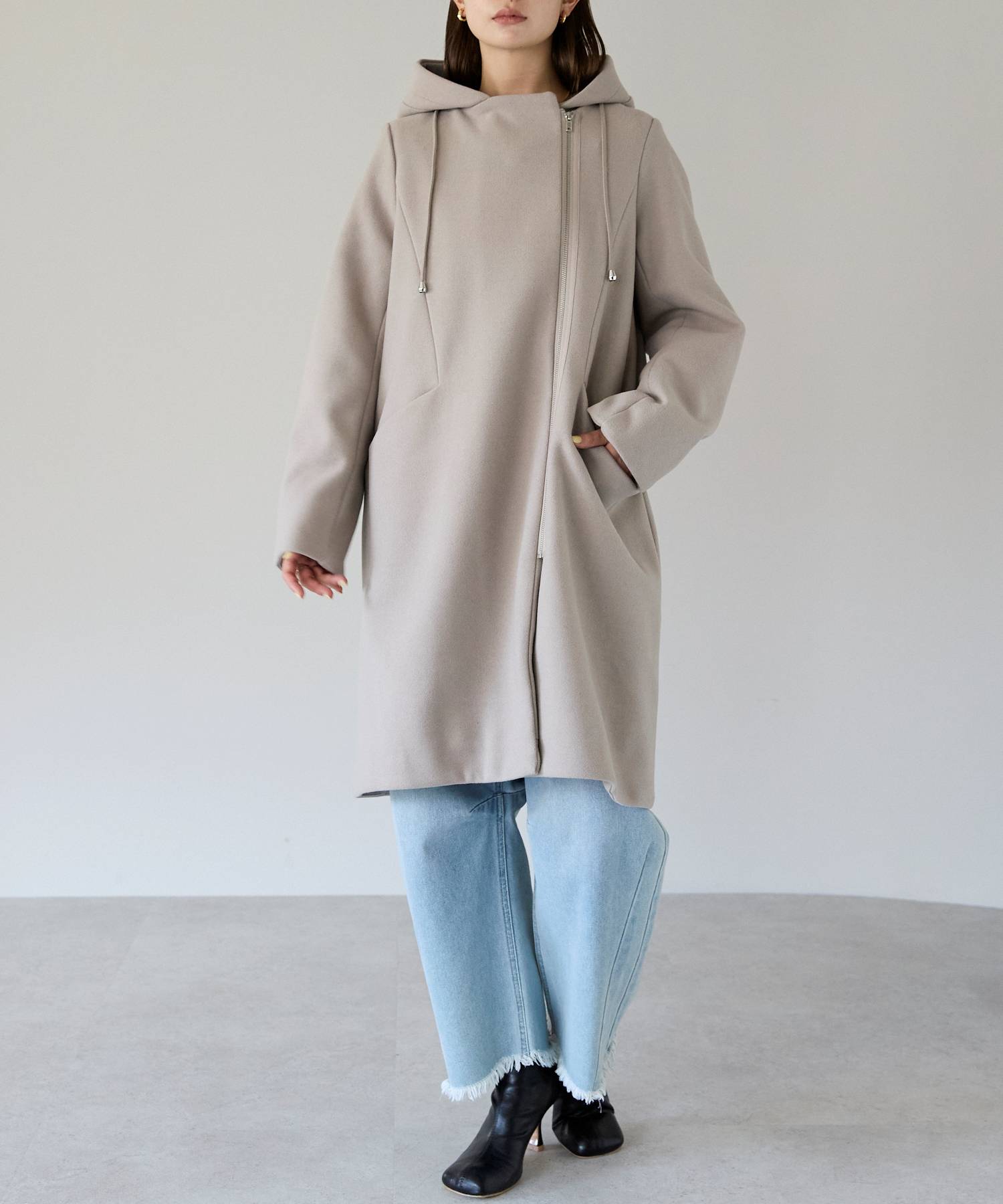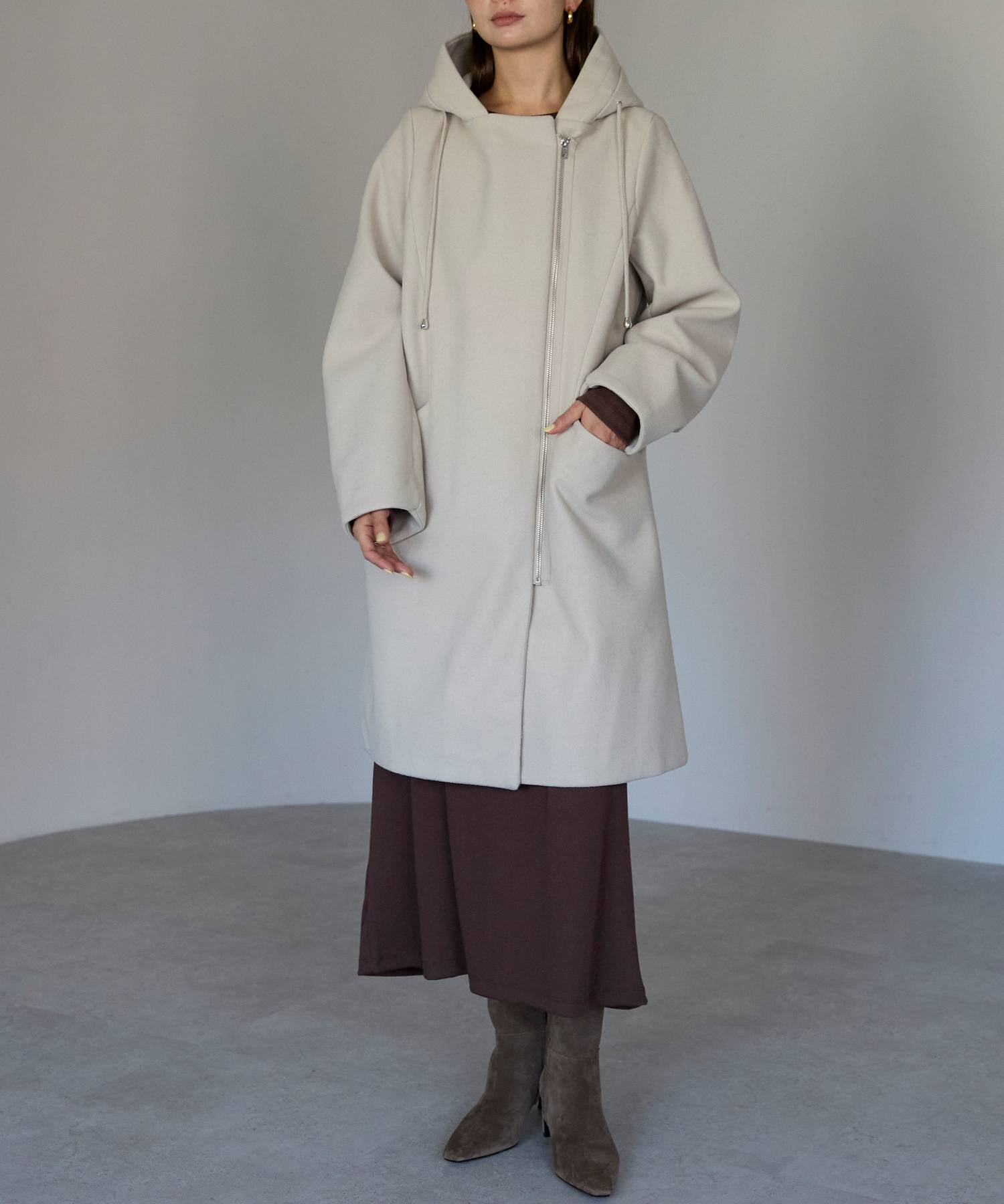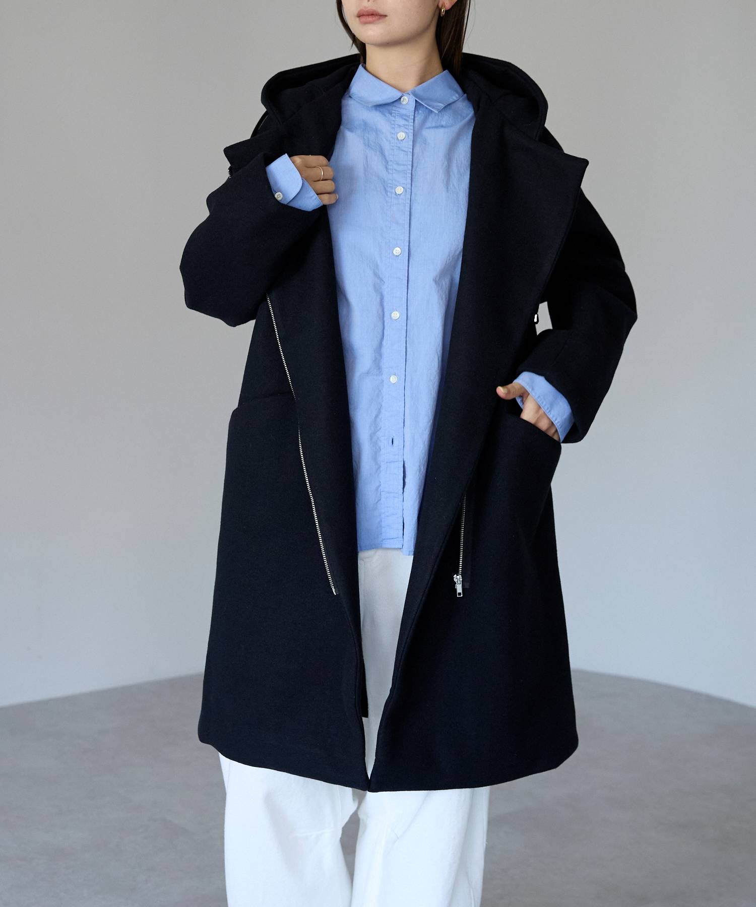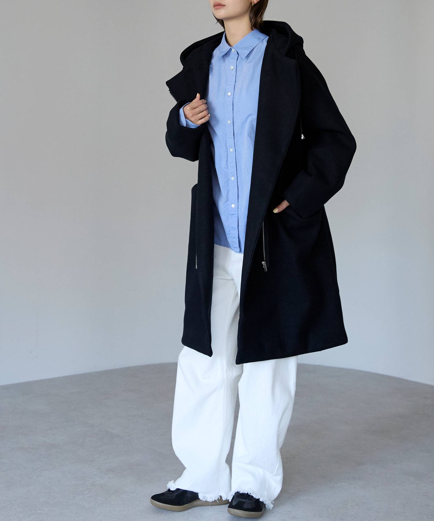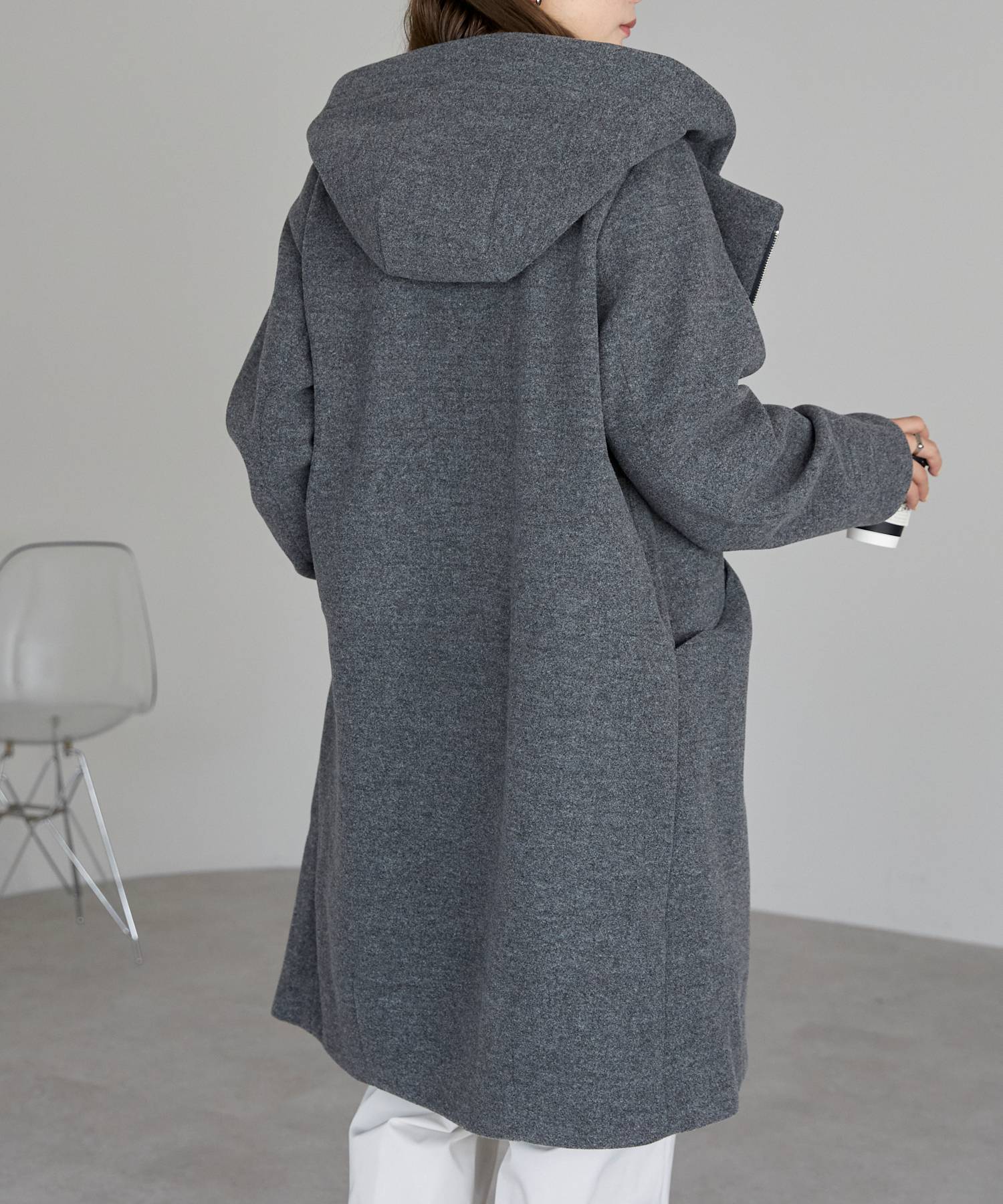キレイ目にもカジュアルにもお使い頂けるフード付きコート。