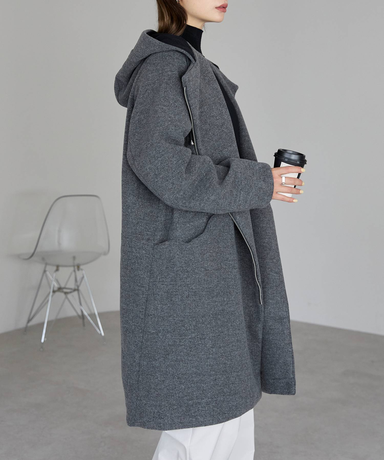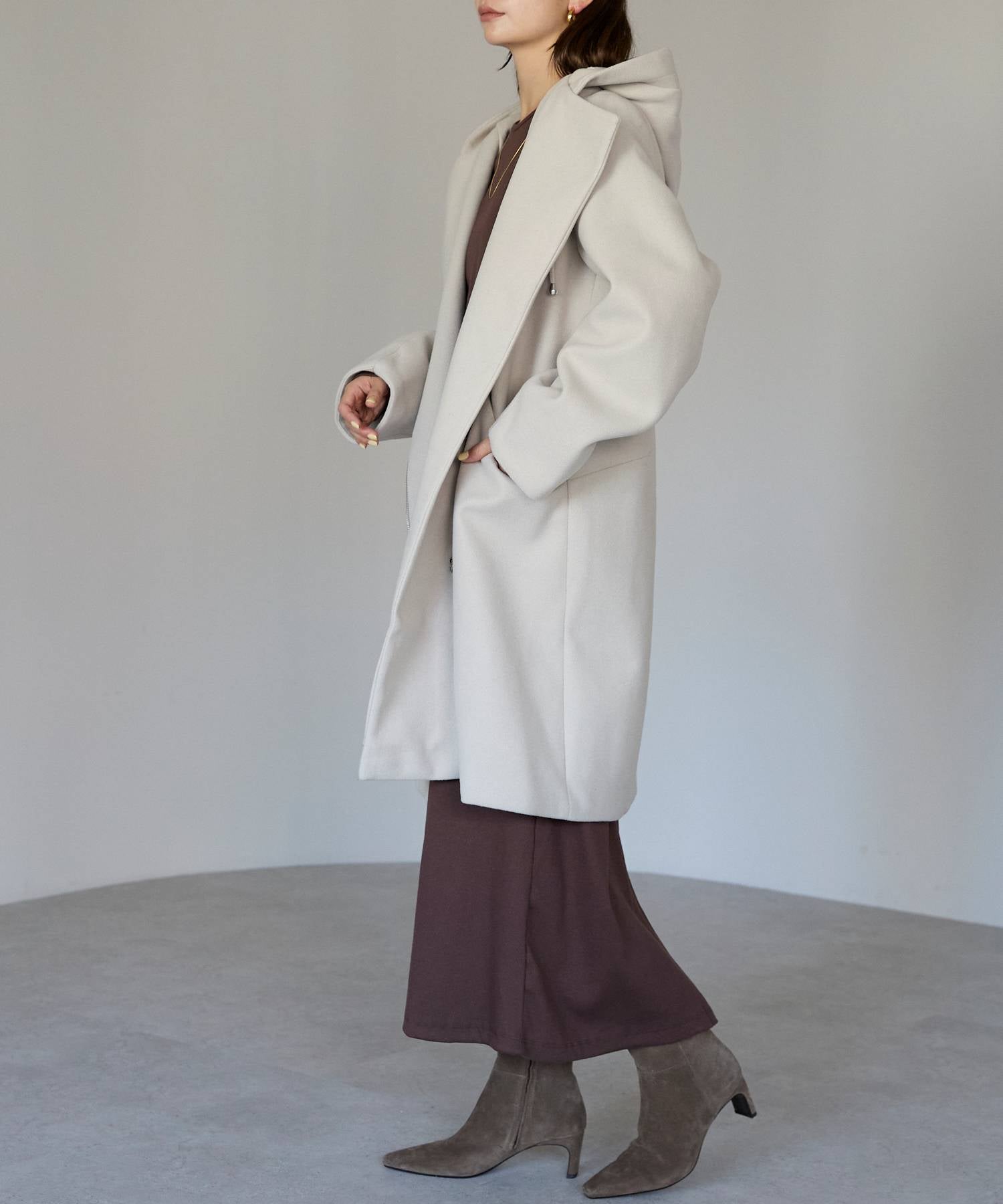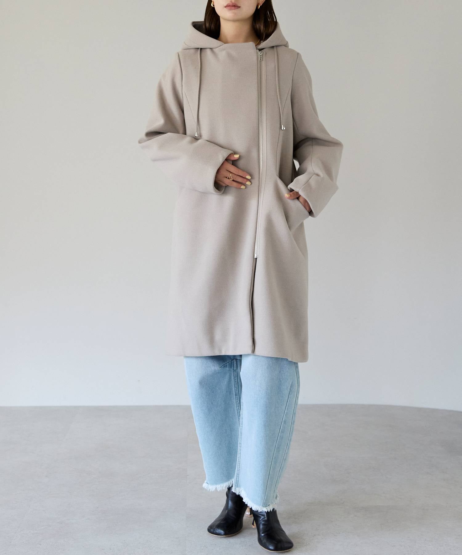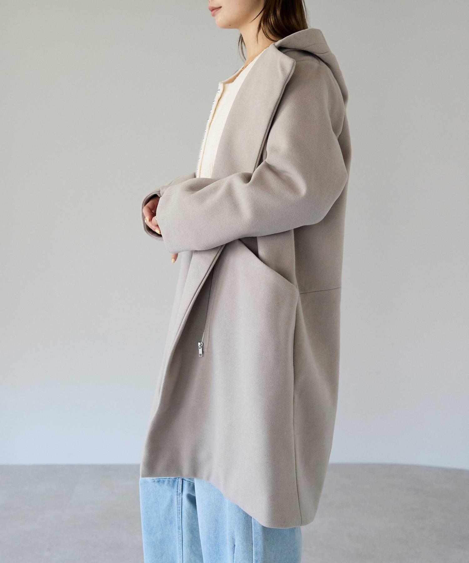 キレイ目にもカジュアルにもお使い頂けるフード付きコート。