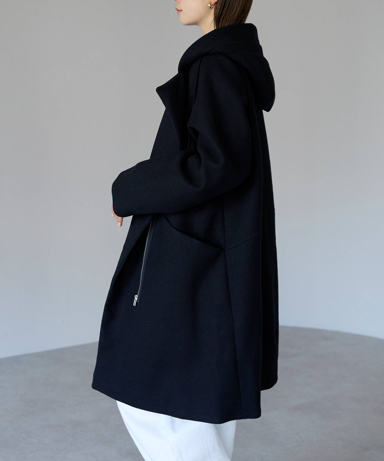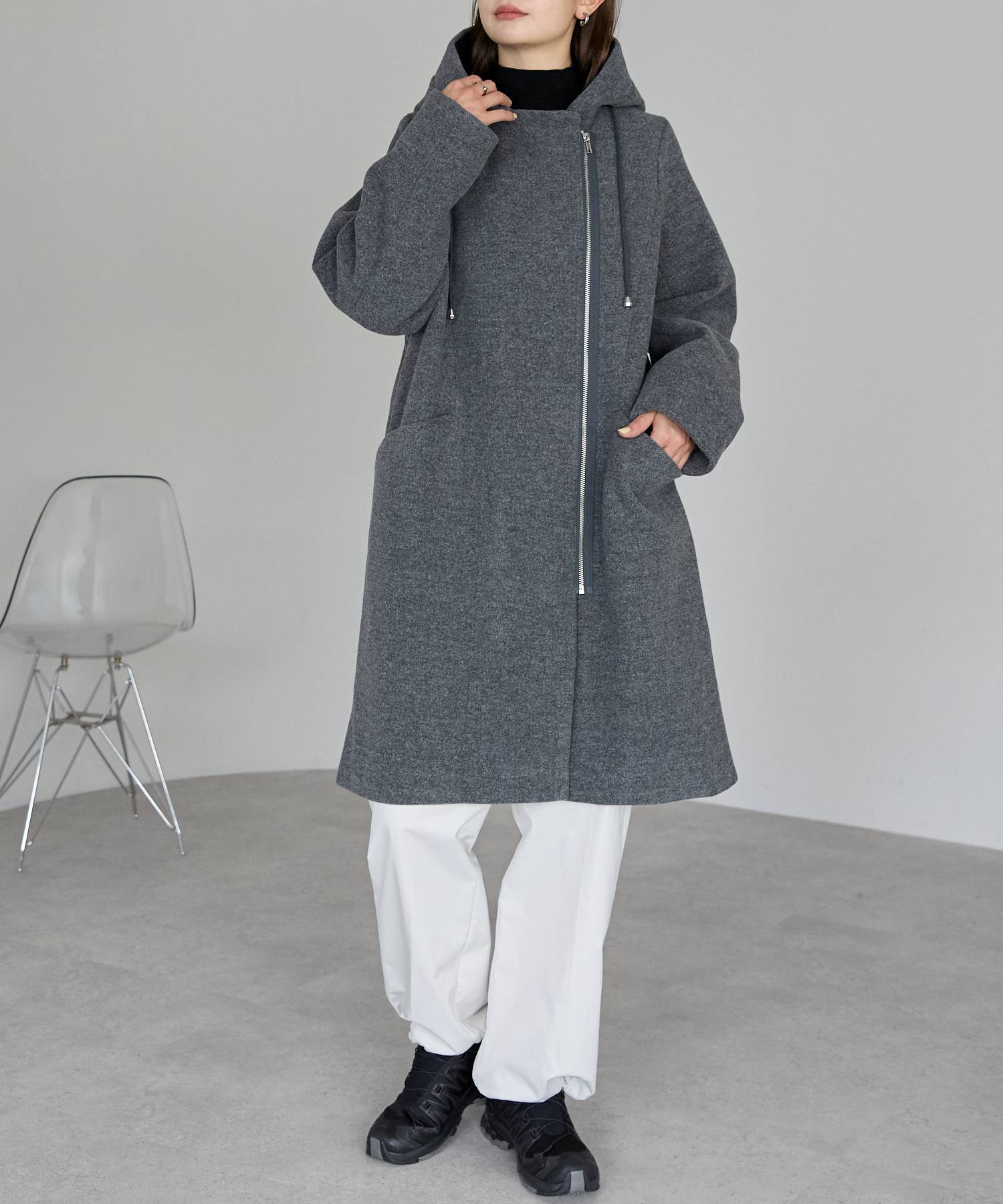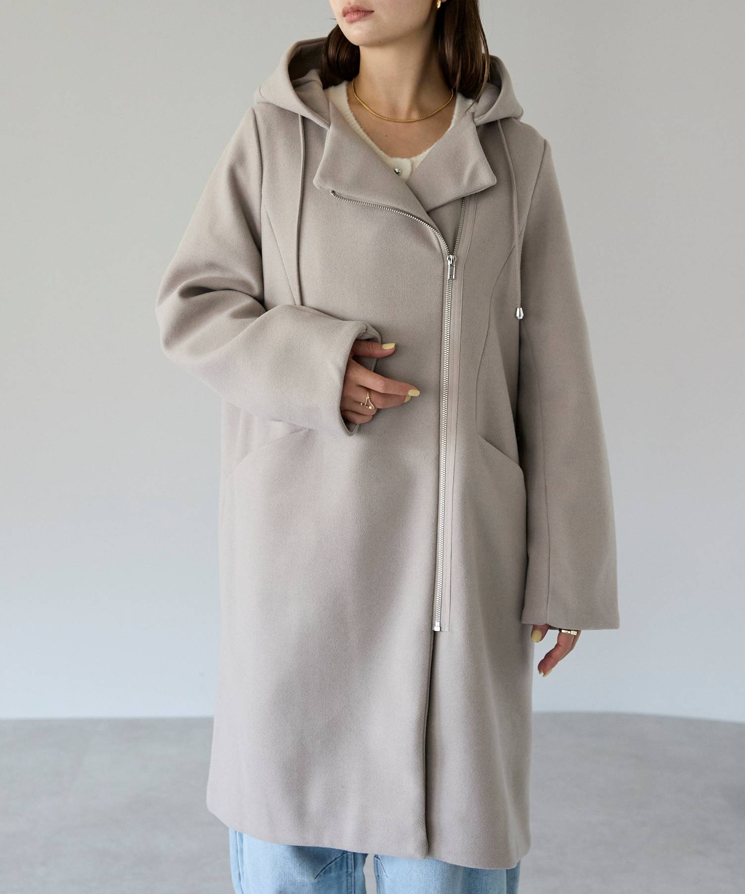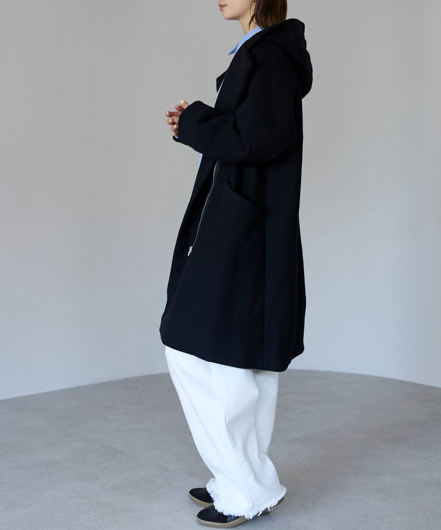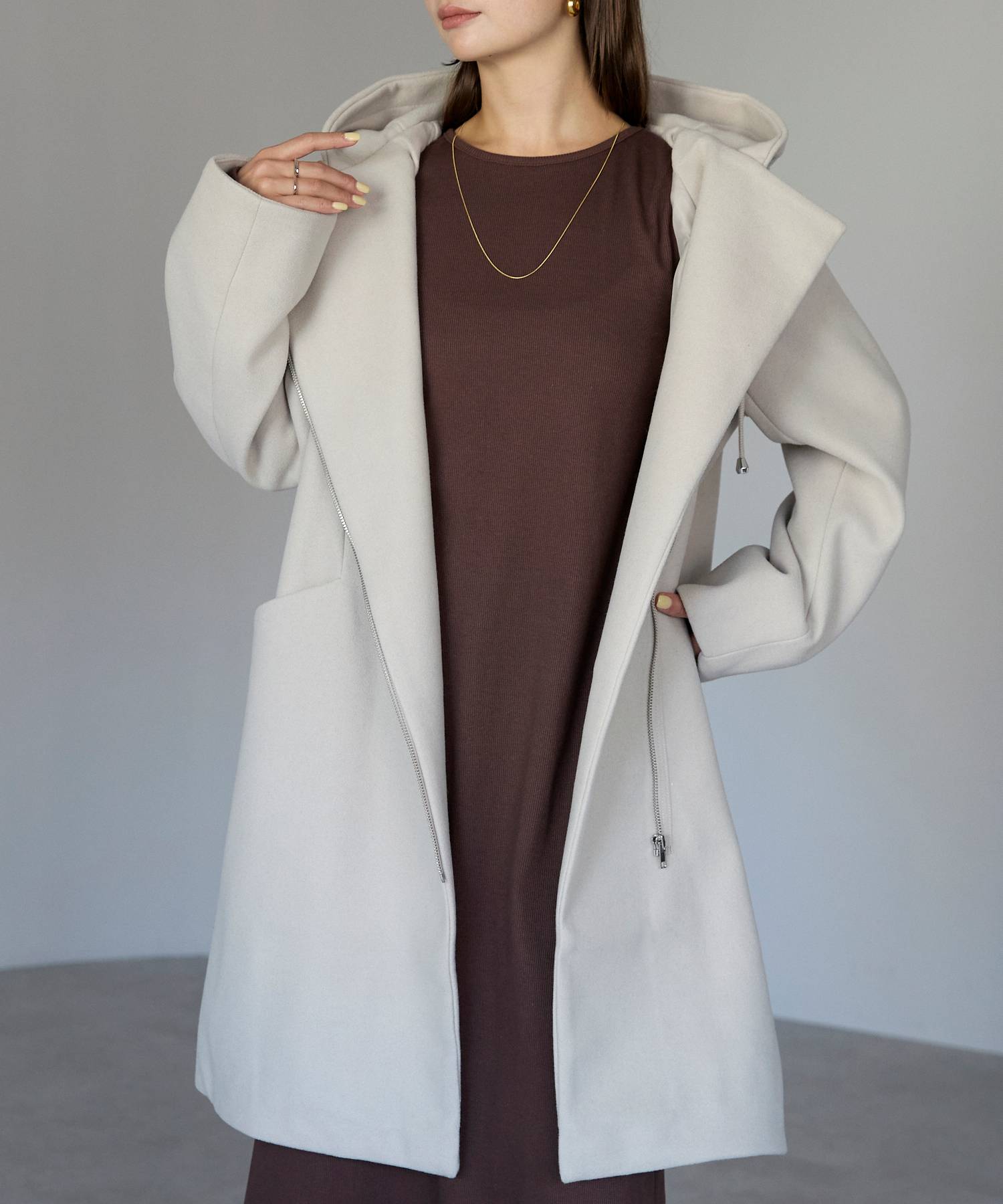 キレイ目にもカジュアルにもお使い頂けるフード付きコート。