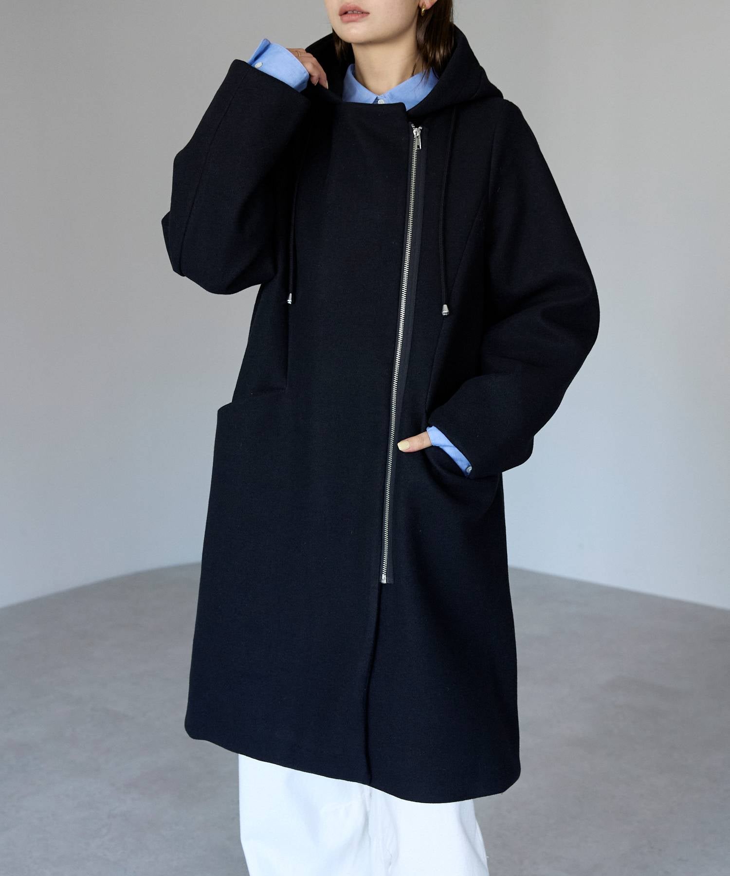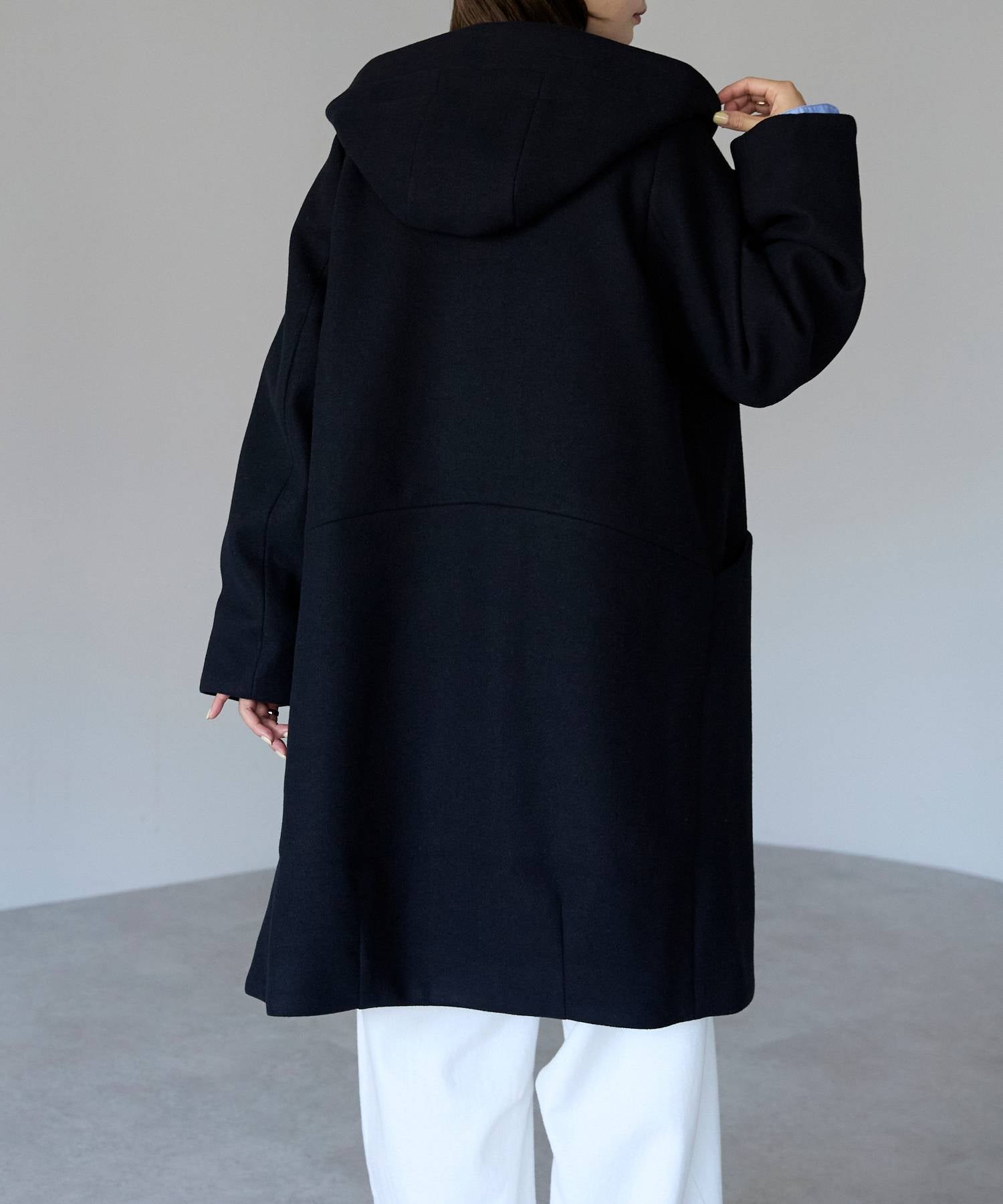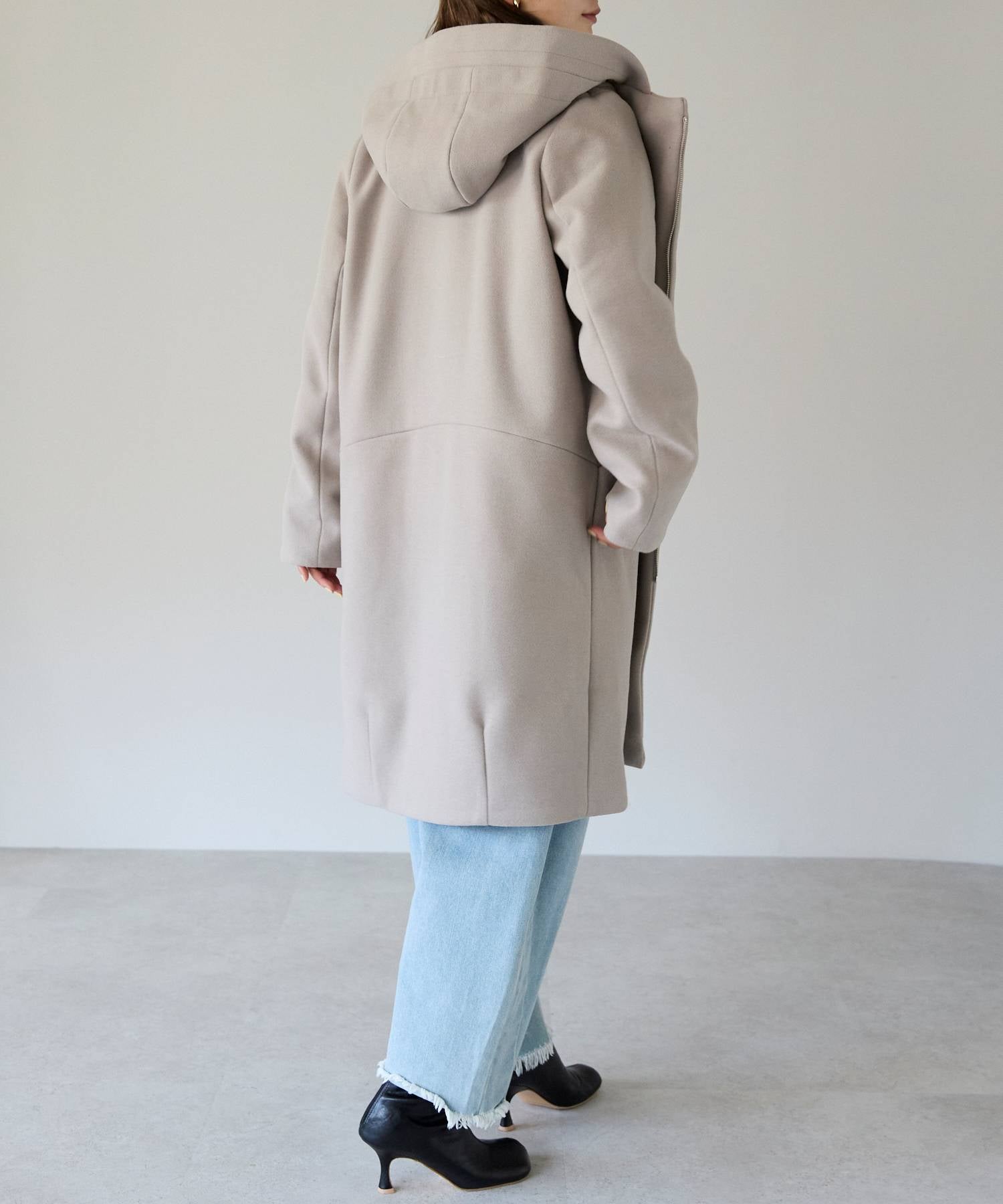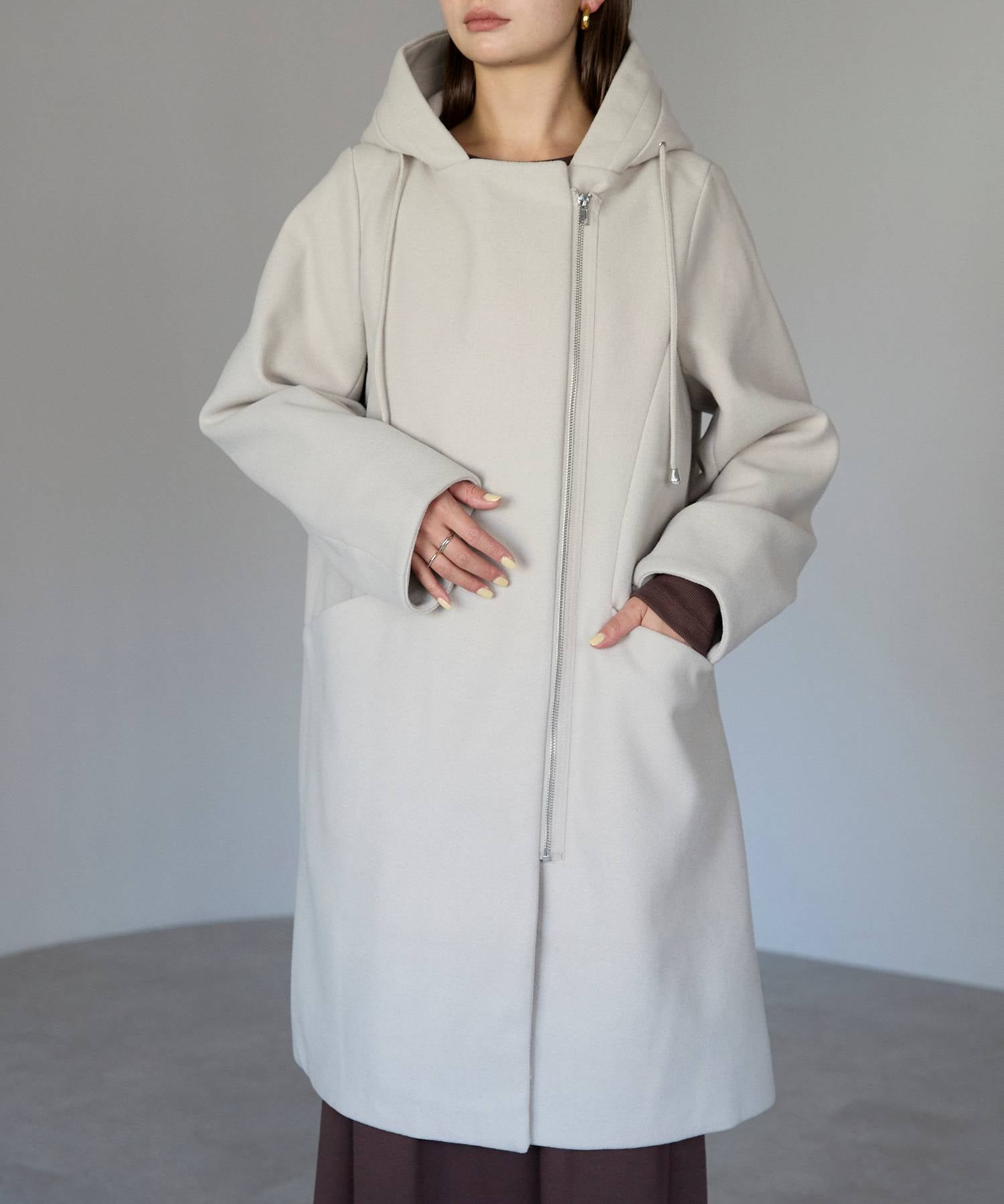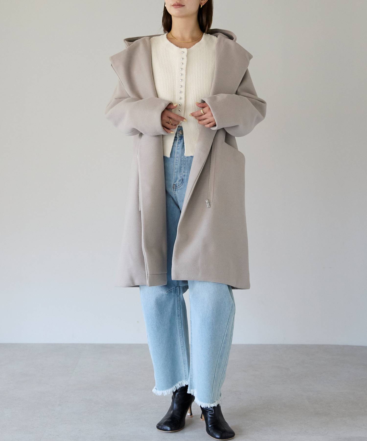 キレイ目にもカジュアルにもお使い頂けるフード付きコート。