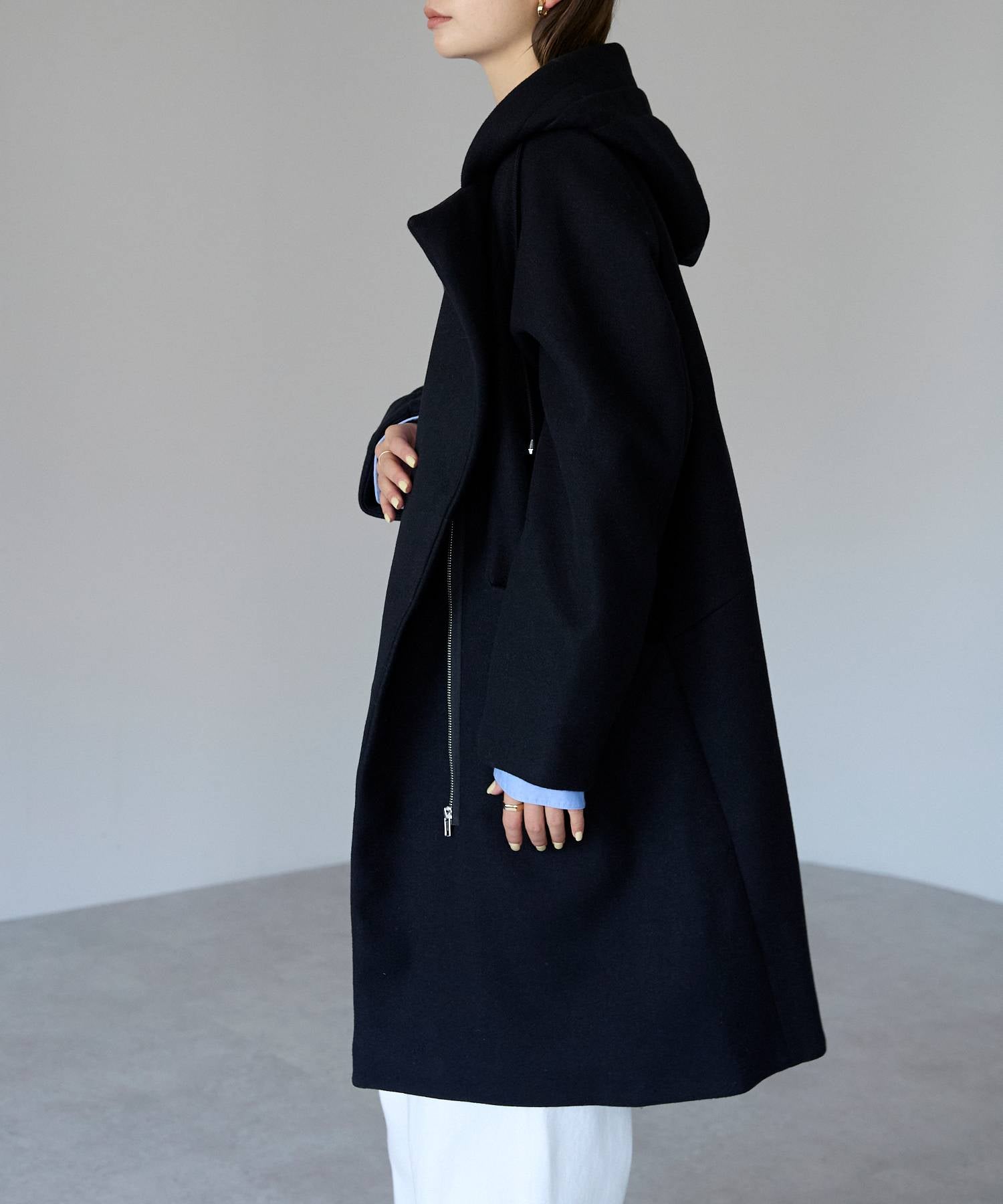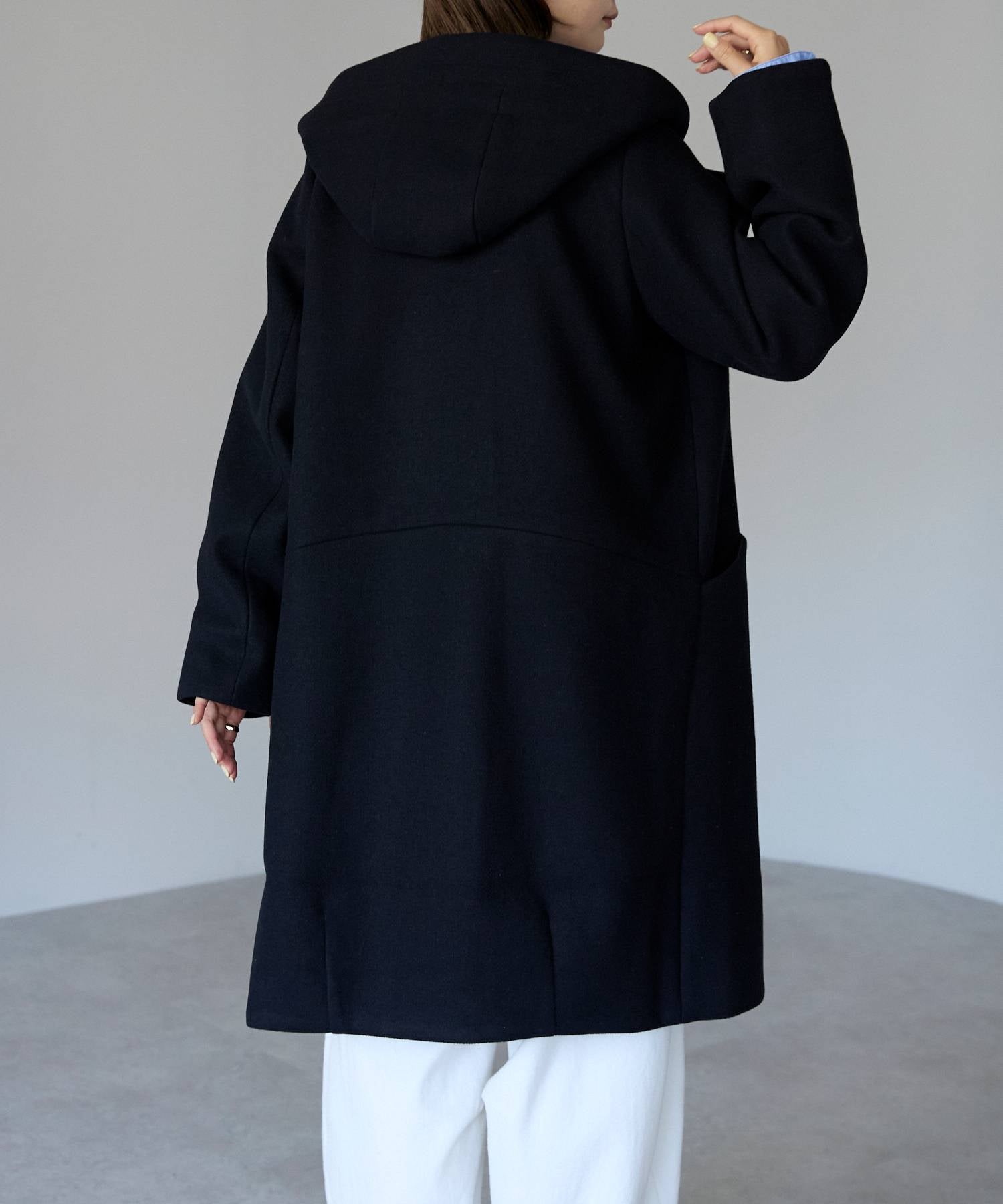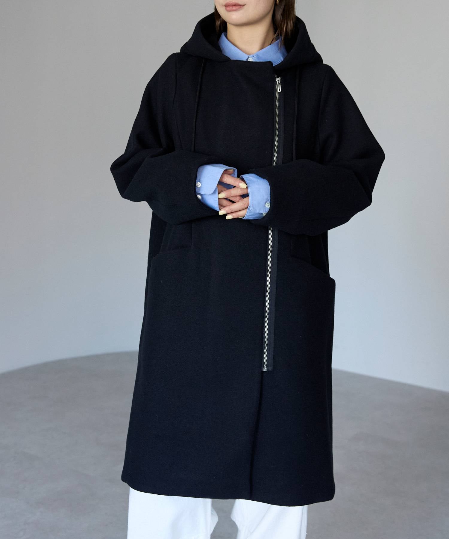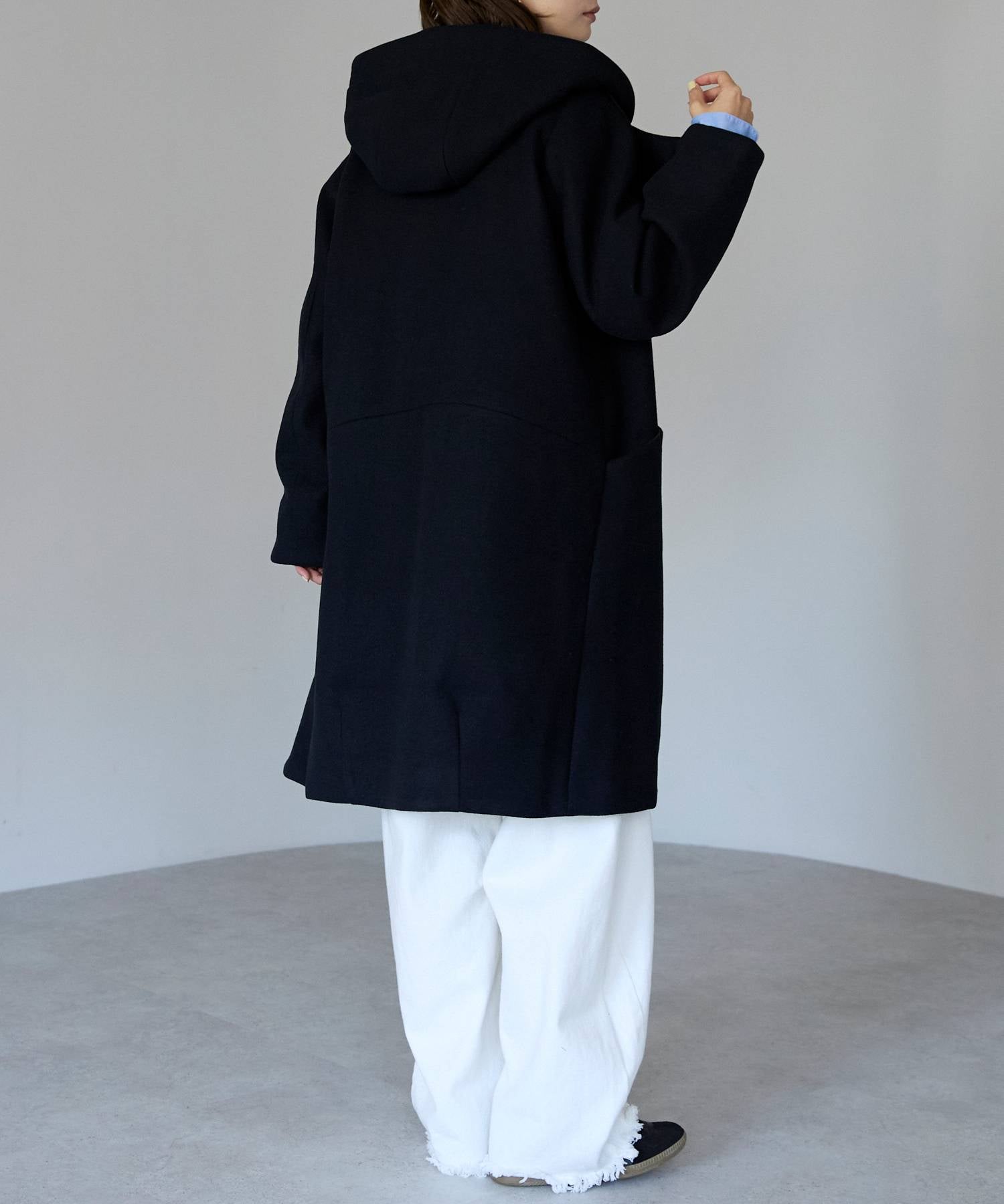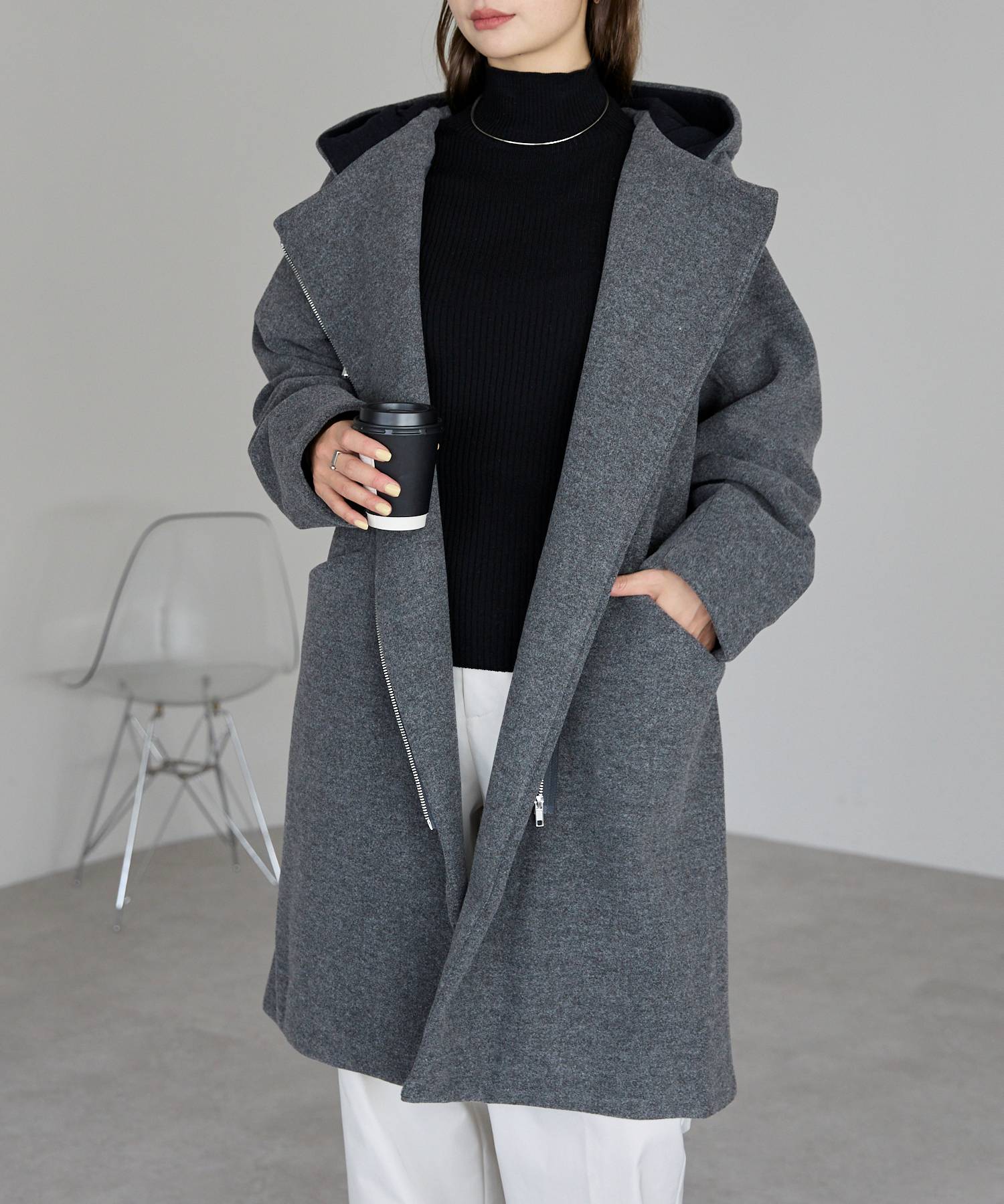 キレイ目にもカジュアルにもお使い頂けるフード付きコート。