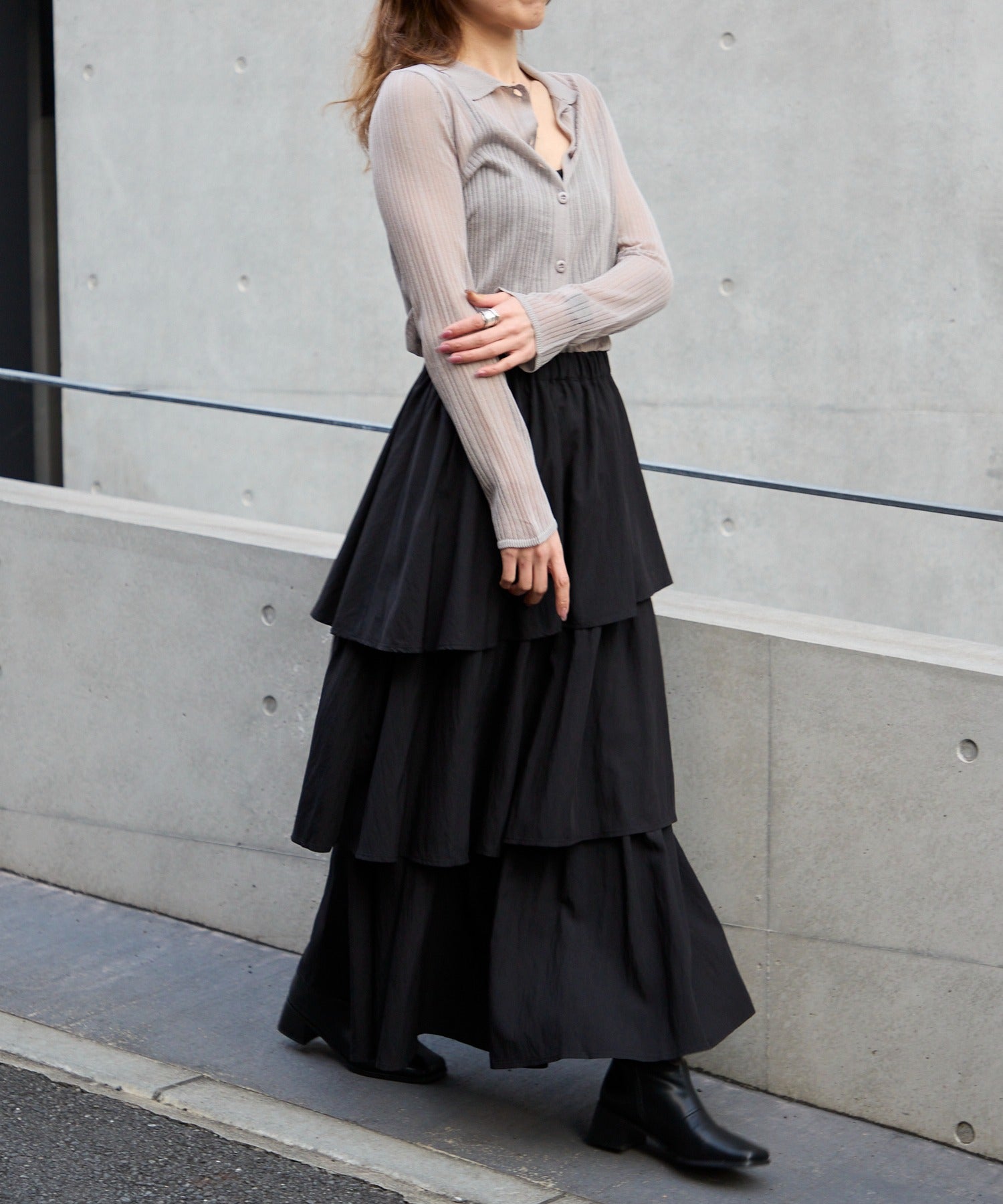 ・サテンスカートやワンピースに羽織ってシンプルでキレイめな着こなしもおすすめです。