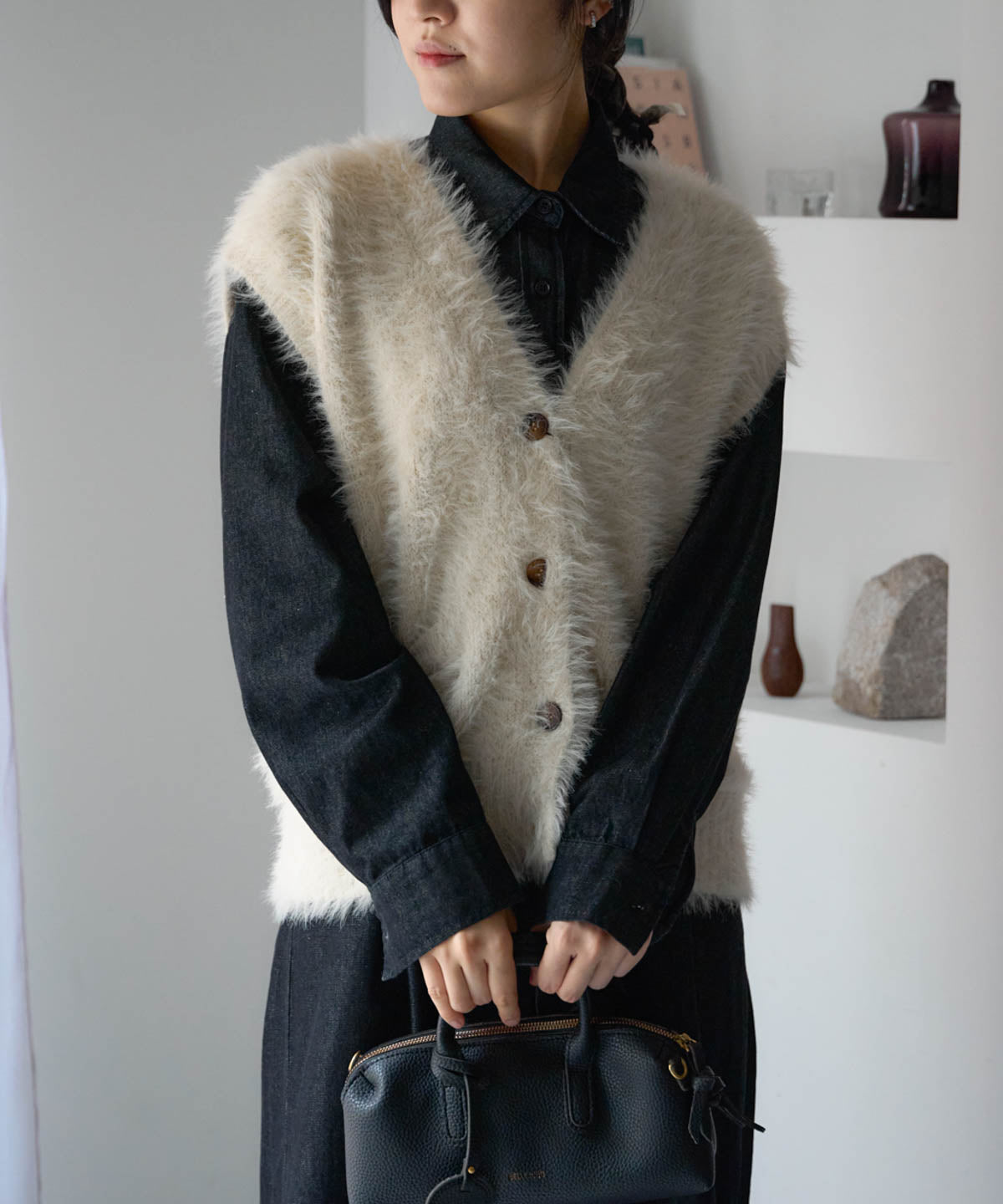 柔らかく軽やかな素材感が魅力のトレンドベスト