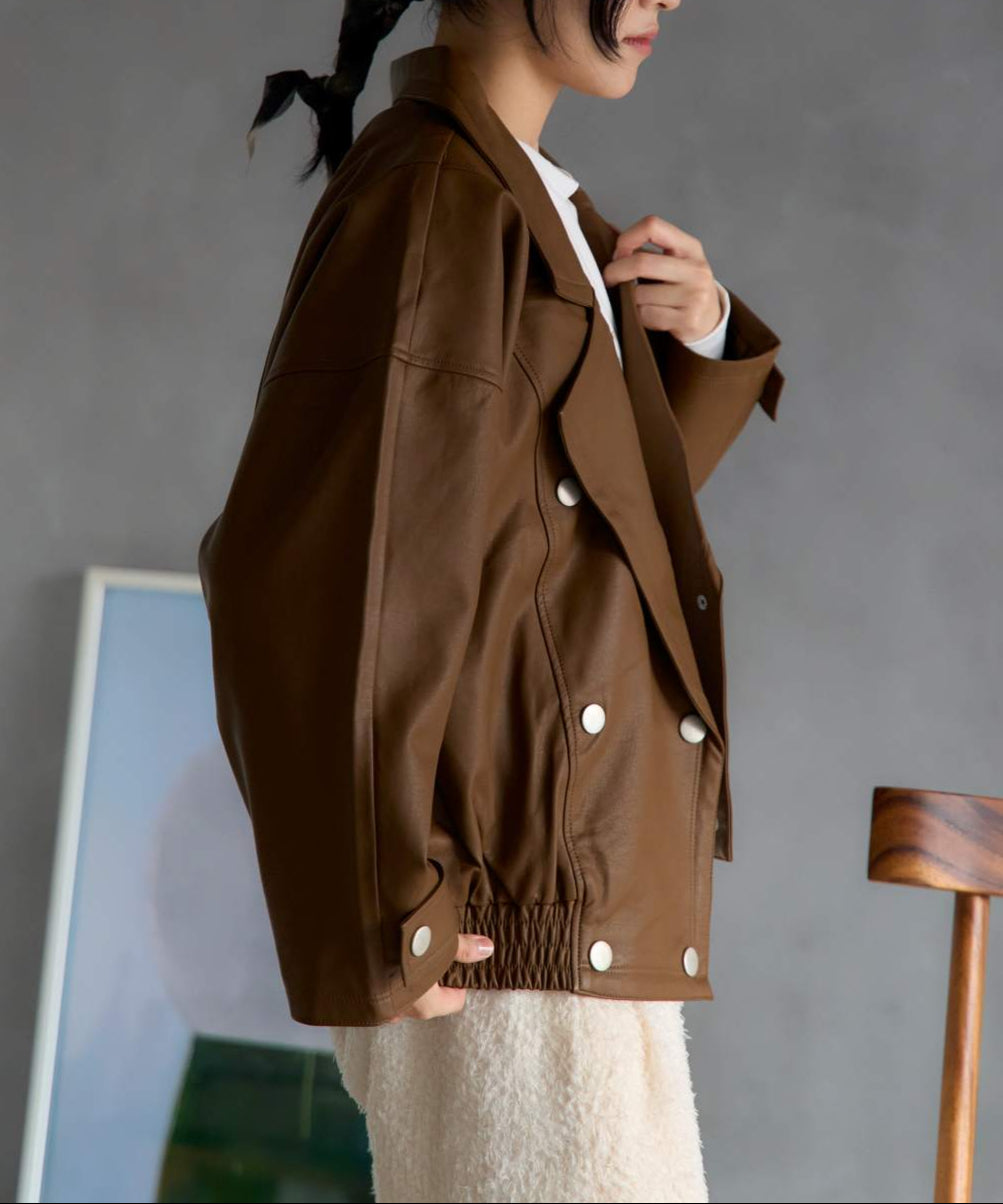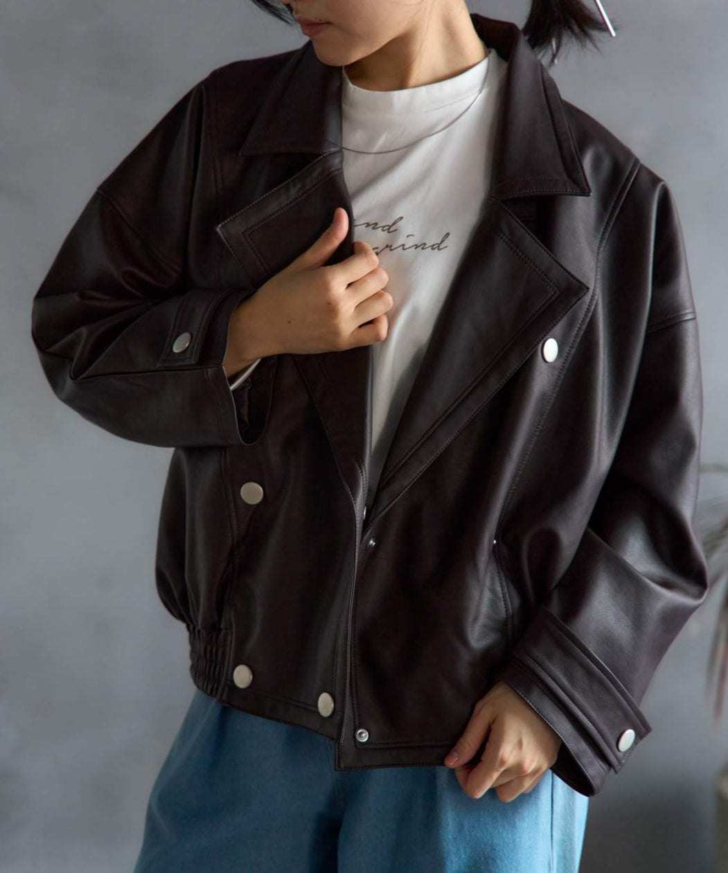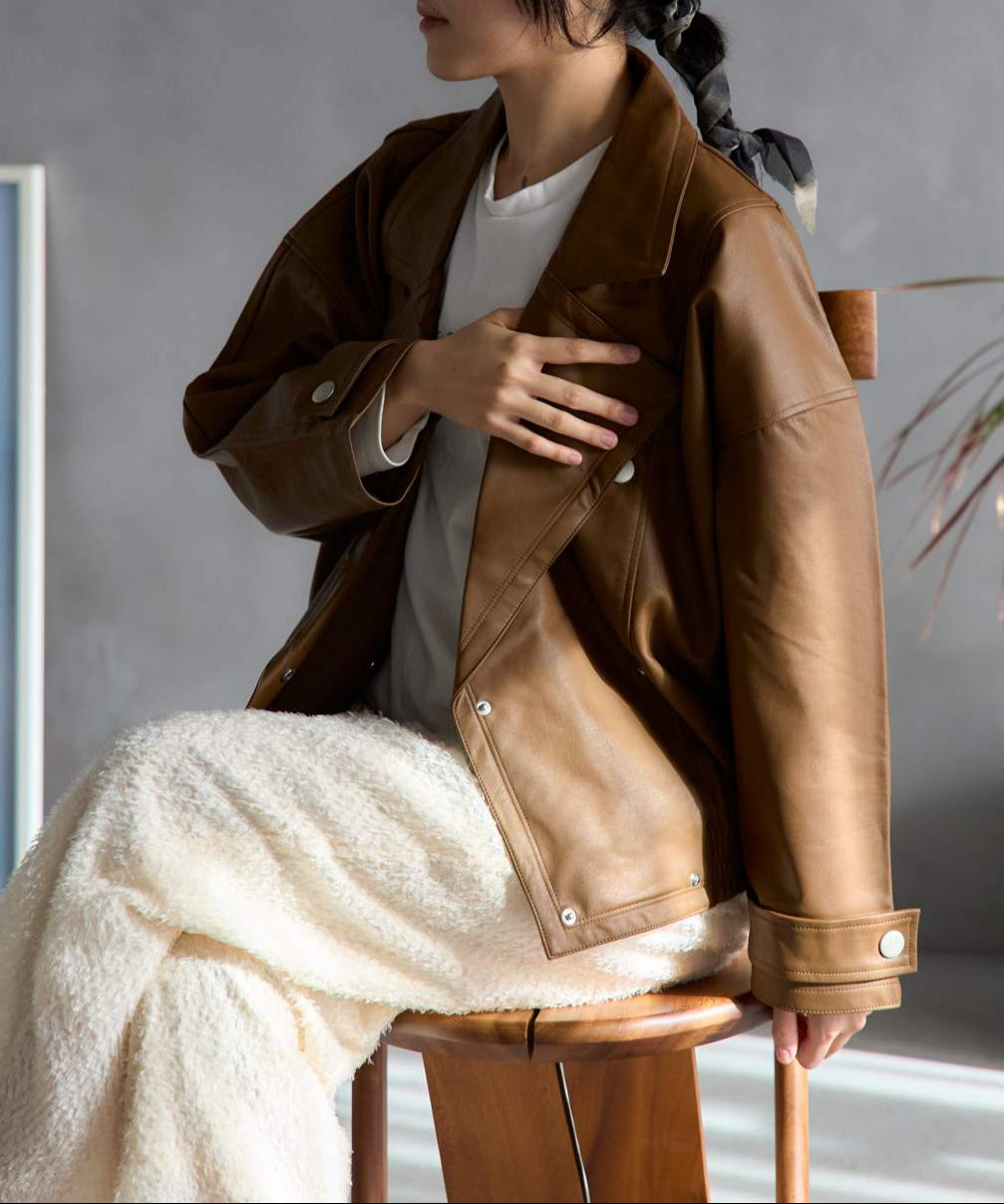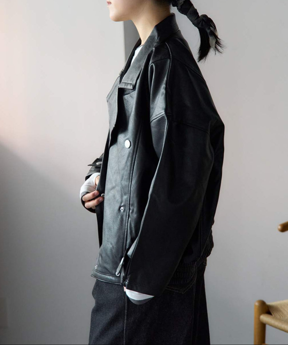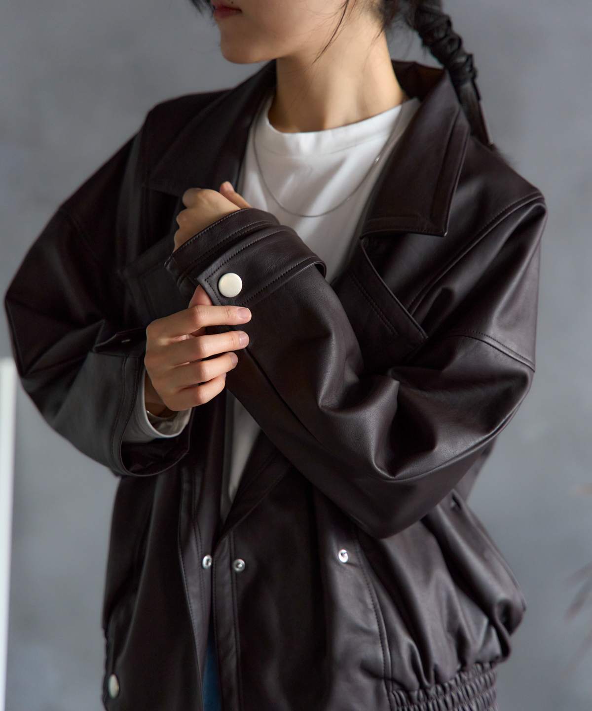 ◆オーバーサイズでこなれ感をプラスしたフェイクレザージャケット◆