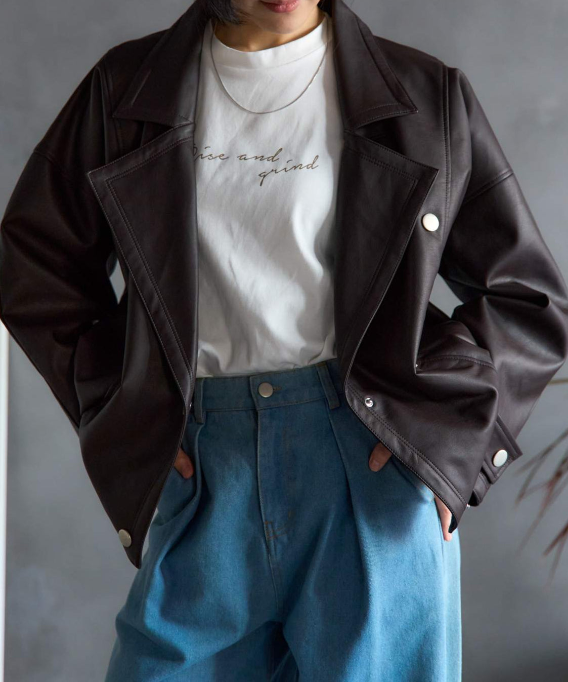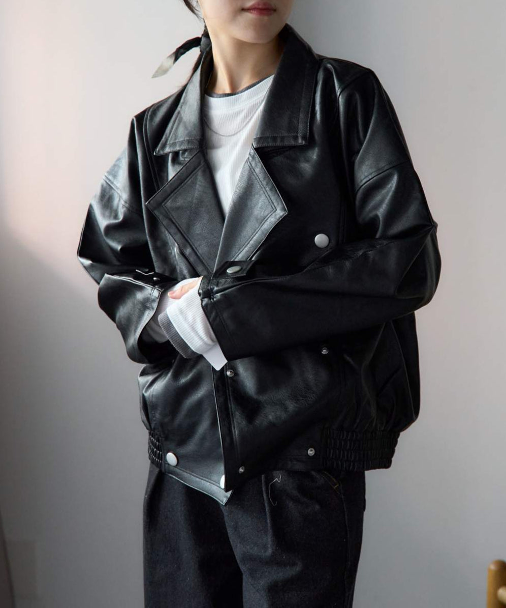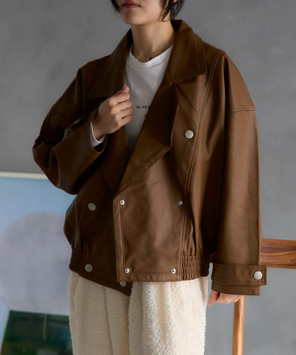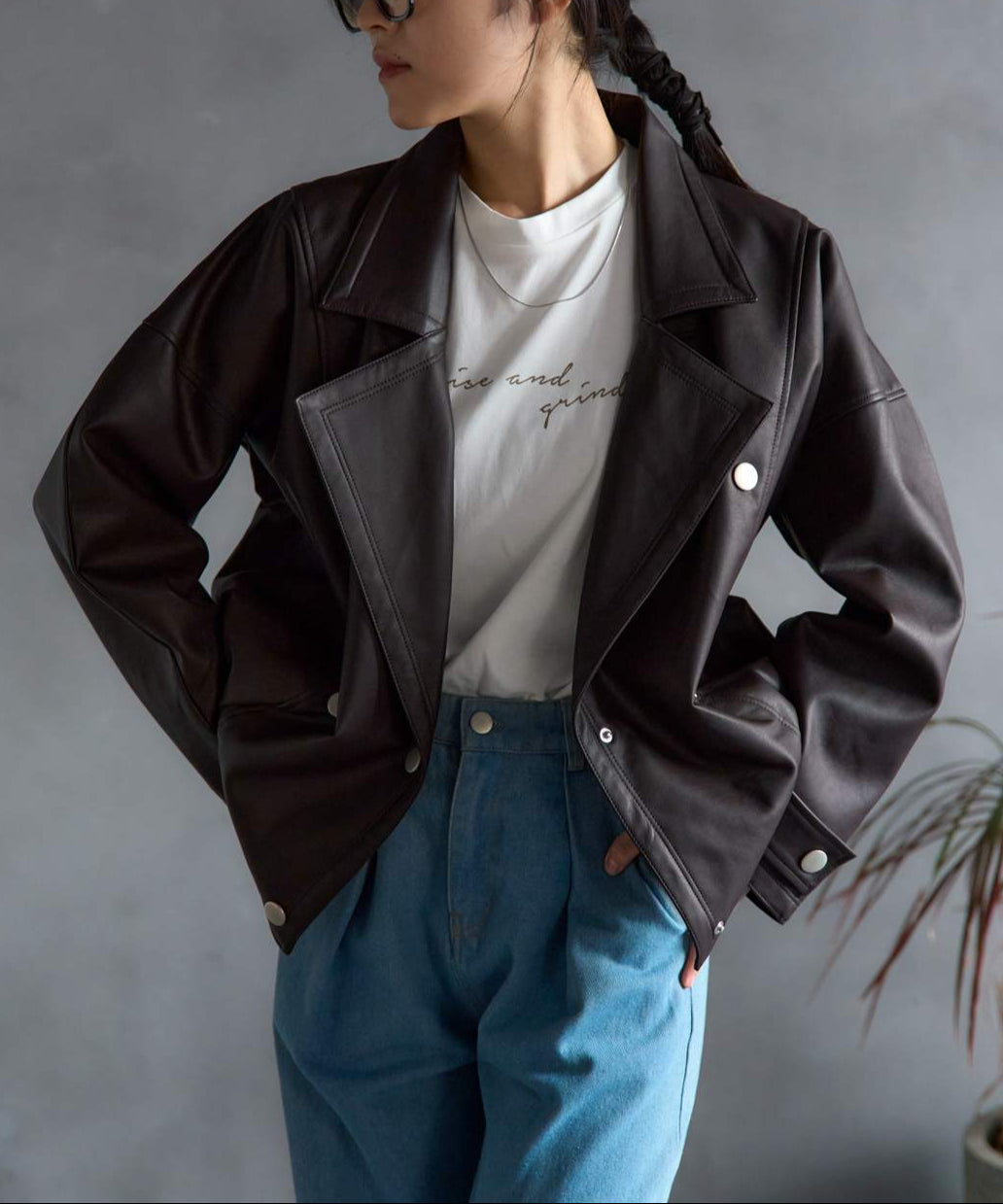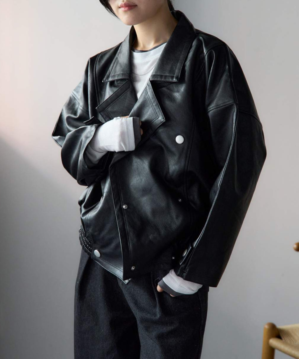 ◆オーバーサイズでこなれ感をプラスしたフェイクレザージャケット◆