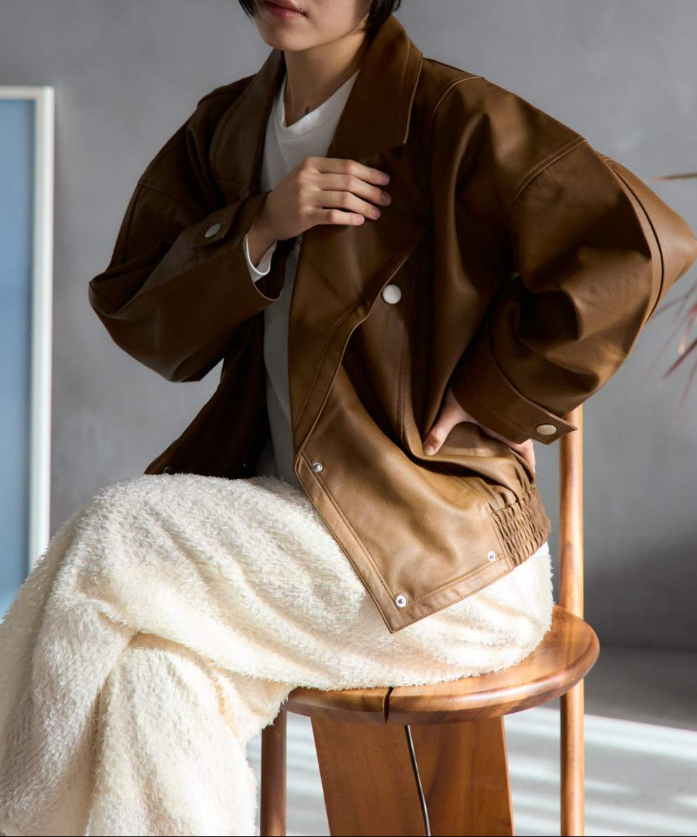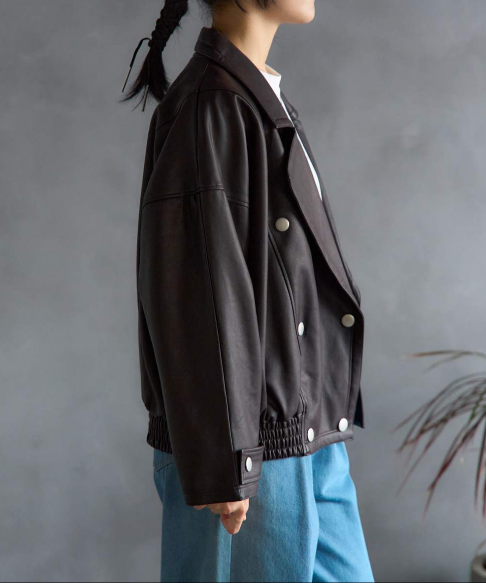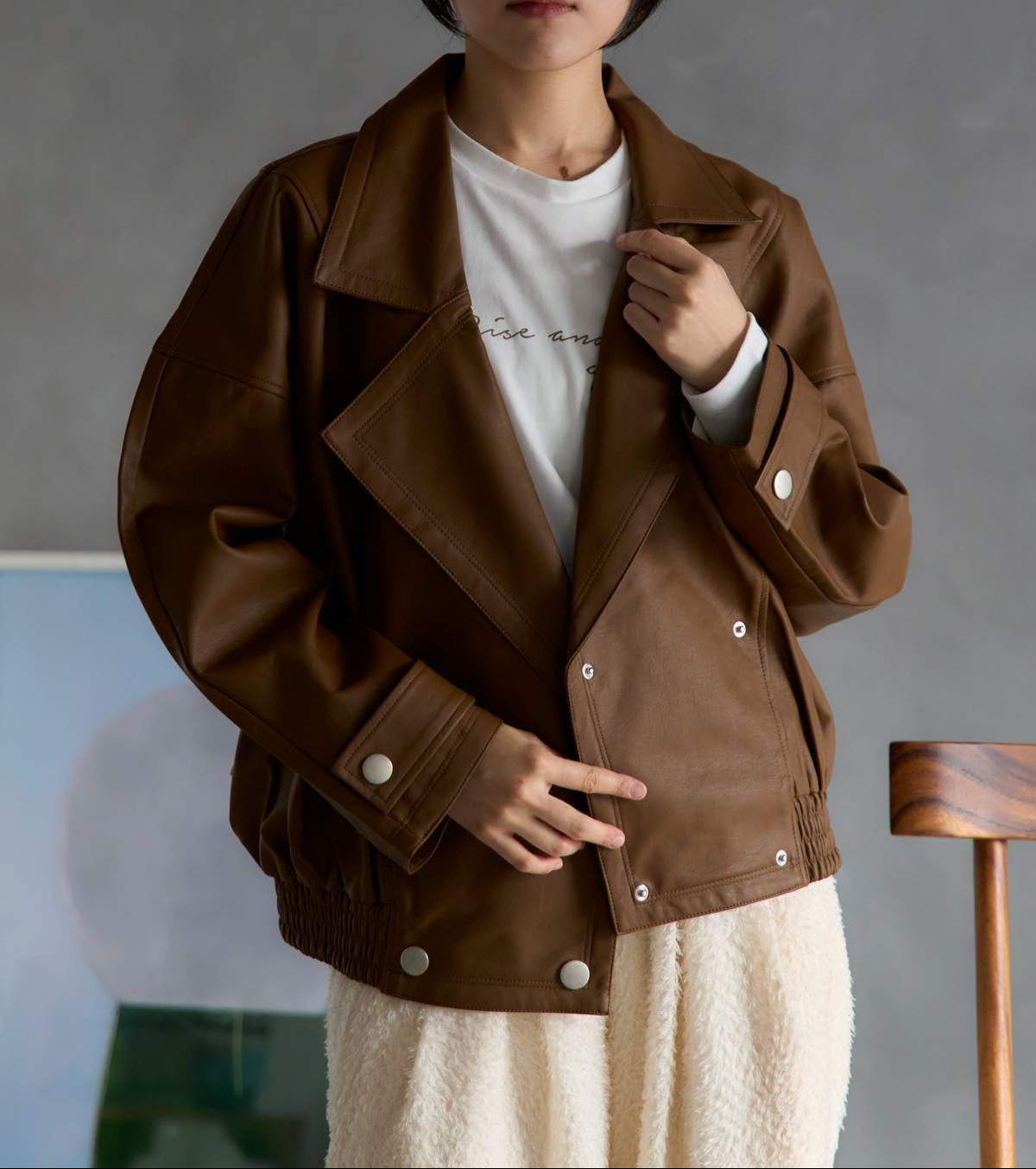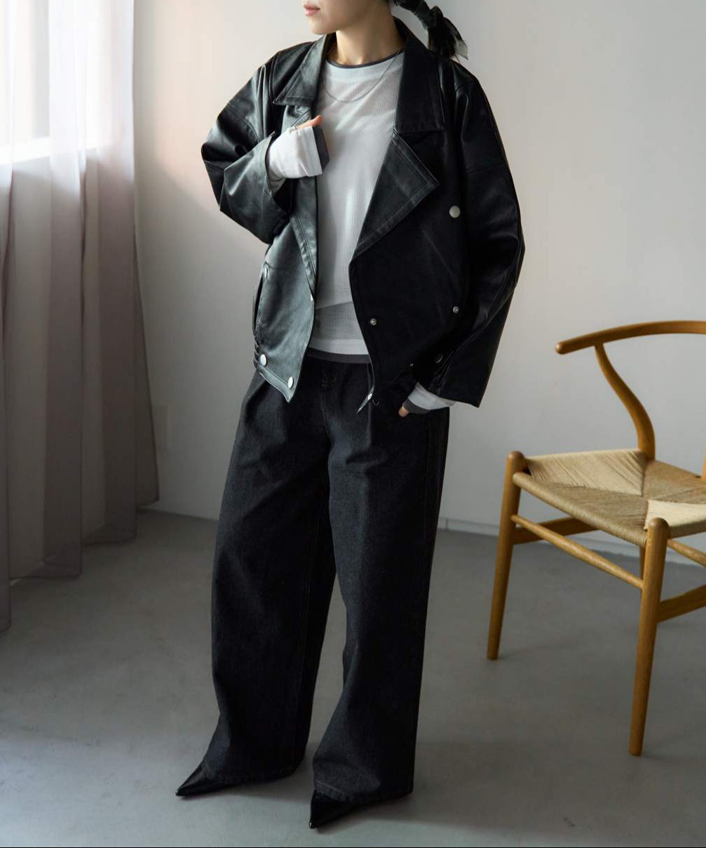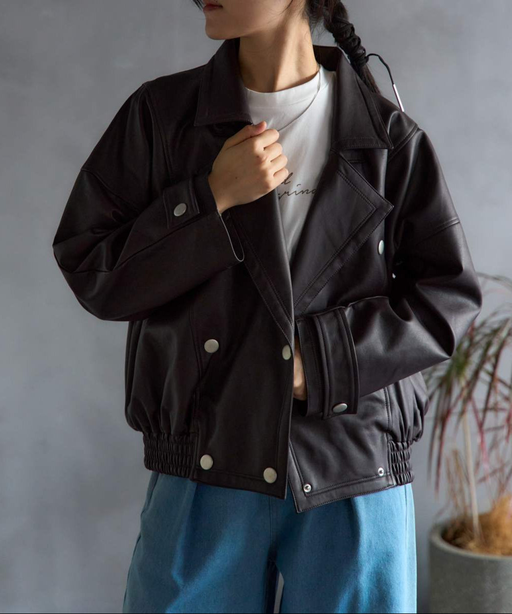 ◆オーバーサイズでこなれ感をプラスしたフェイクレザージャケット◆