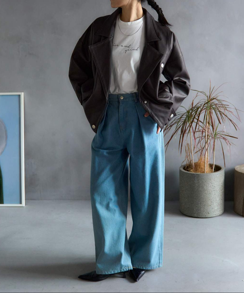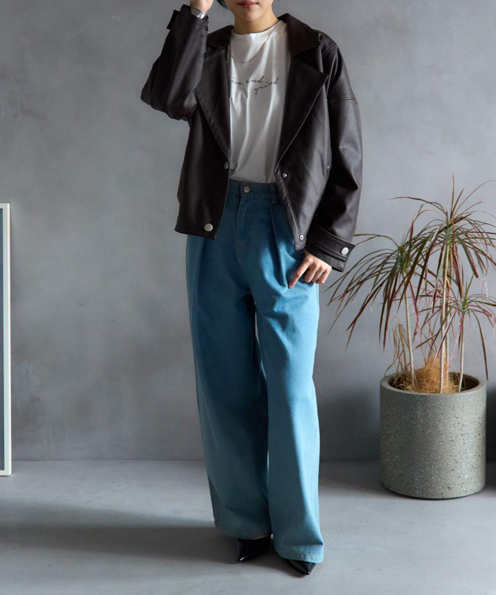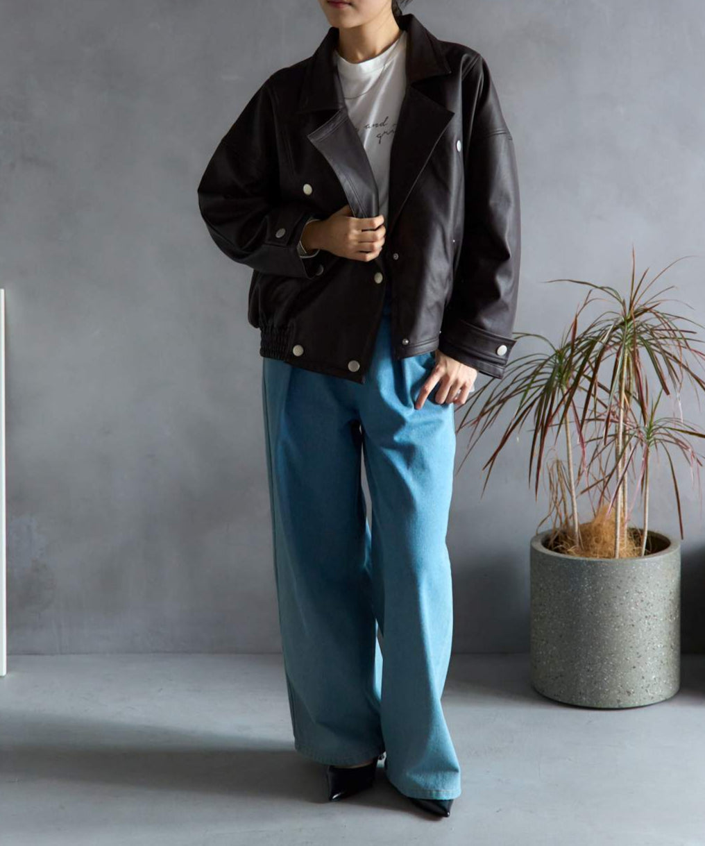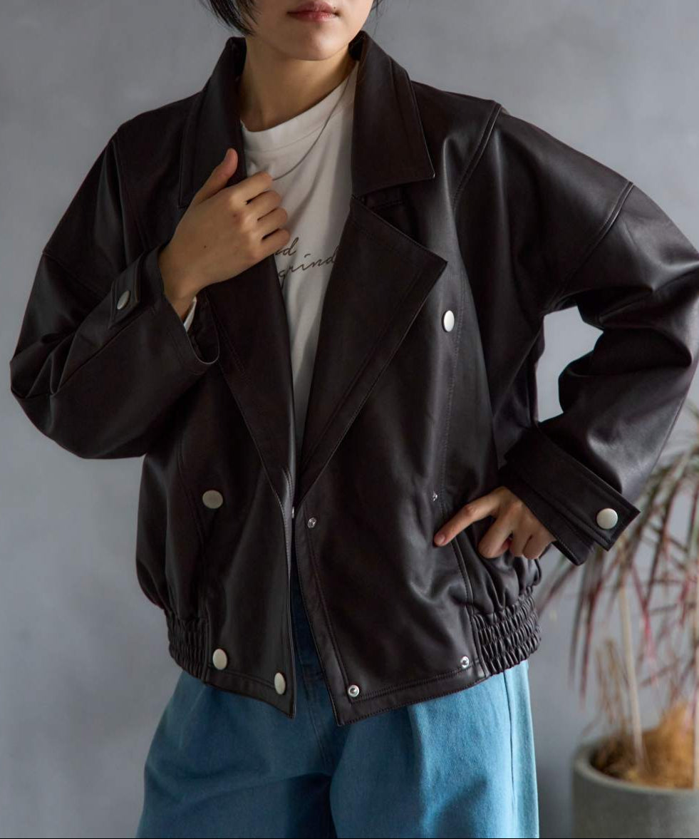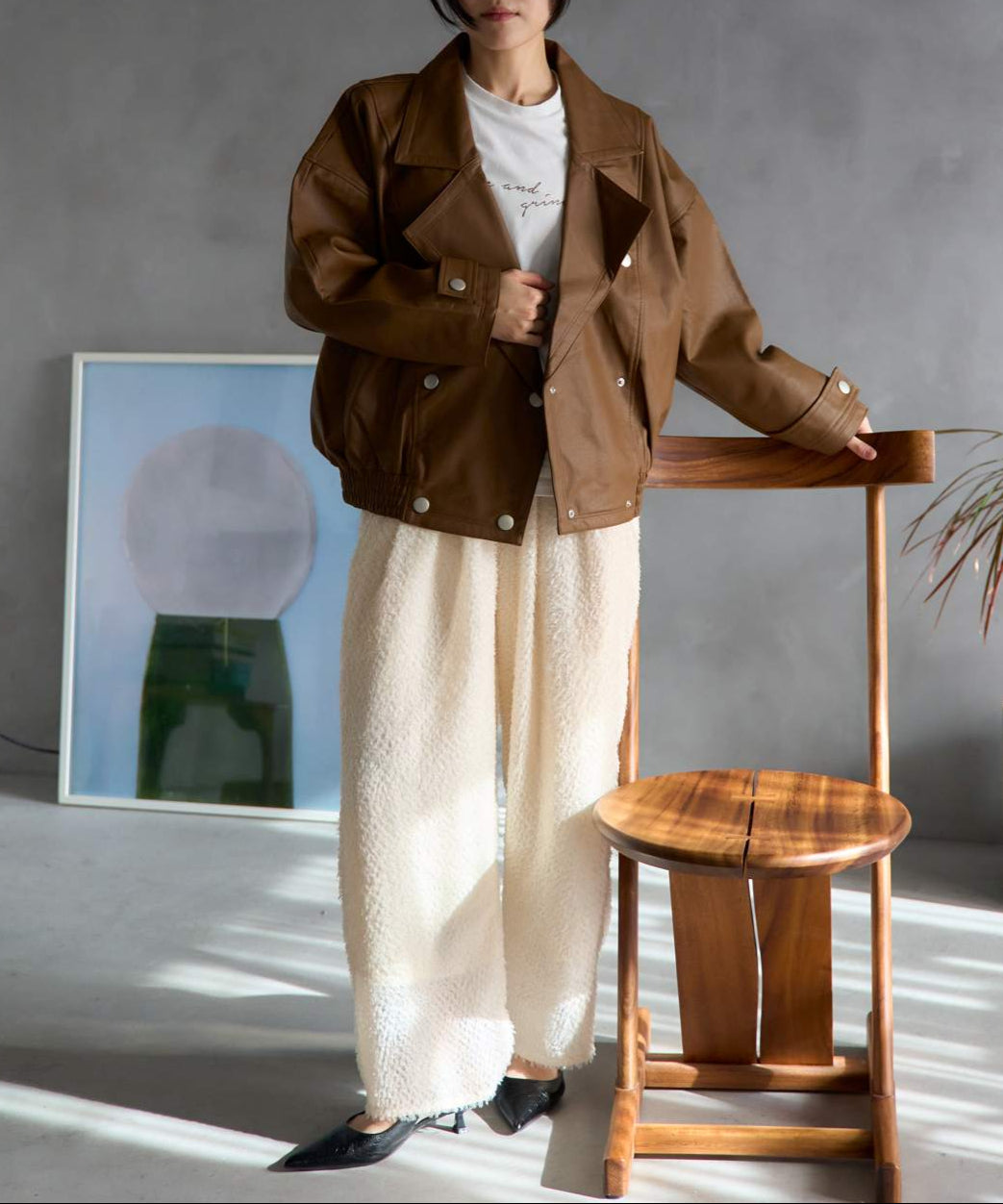 ◆オーバーサイズでこなれ感をプラスしたフェイクレザージャケット◆