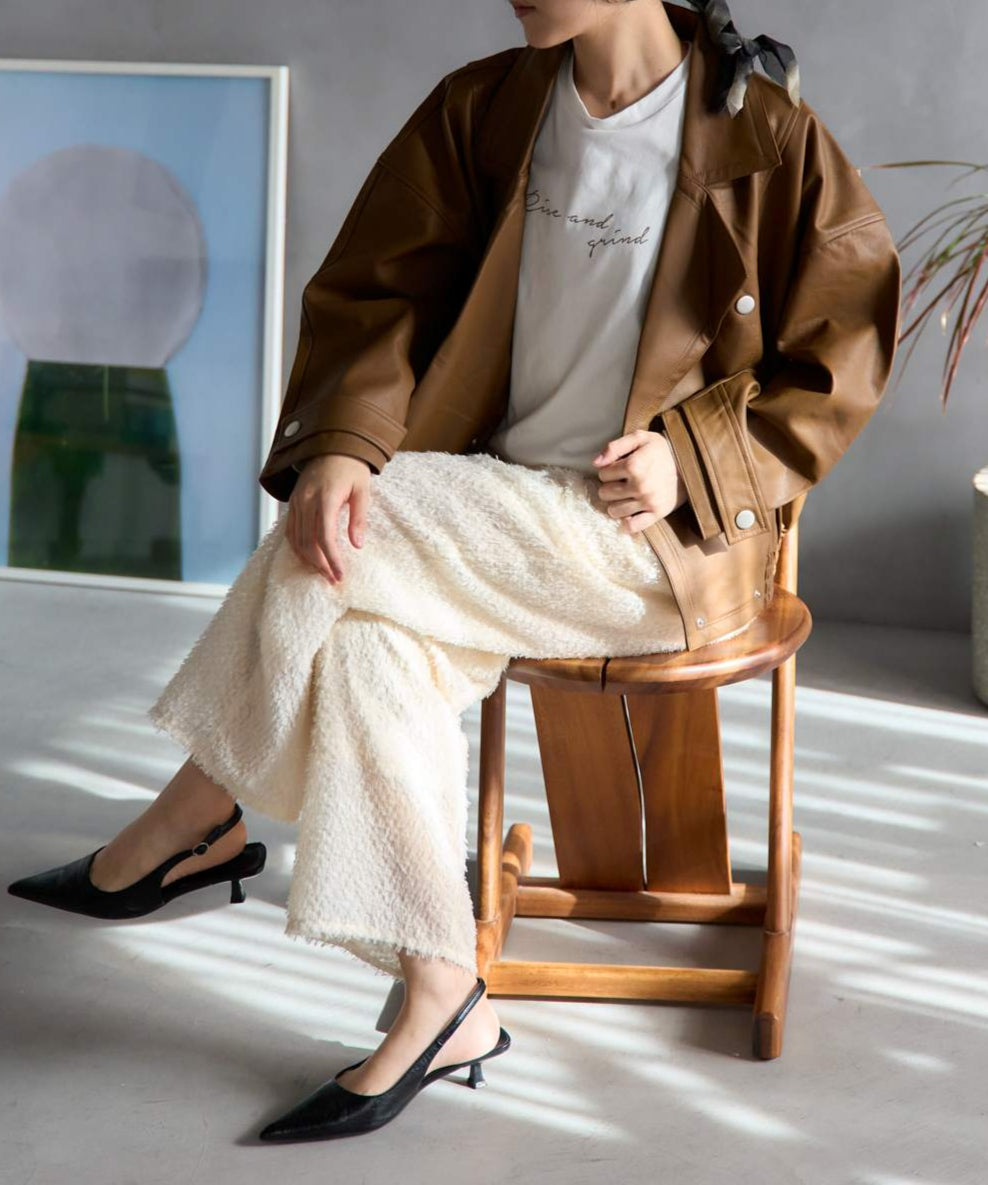 ・ワンピースやスカートと合わせてフェミニンなスタイルにもおすすめです◎