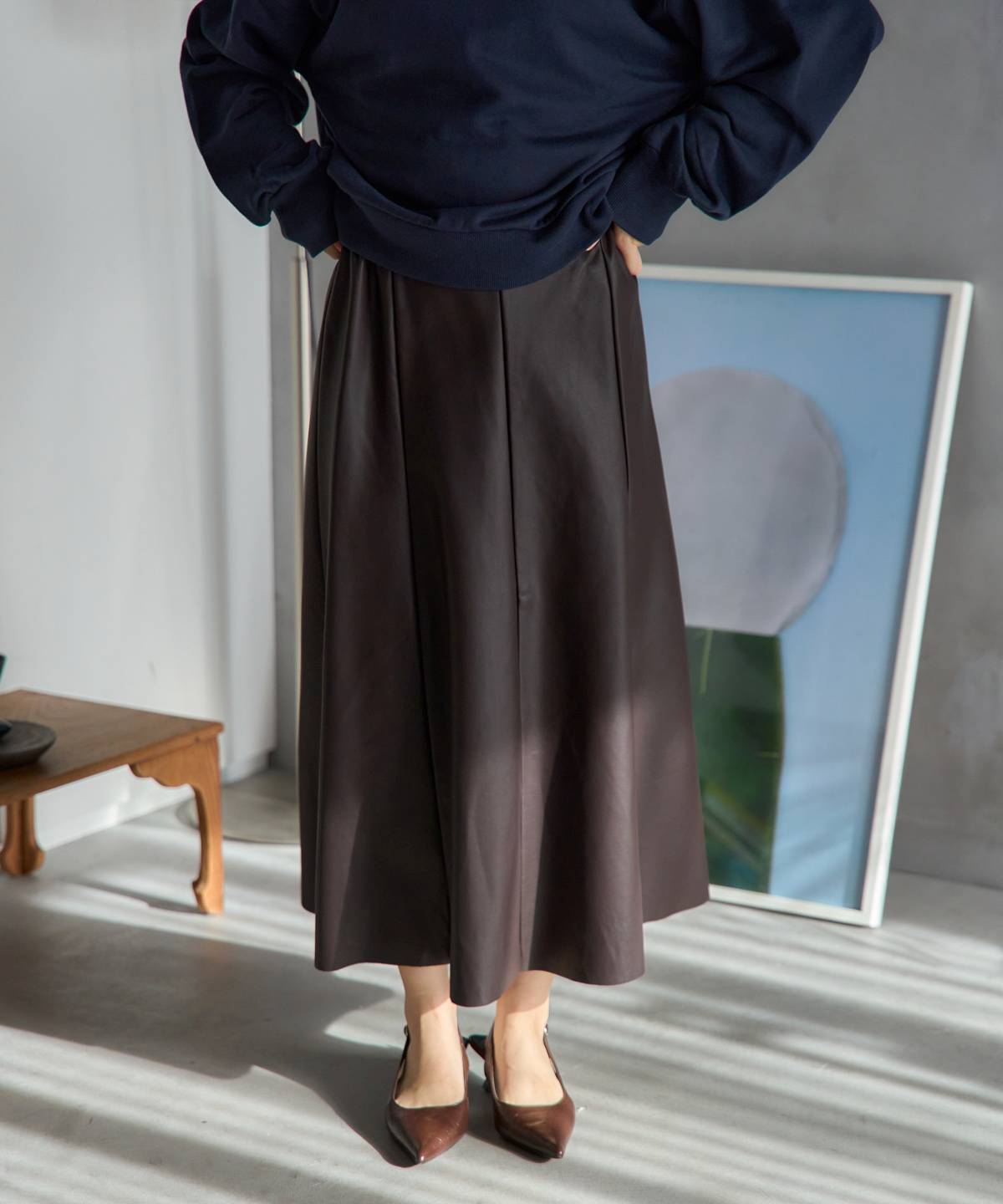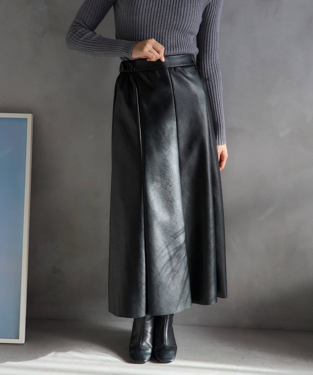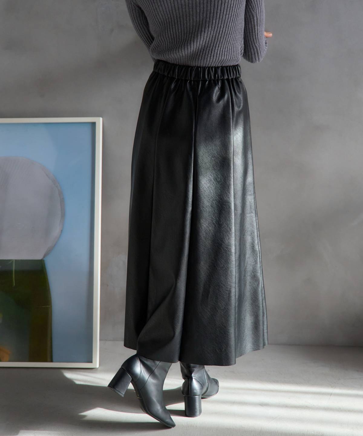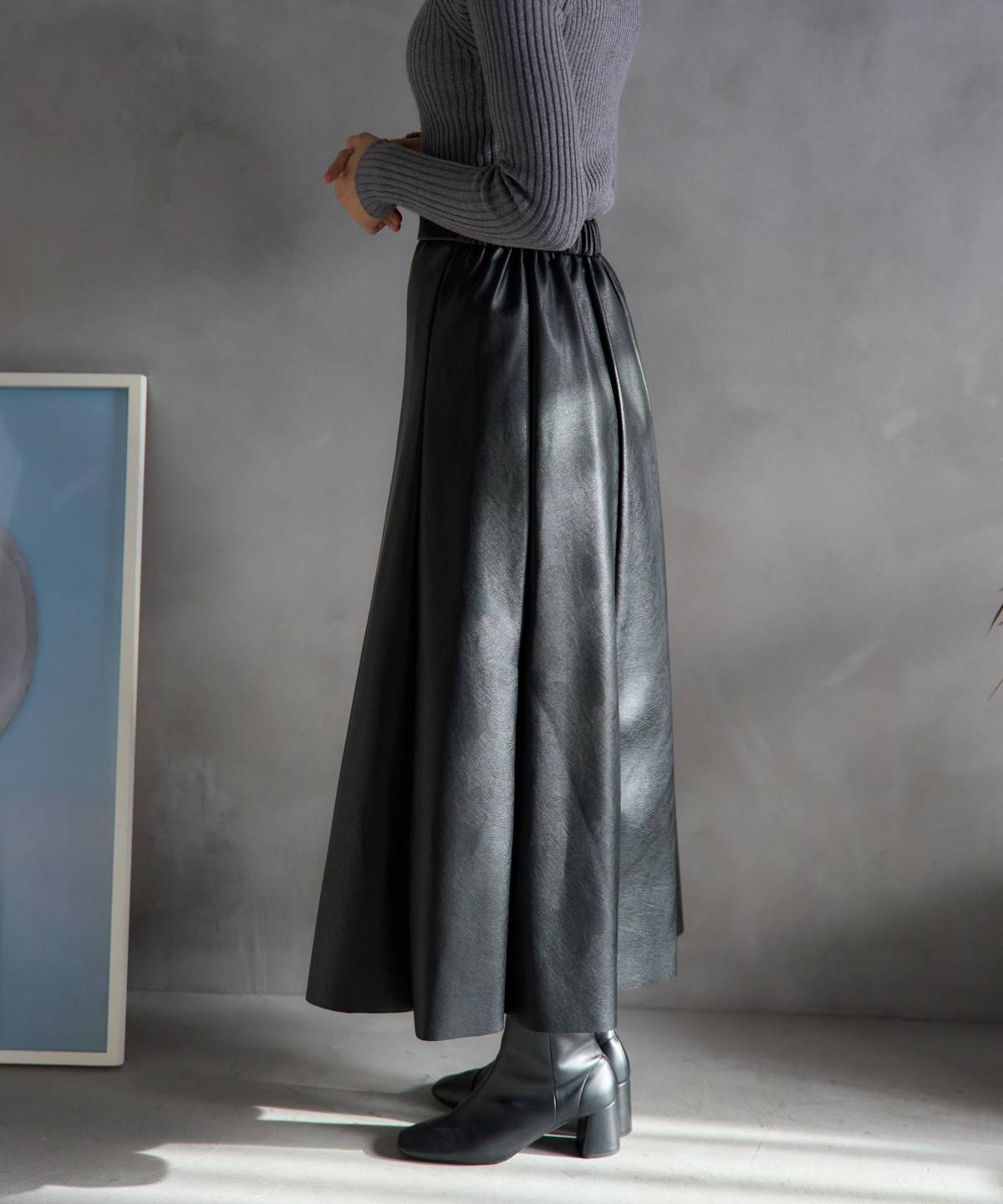 フェイクレザーフレアスカート〈セットアップ対応〉