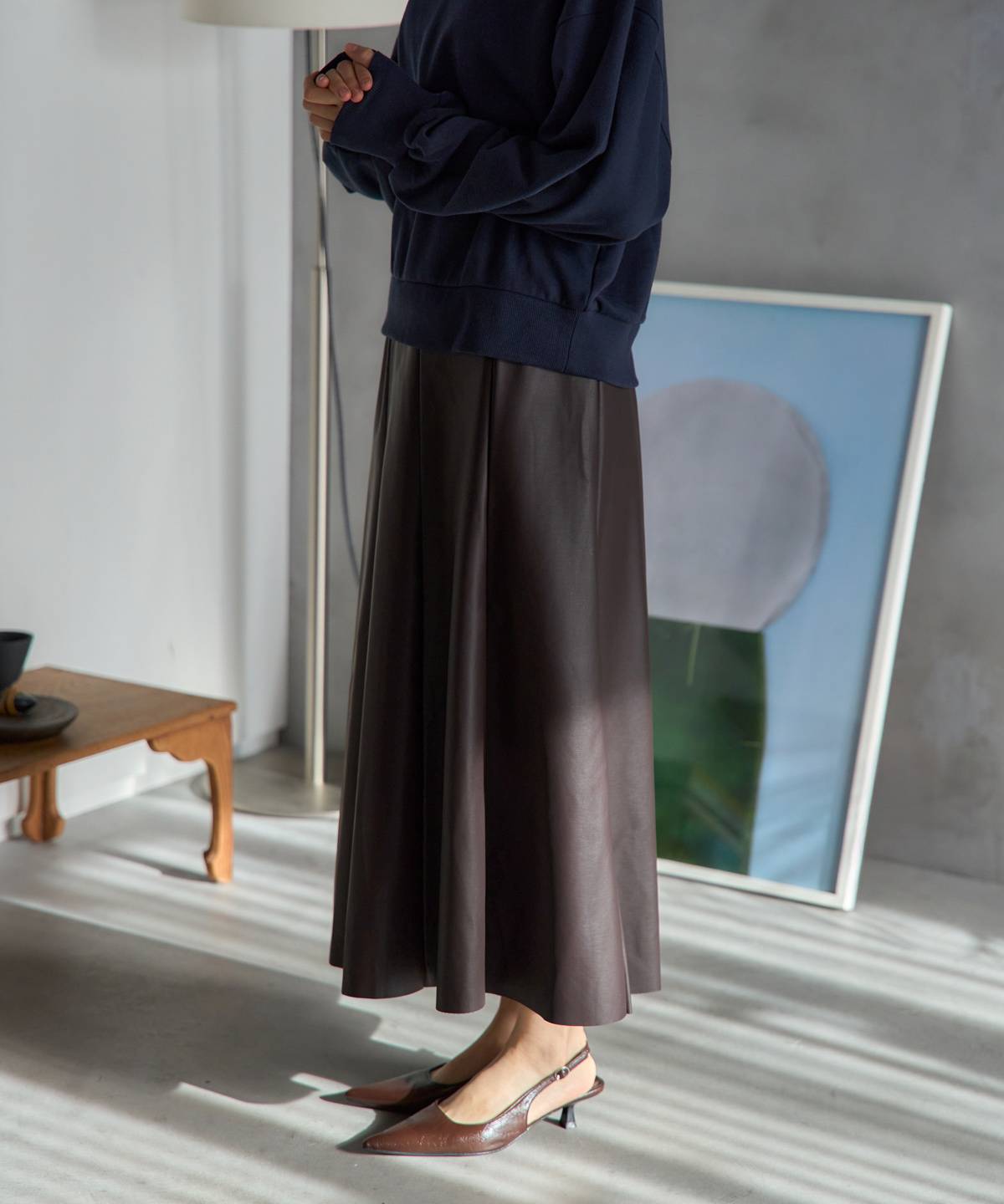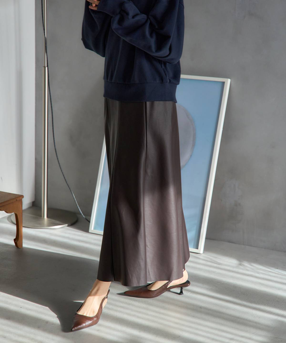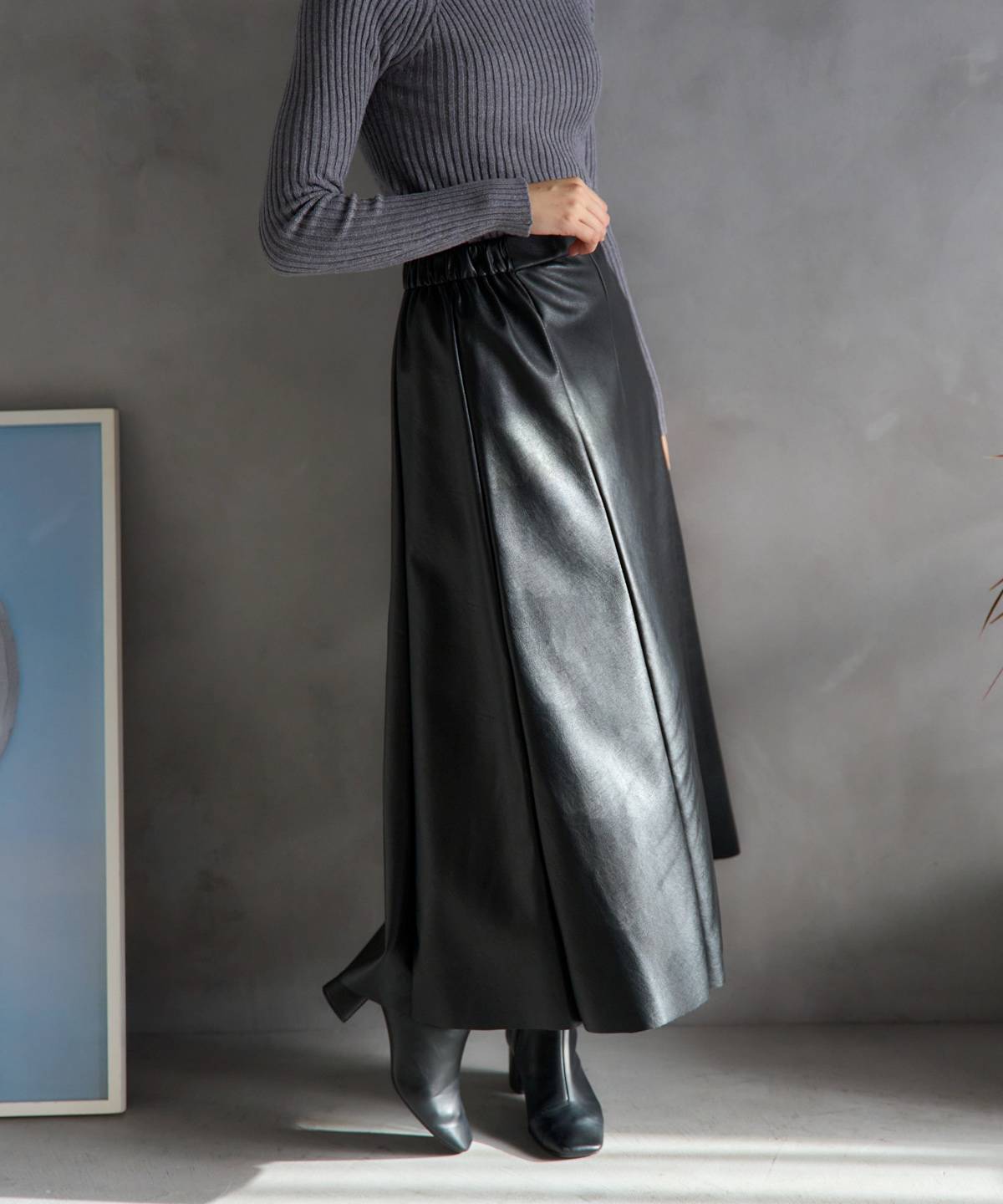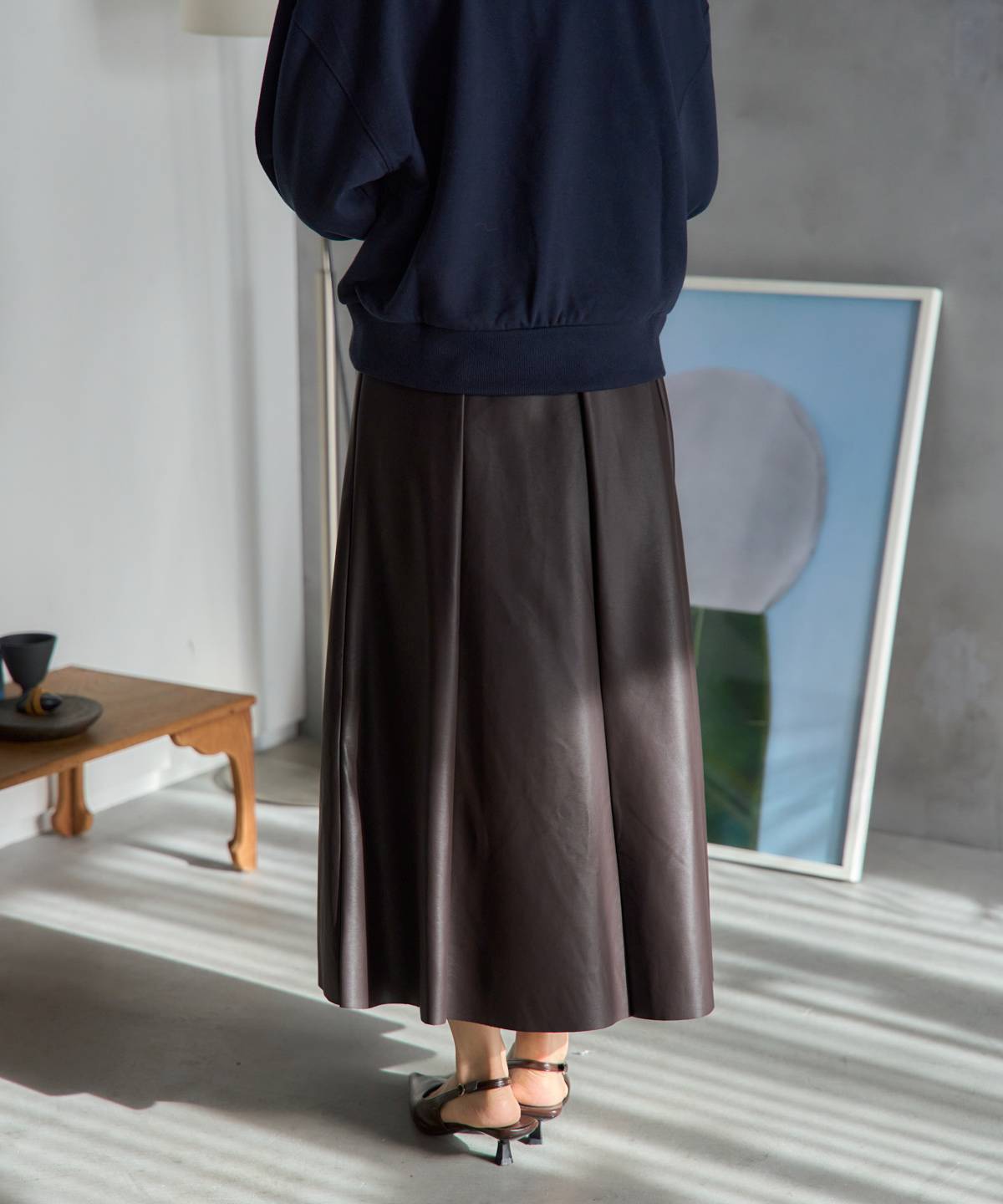 フェイクレザーフレアスカート〈セットアップ対応〉