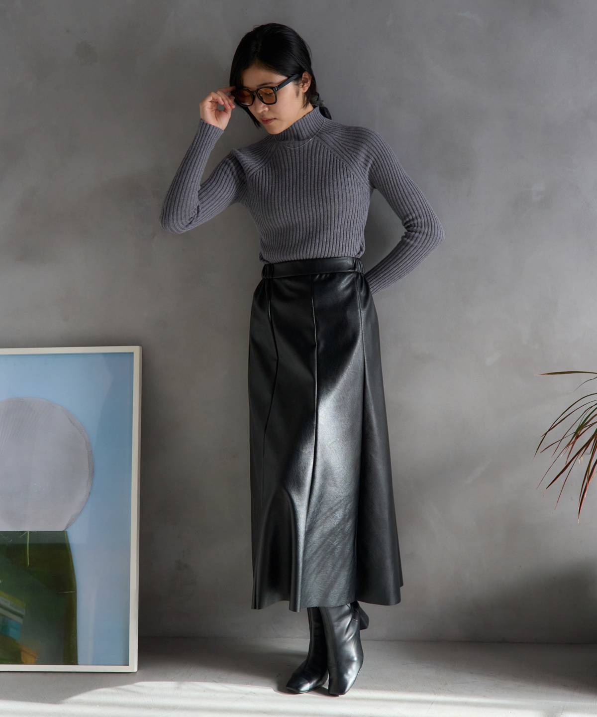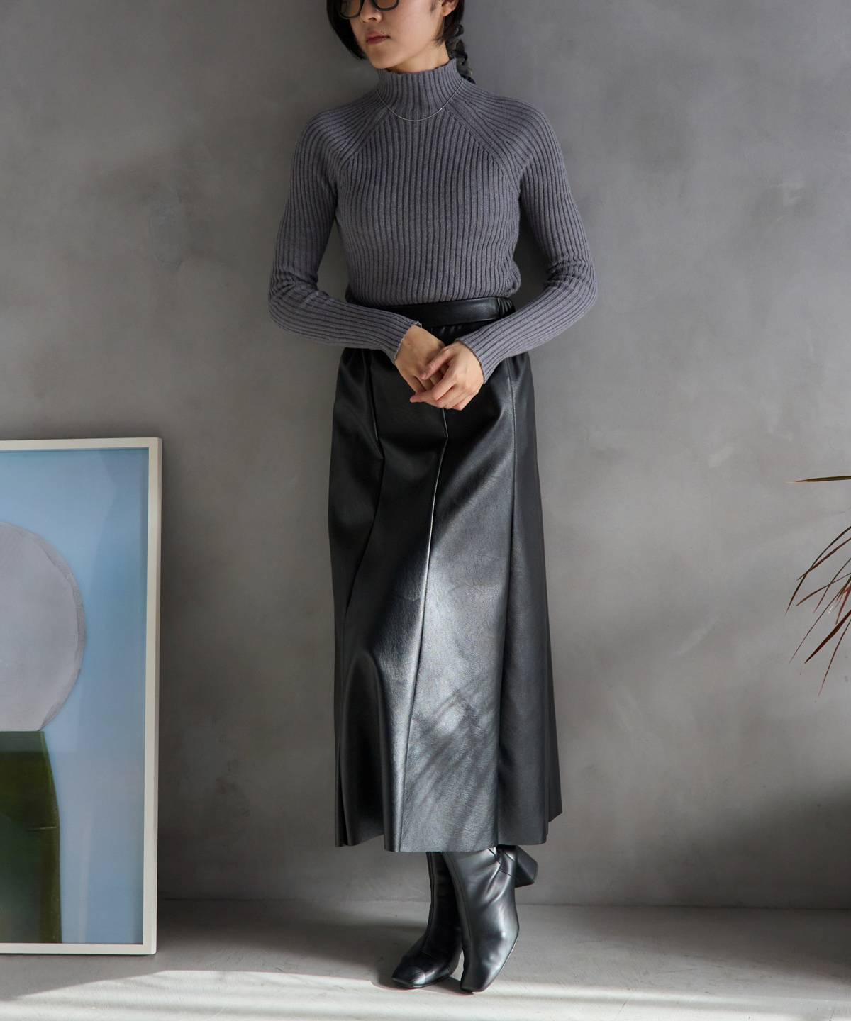 ・シンプルなニットやリブニット、ブーツなどで大人きれいめコーデもおすすめ◎