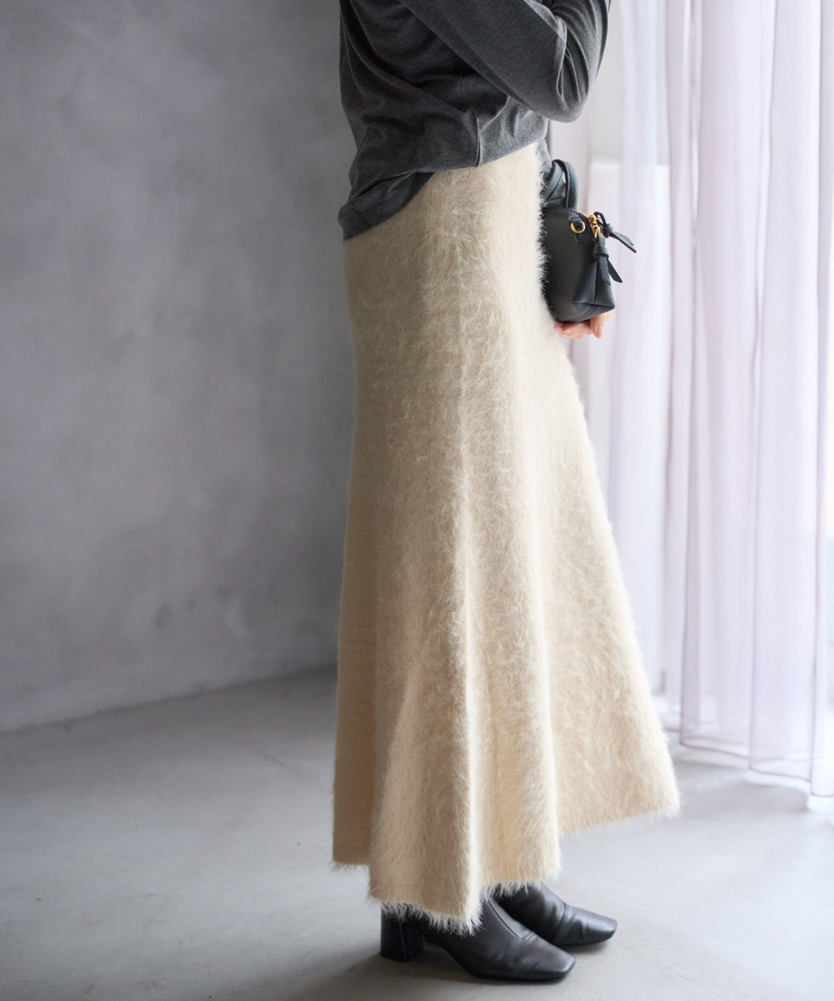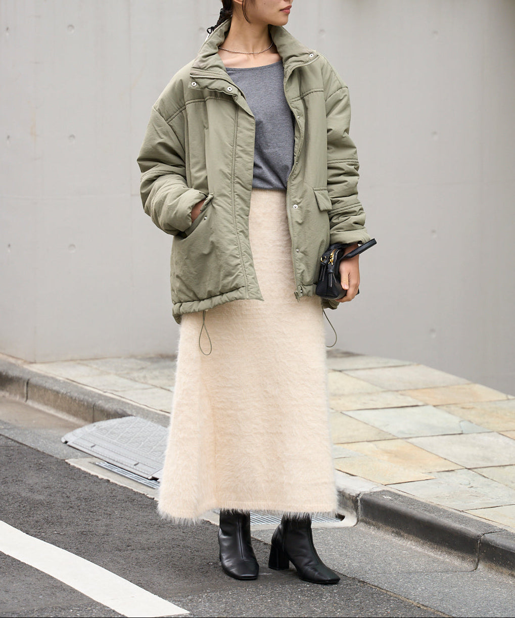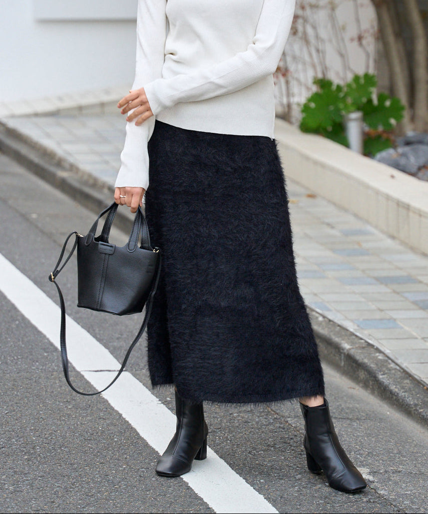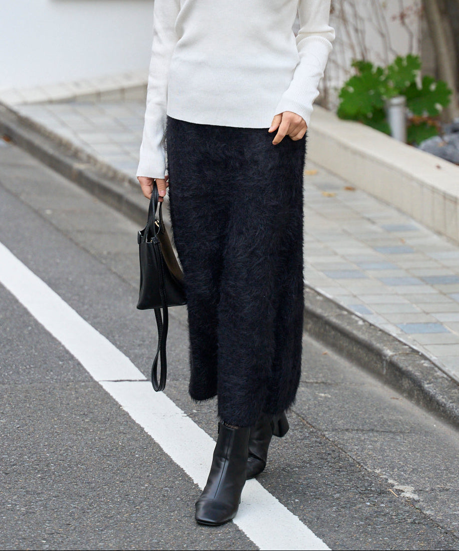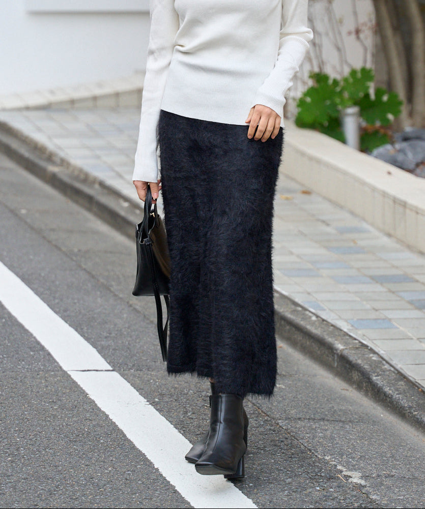ふんわりとしたシャギー素材が魅力のニットスカート。