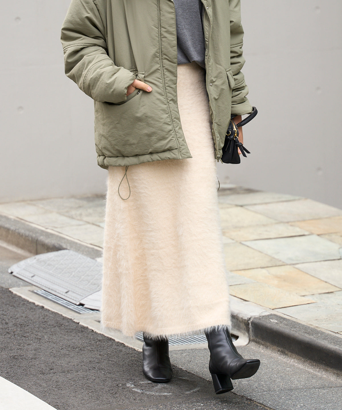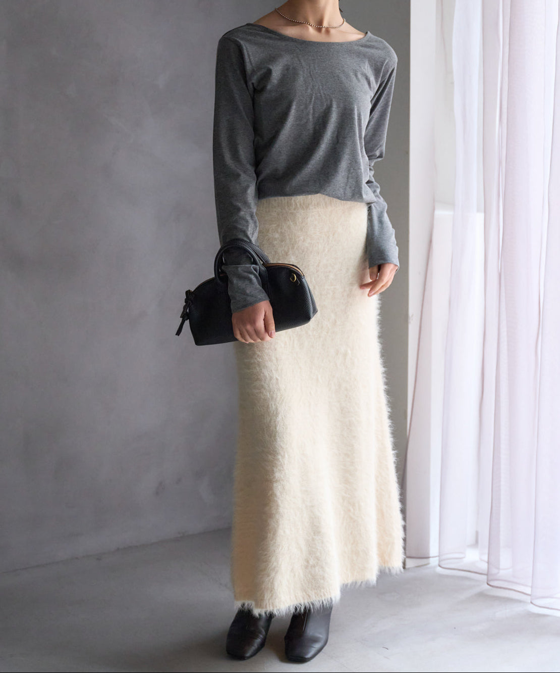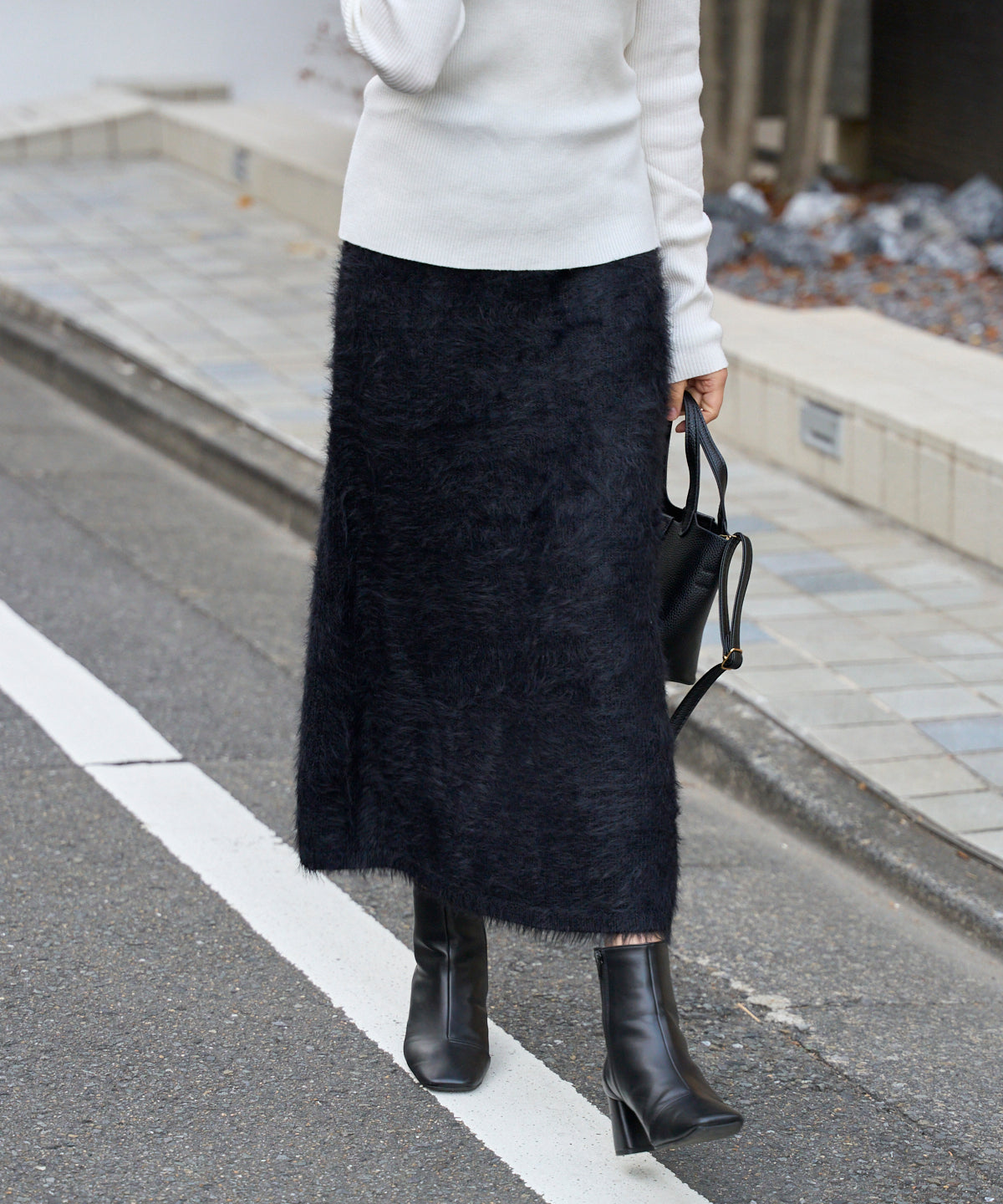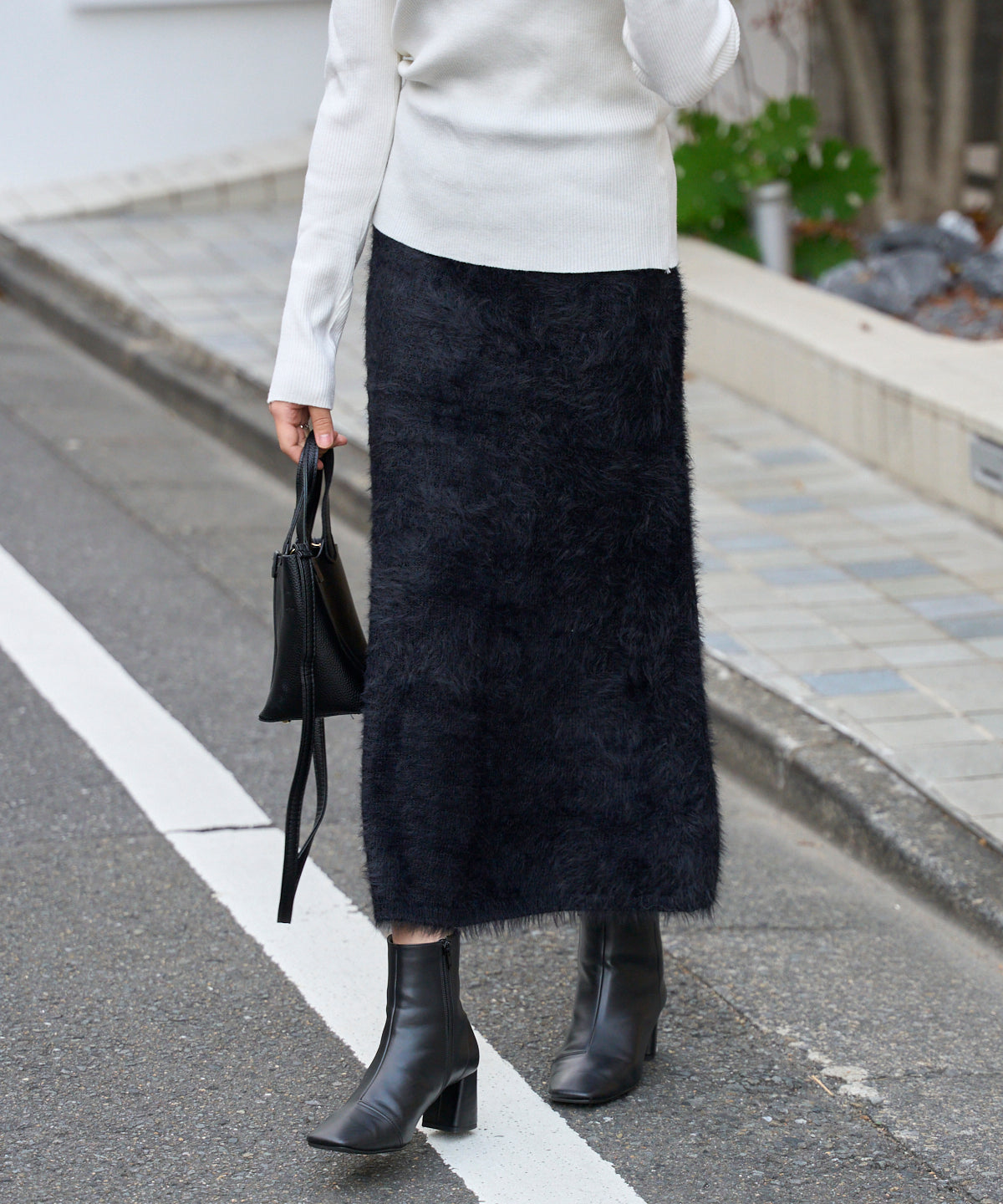 ふんわりとしたシャギー素材が魅力のニットスカート。