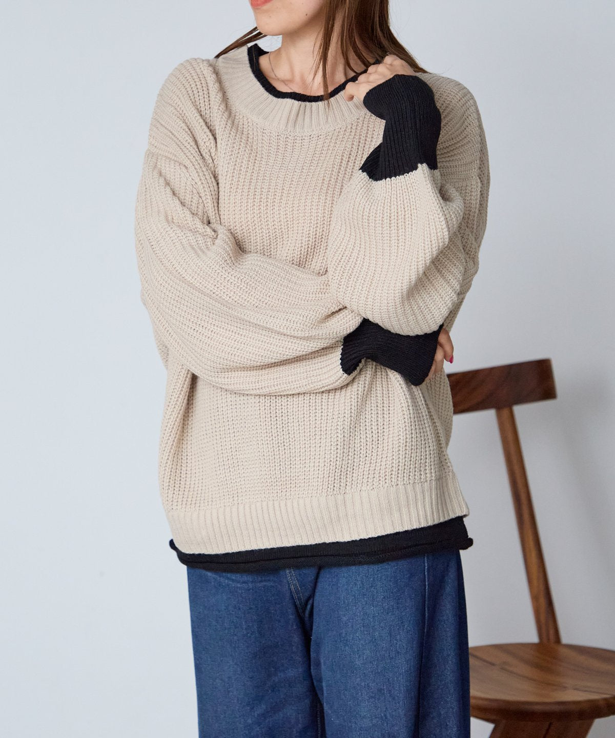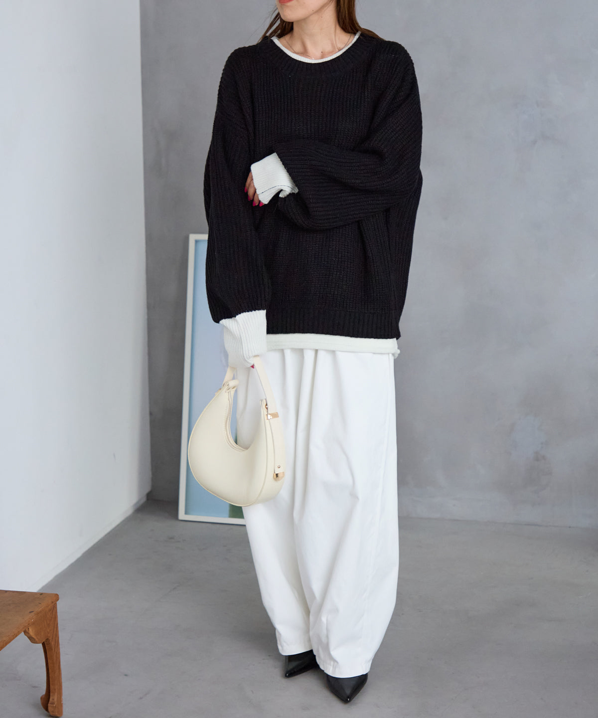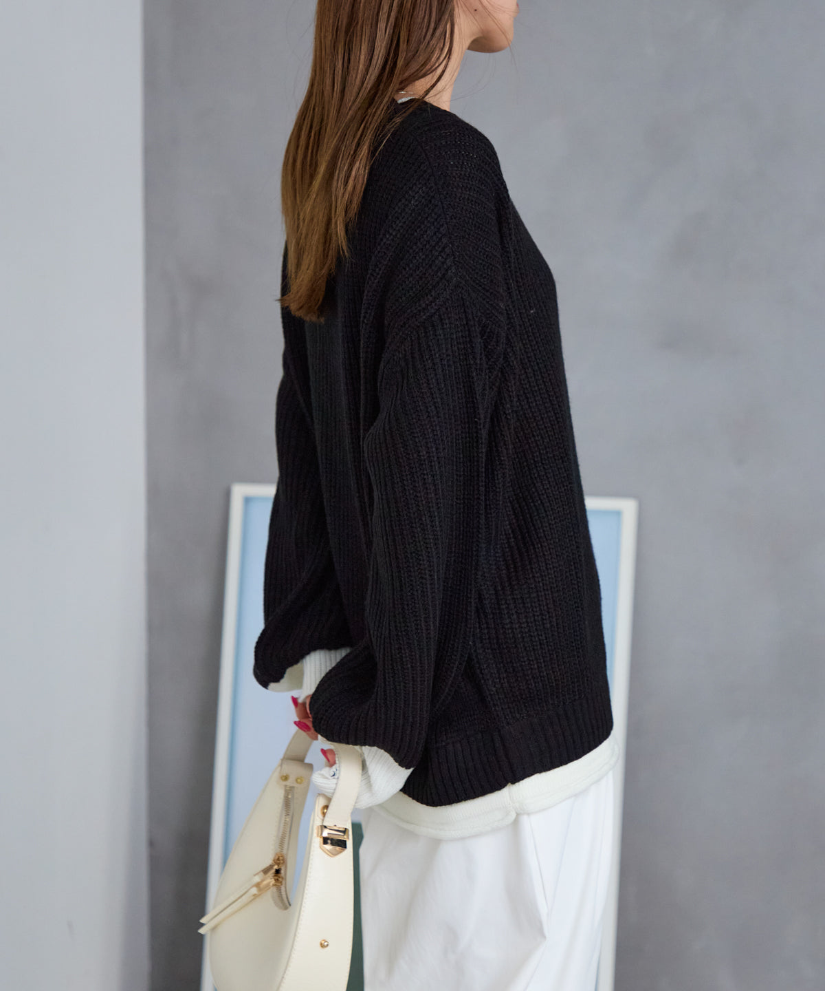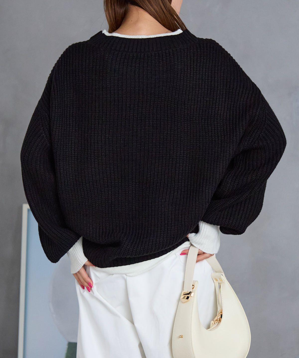 1枚着るだけで重ね着しているような、おしゃれ見えを叶えてくれるニット。