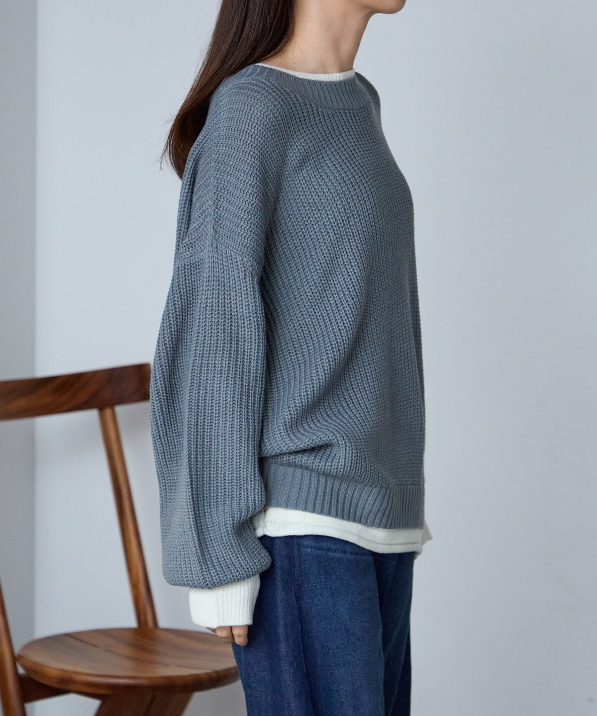 大きめのサイズですが、袖に長めのリブがあることでメリハリのあるボリュームスリーブにしてくれます。