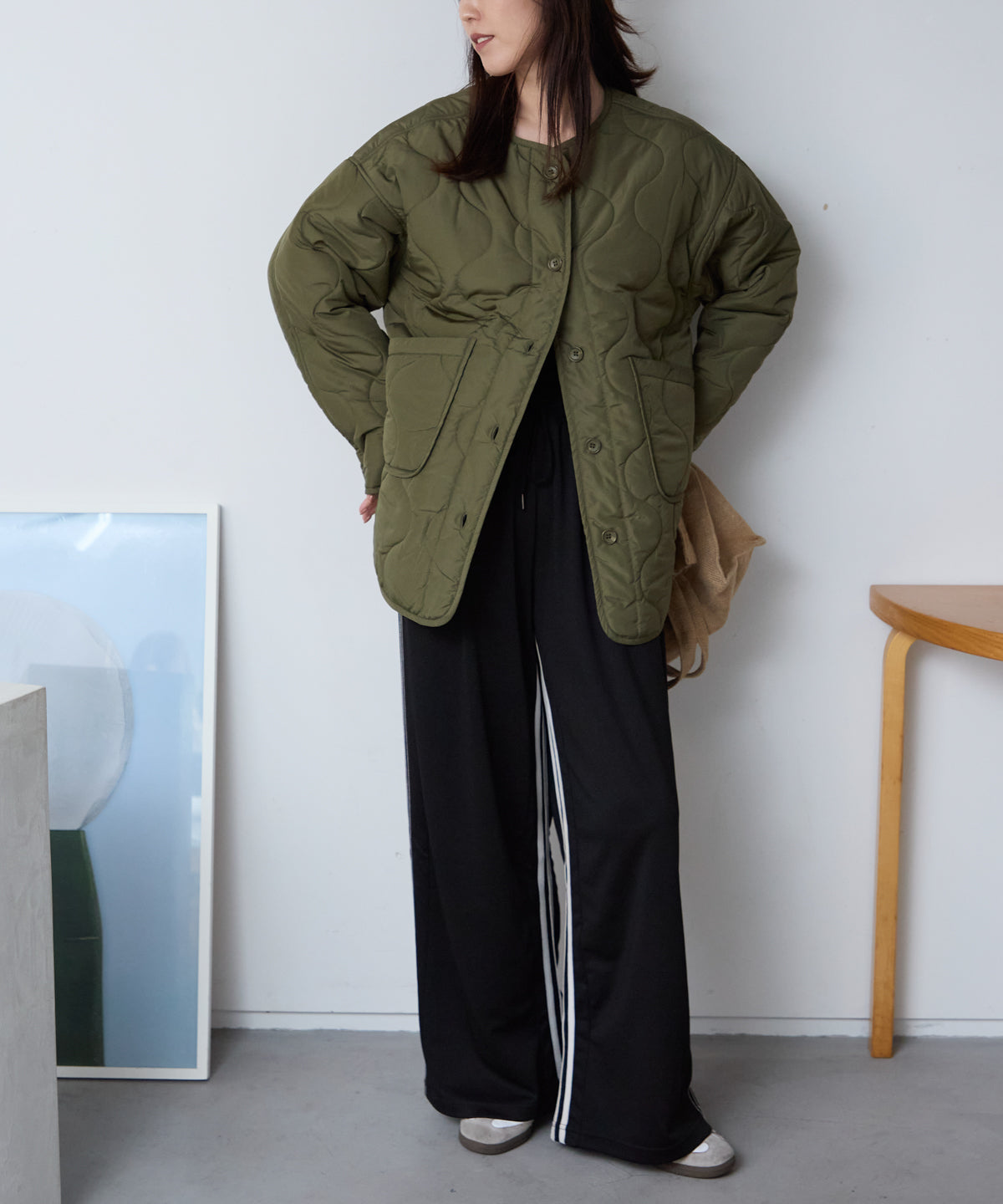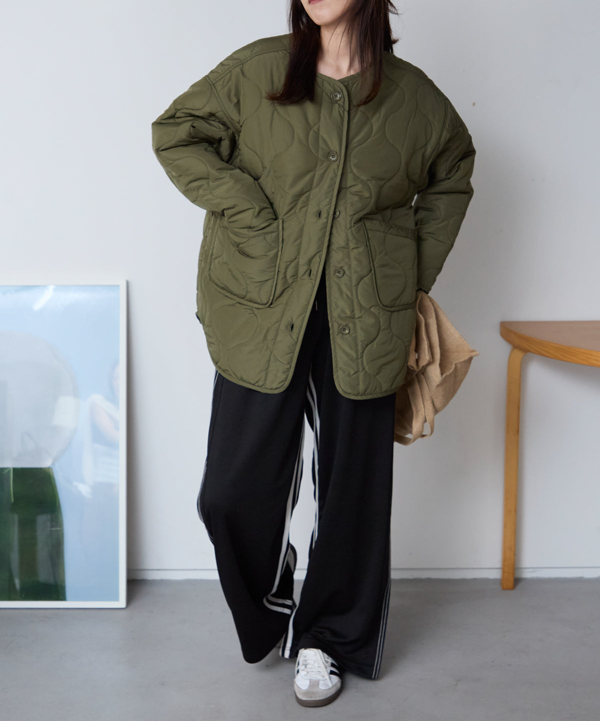 ひょうたん柄キルトにシンプルで着回しのしやすいデザインです。