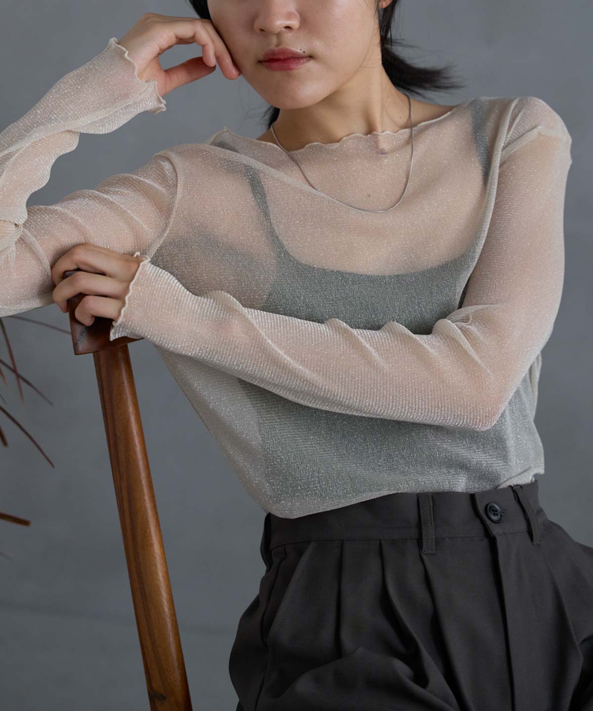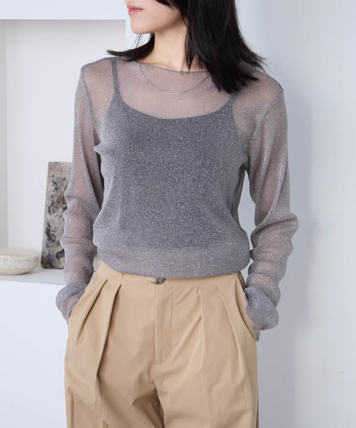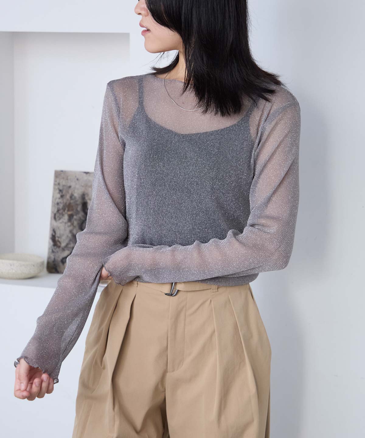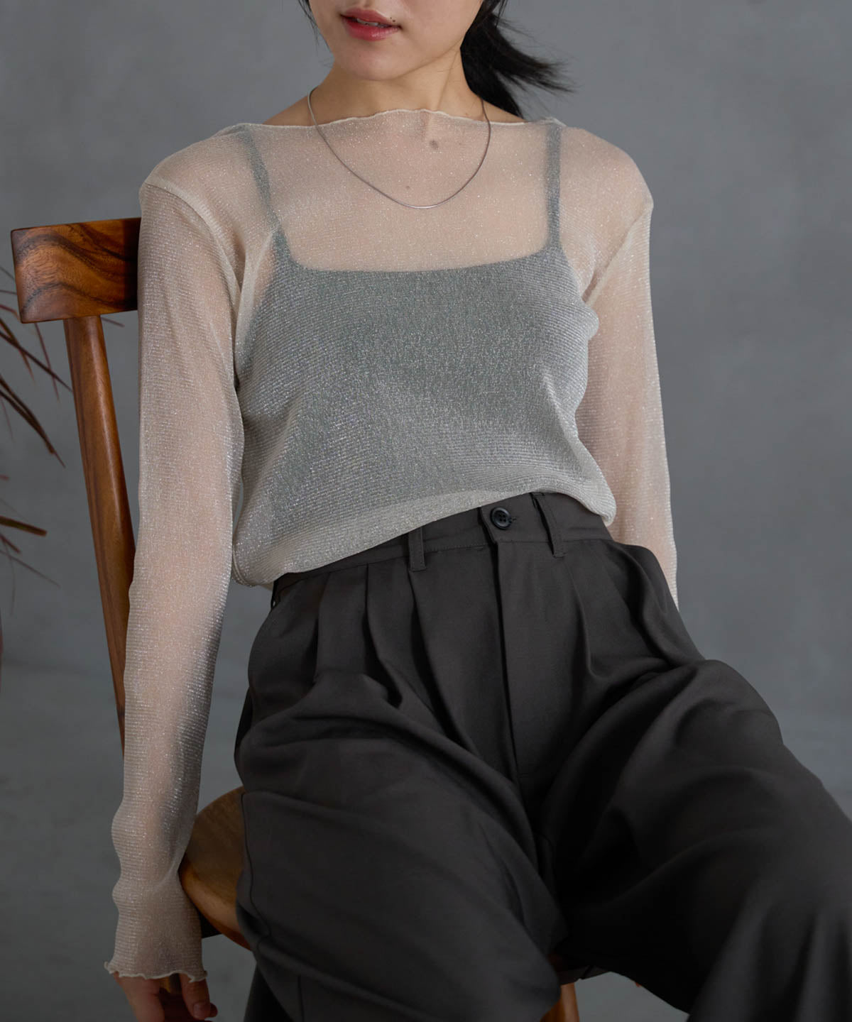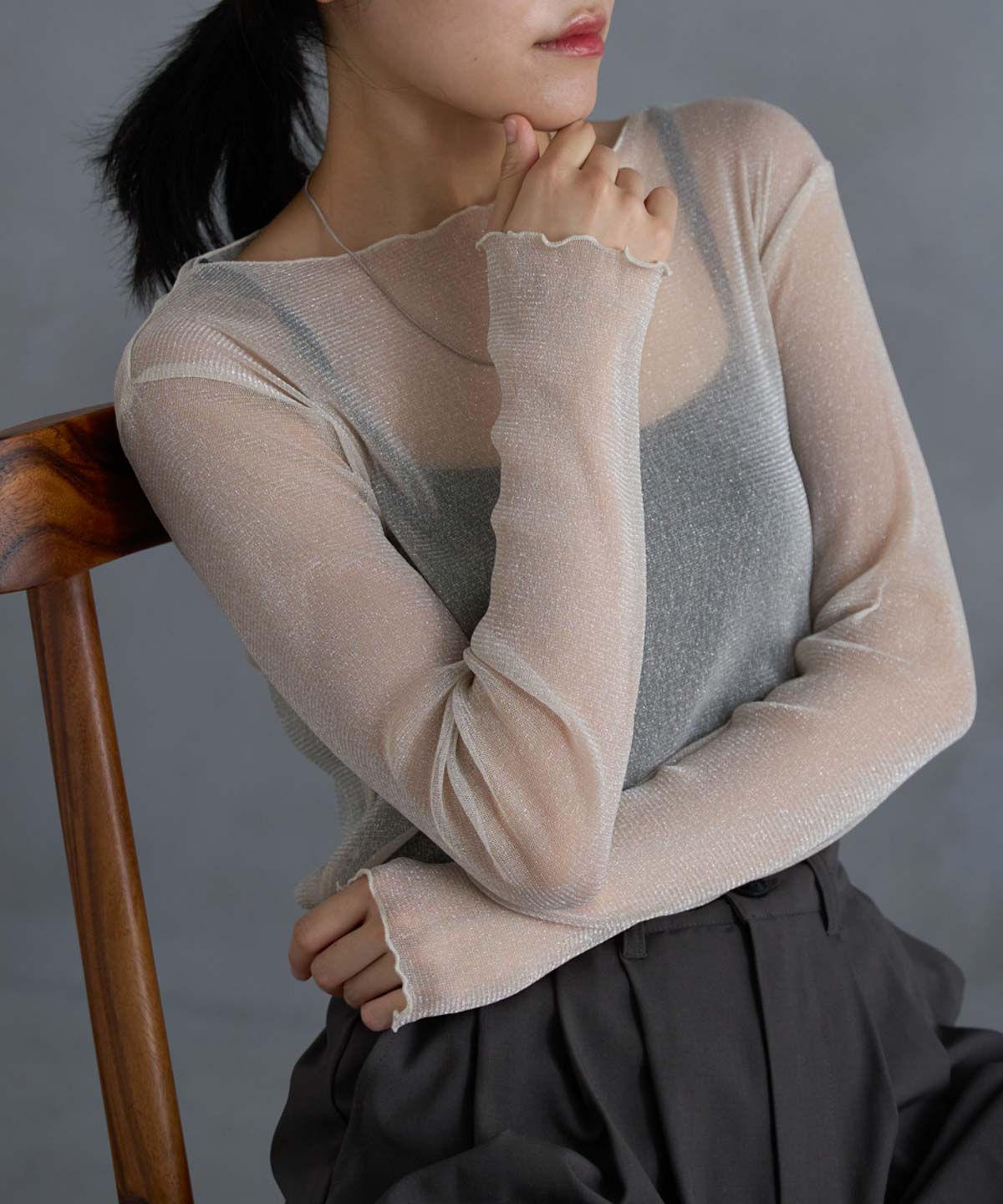 ✔️ 透けすぎず上品に着られるラメシアー素材
