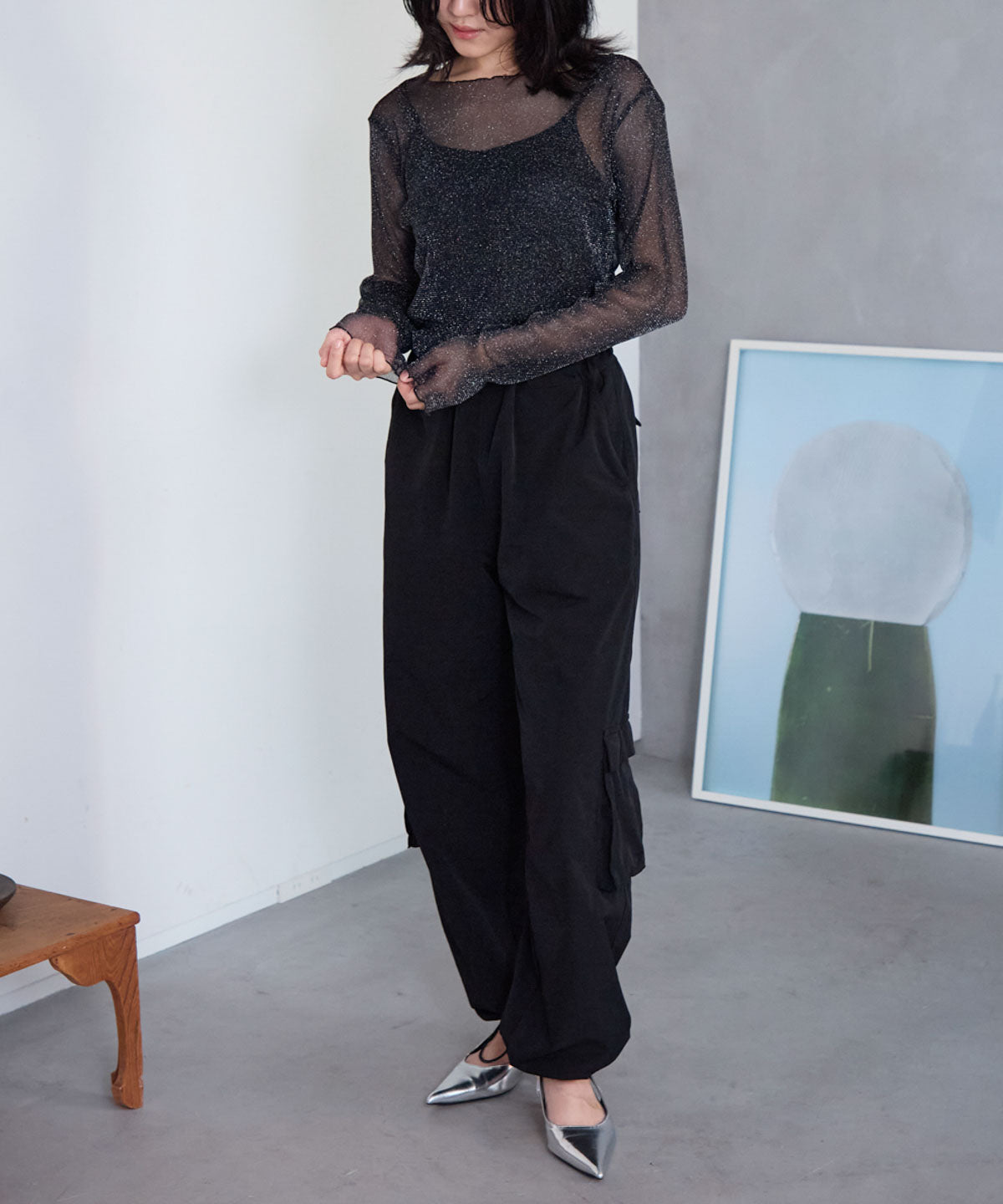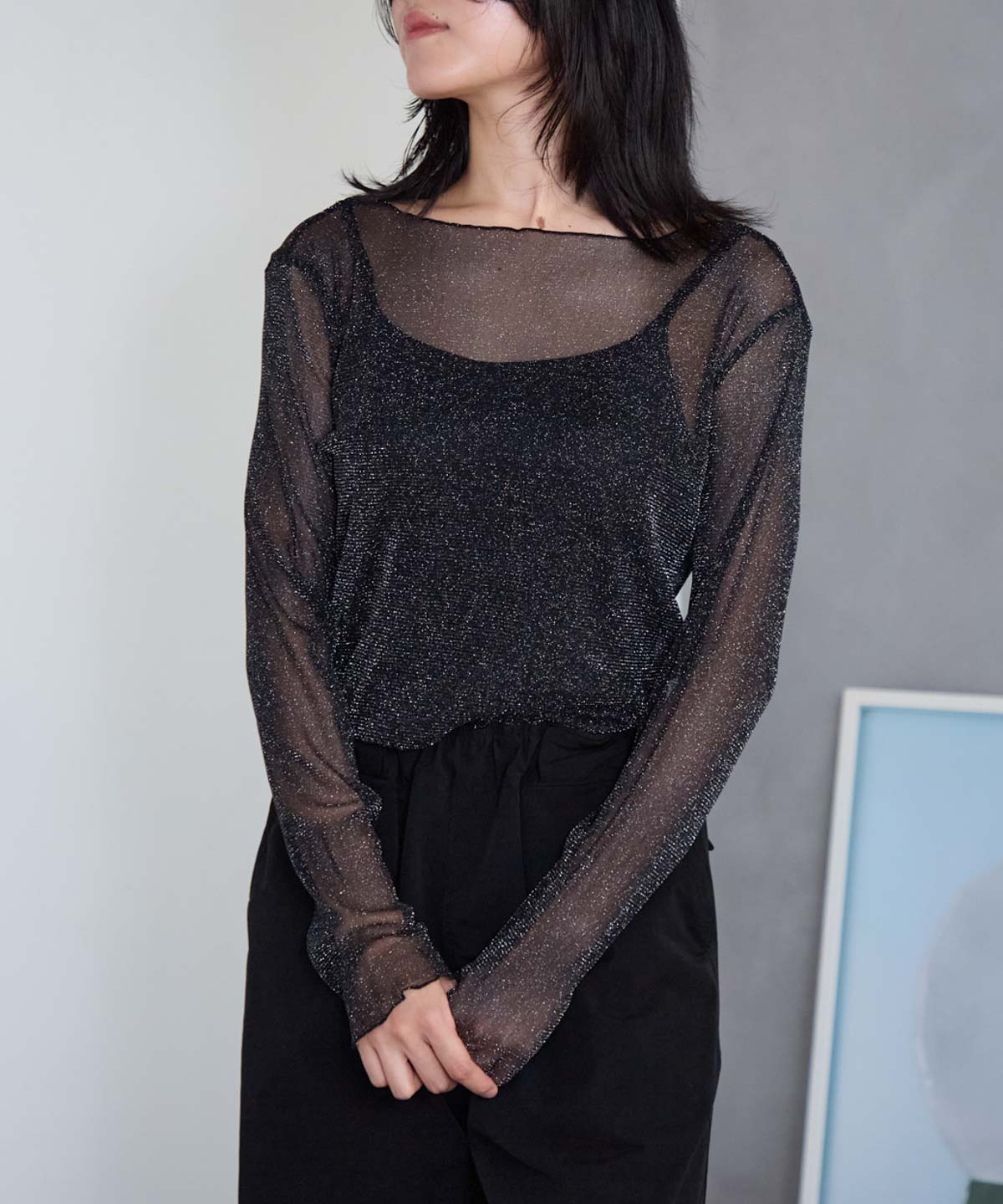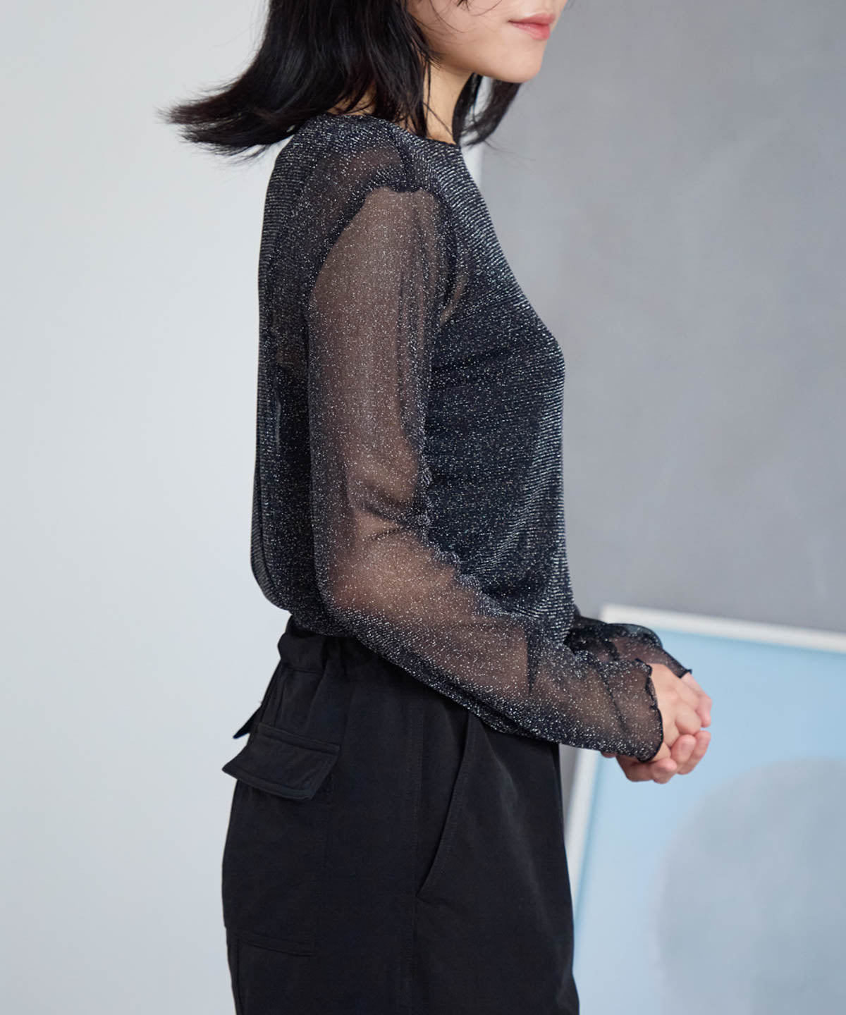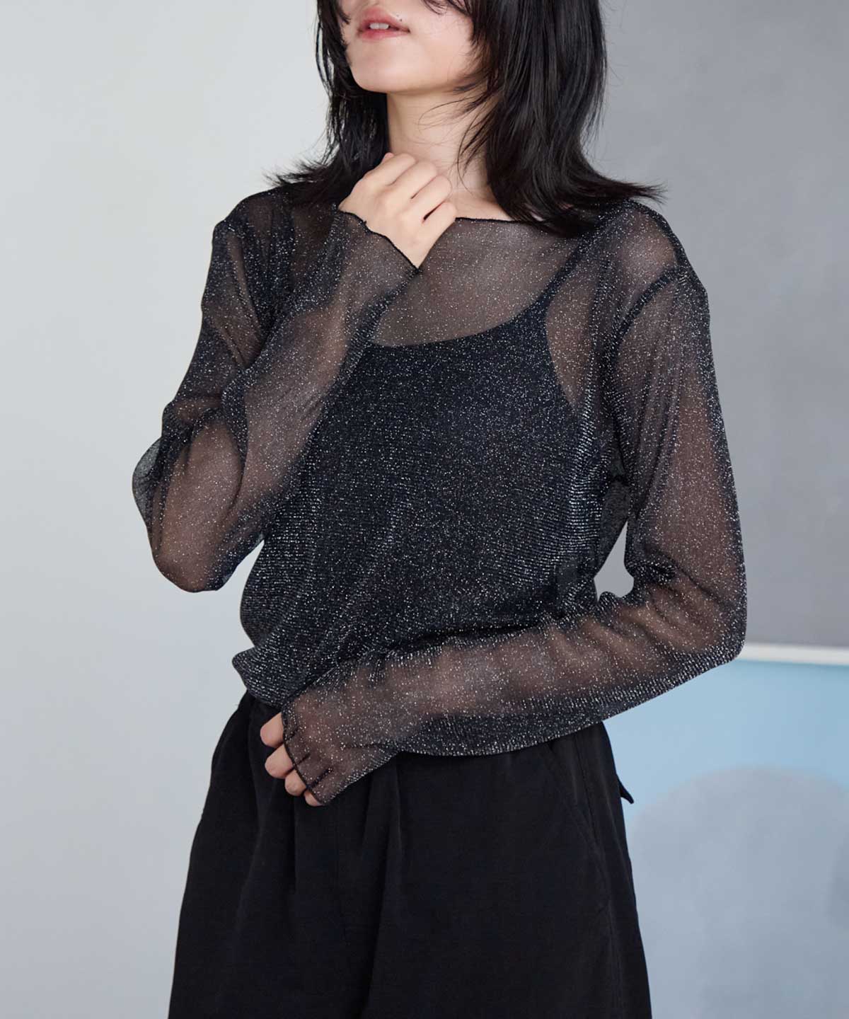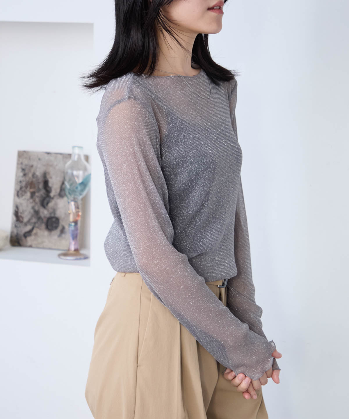 ✔️ 透けすぎず上品に着られるラメシアー素材