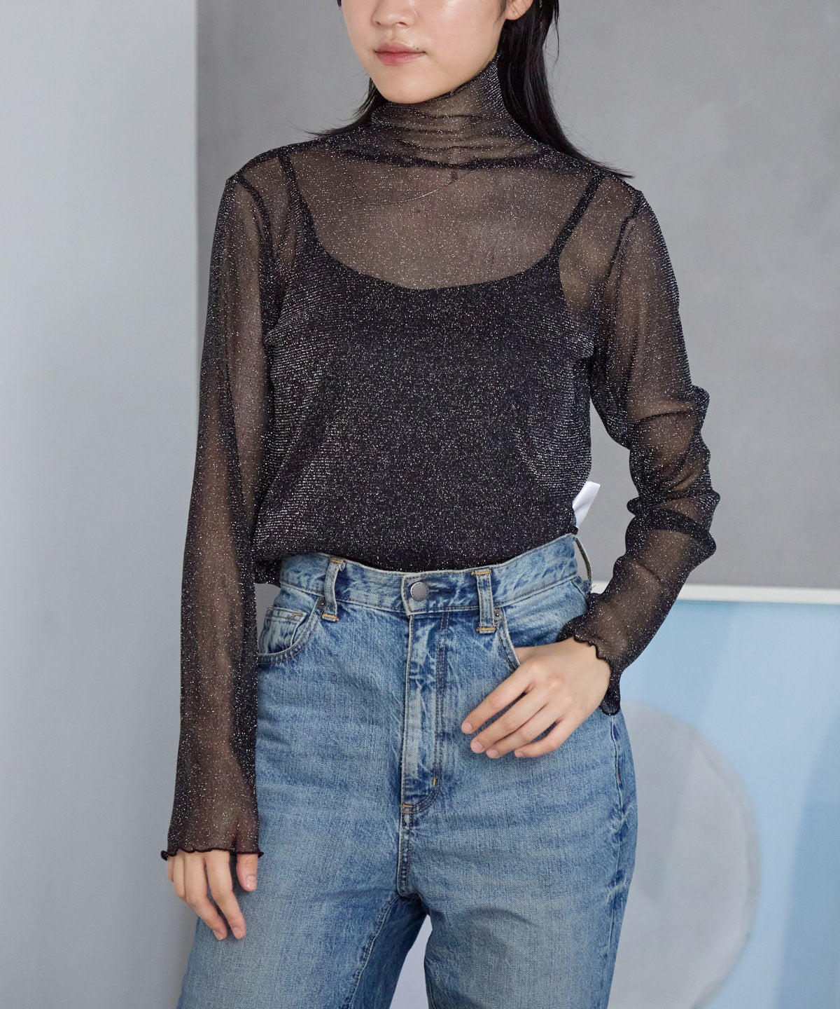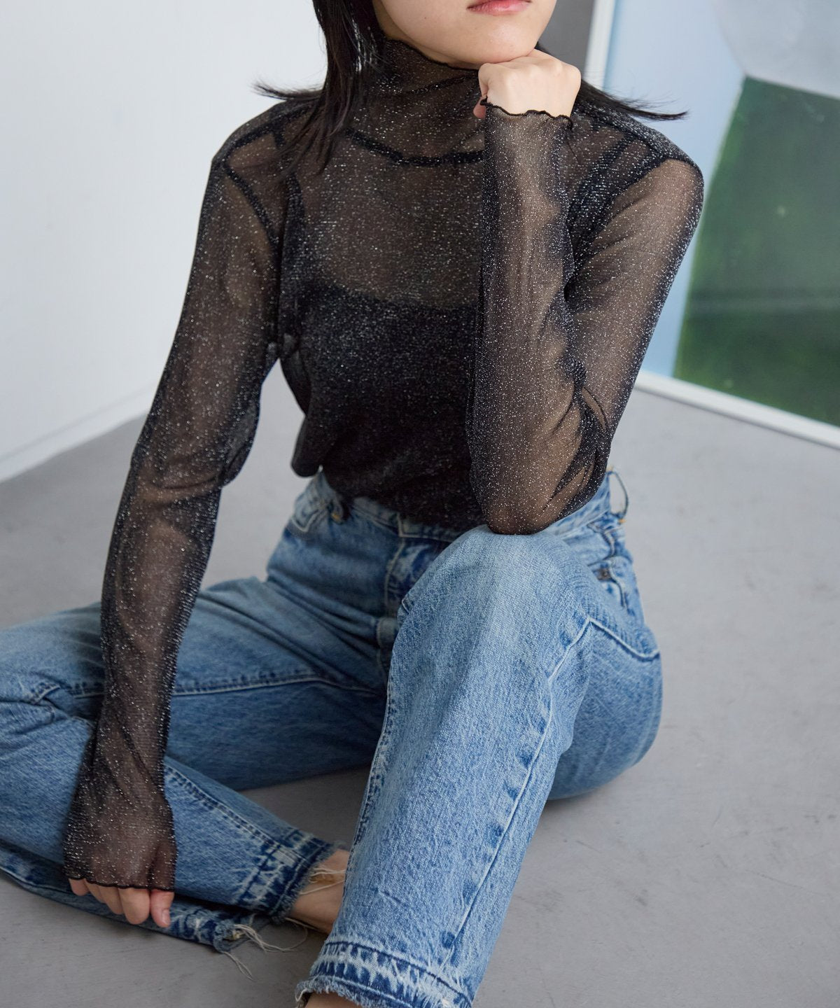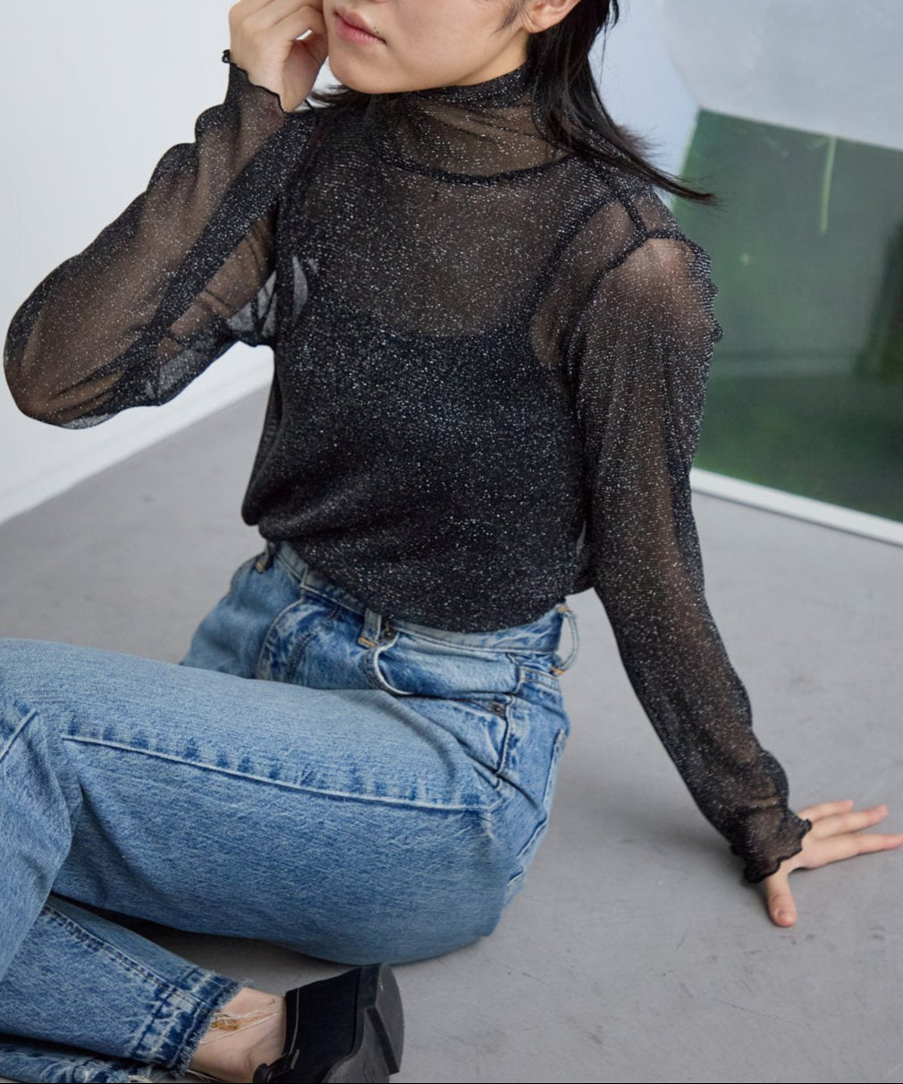 ・ シアー×ラメを活かして、あえてデニムでカジュアルダウン