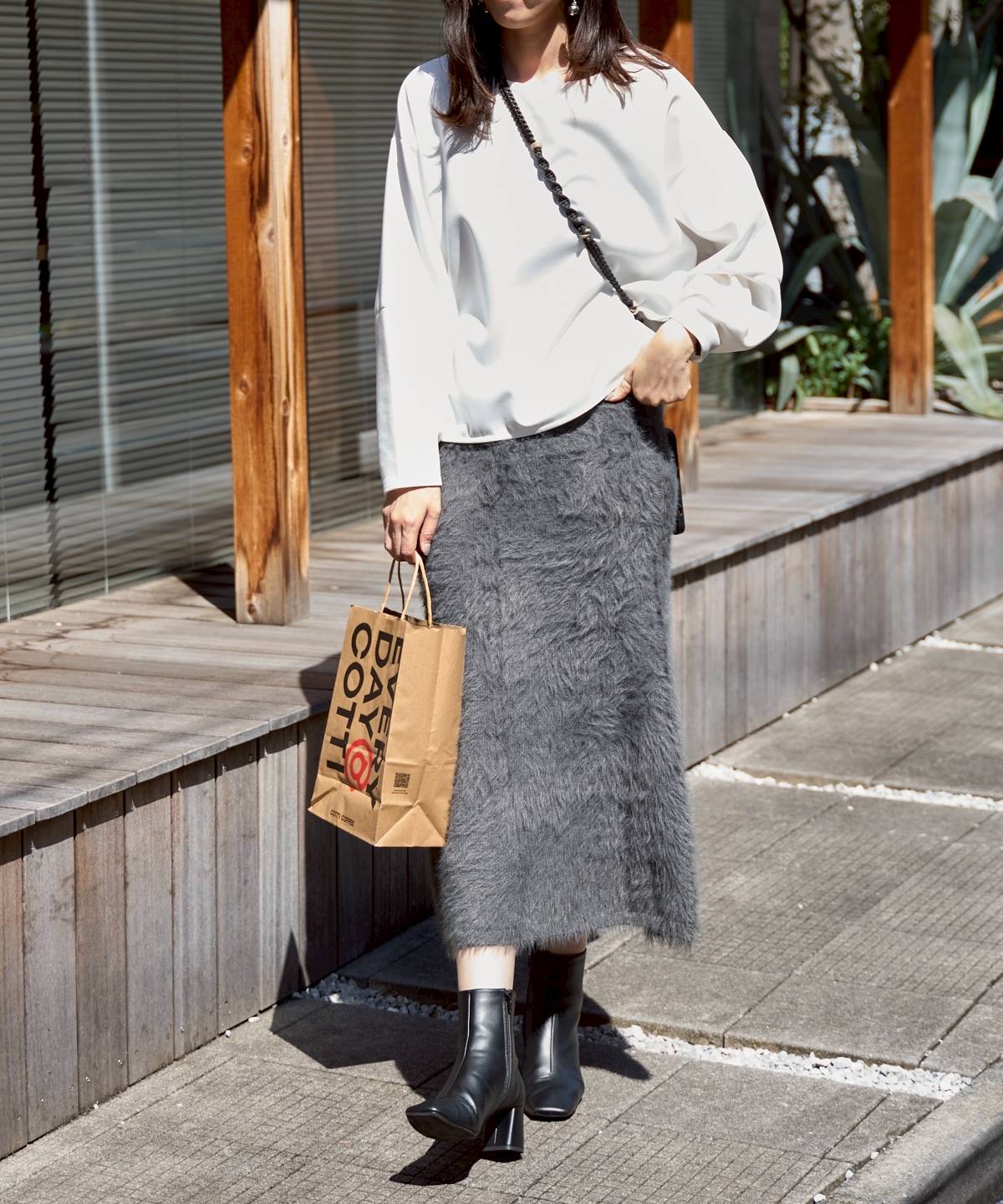 ・ スカートと合わせて、バランスよく女性らしさをプラス