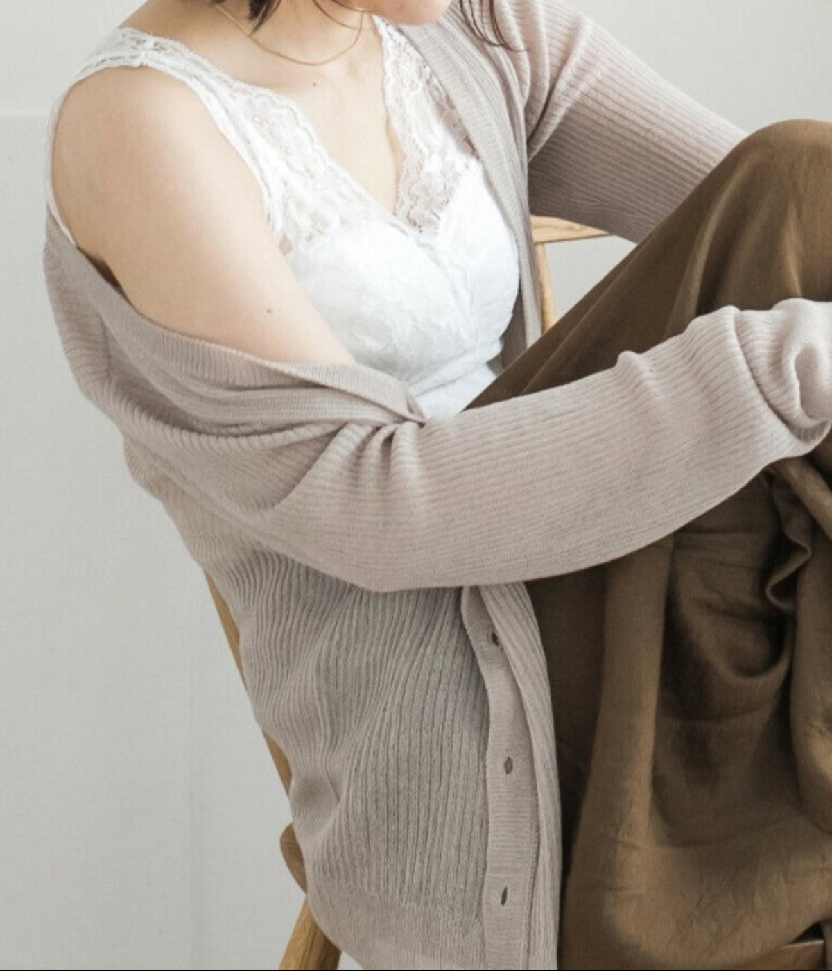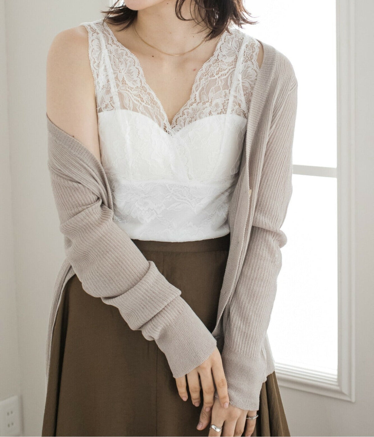 オフショルダーや、首元が広めに開いたトップスの肩からチラ見せしたり、シアートップスのインナー使いや、カーディガンのインナーに。透けても見えても安心の可愛さ。