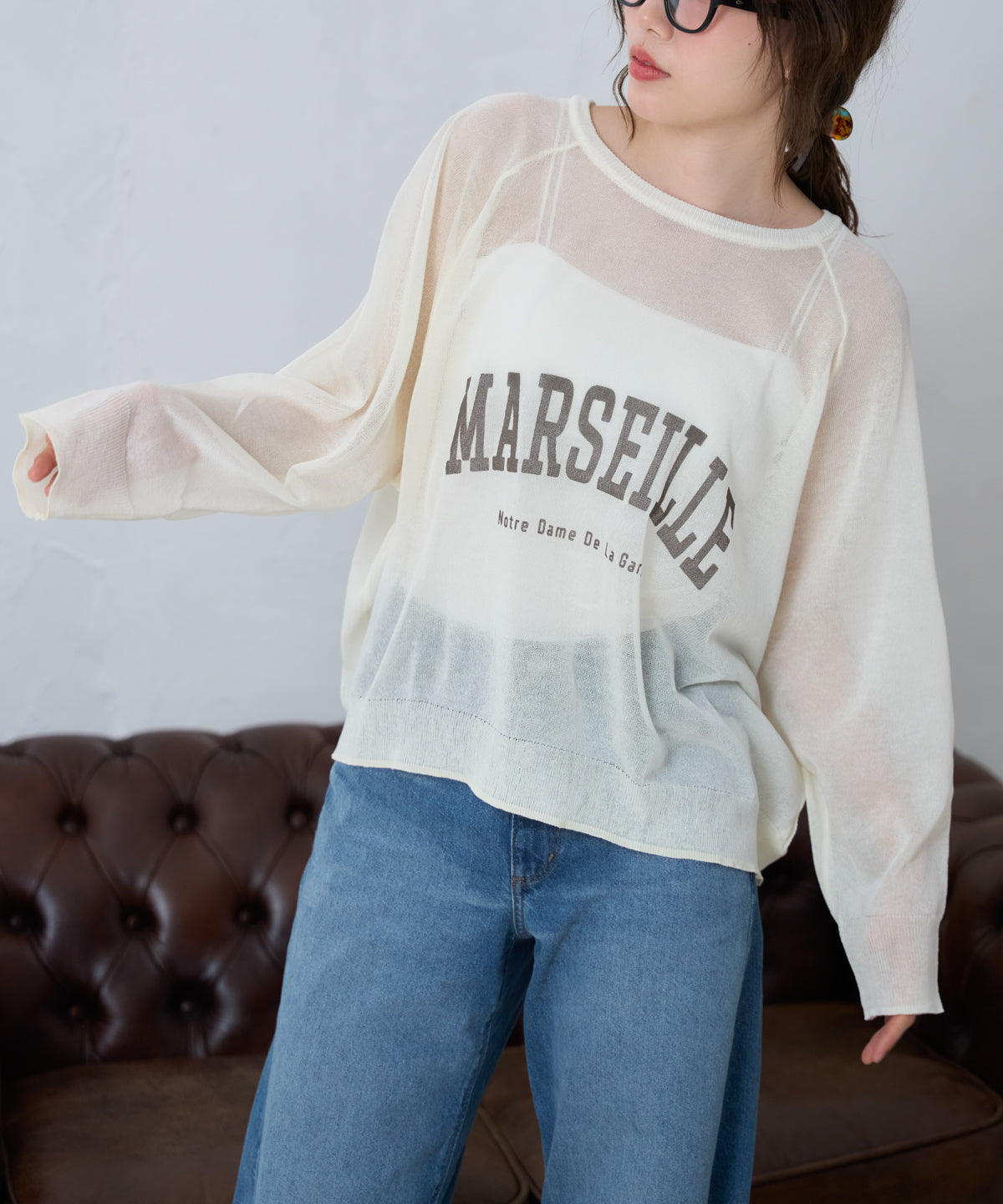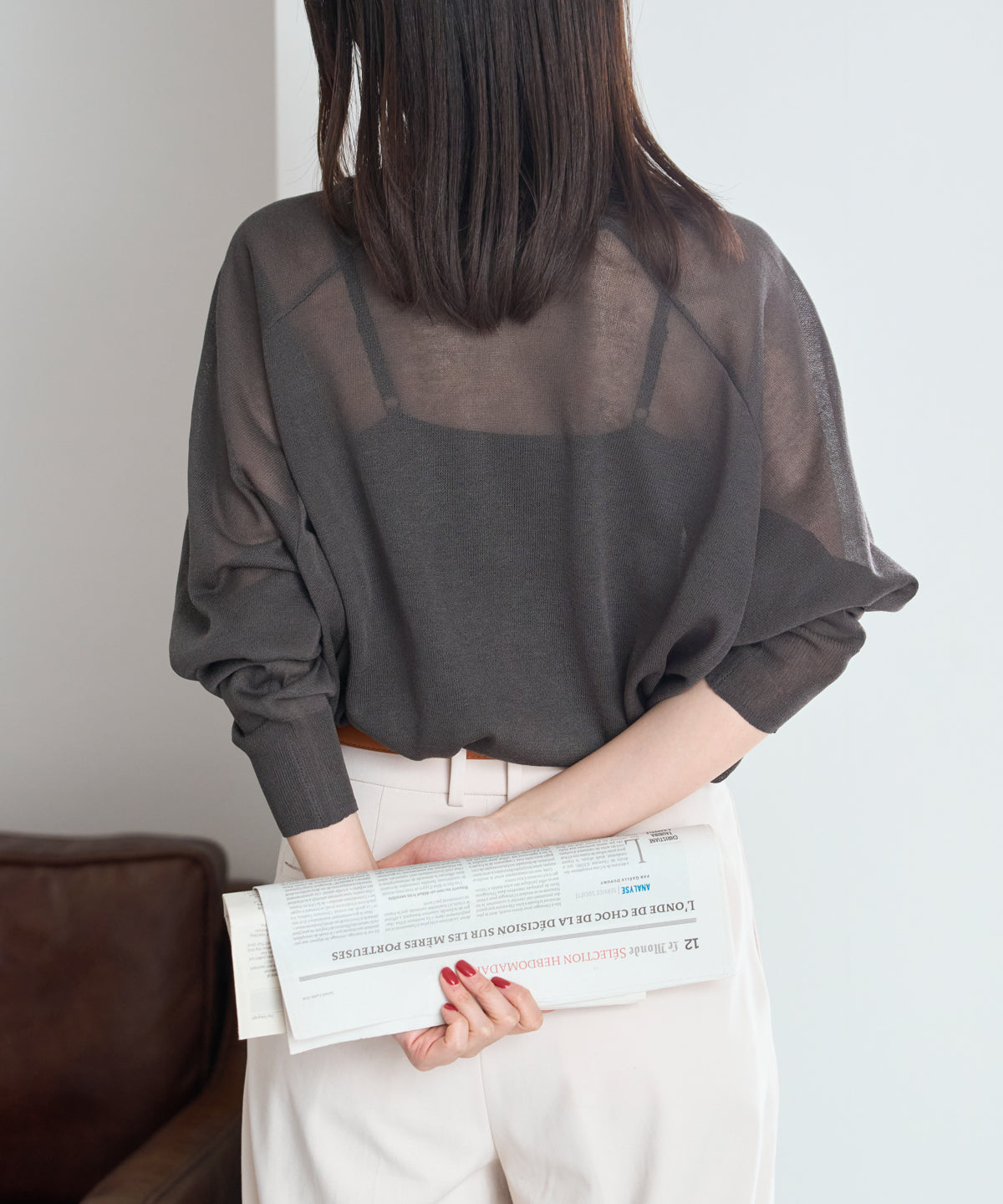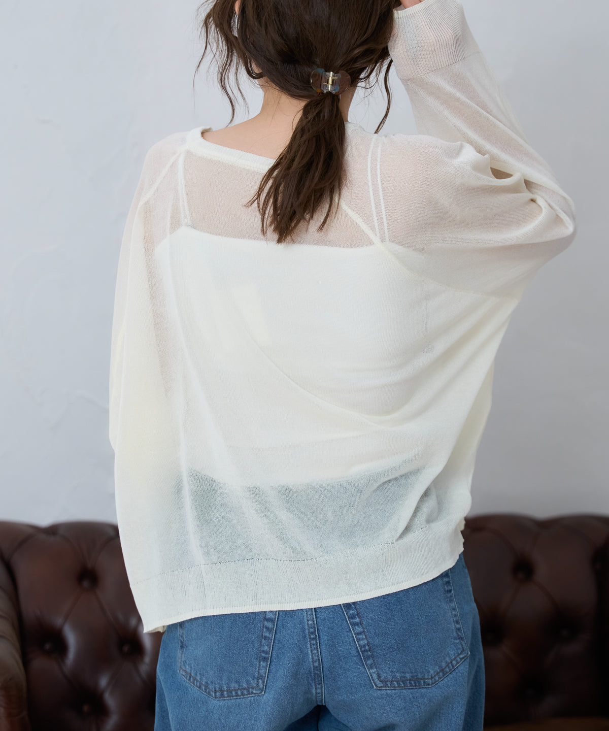 ・ シアー感を活かしてキャミやタンクとレイヤードしても◎
