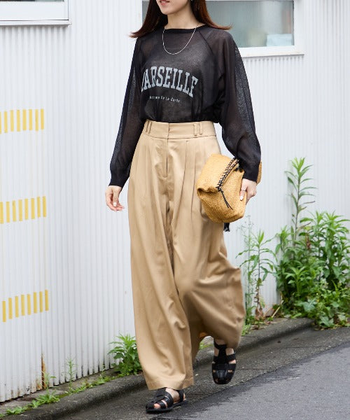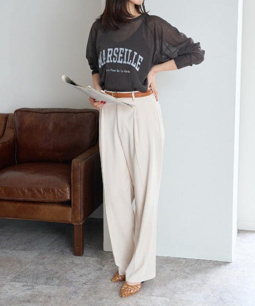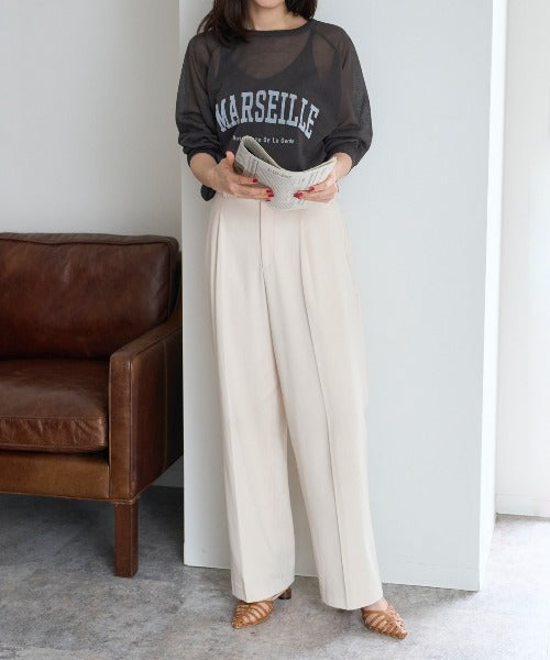 ・ スラックスを合わせて、ほんのりモードな大人スタイルに