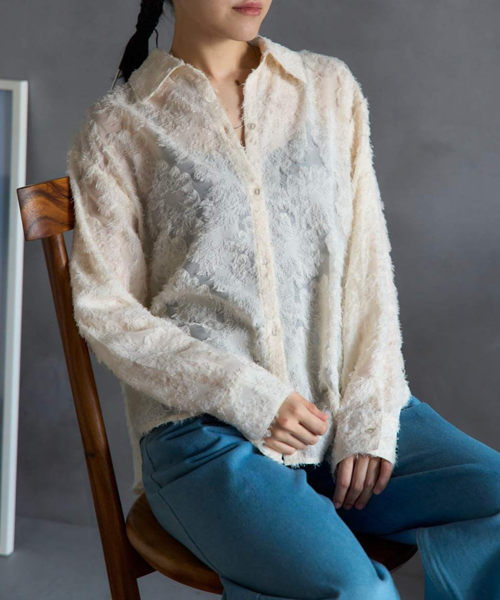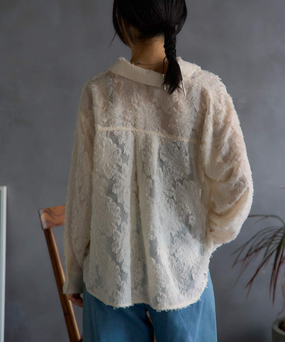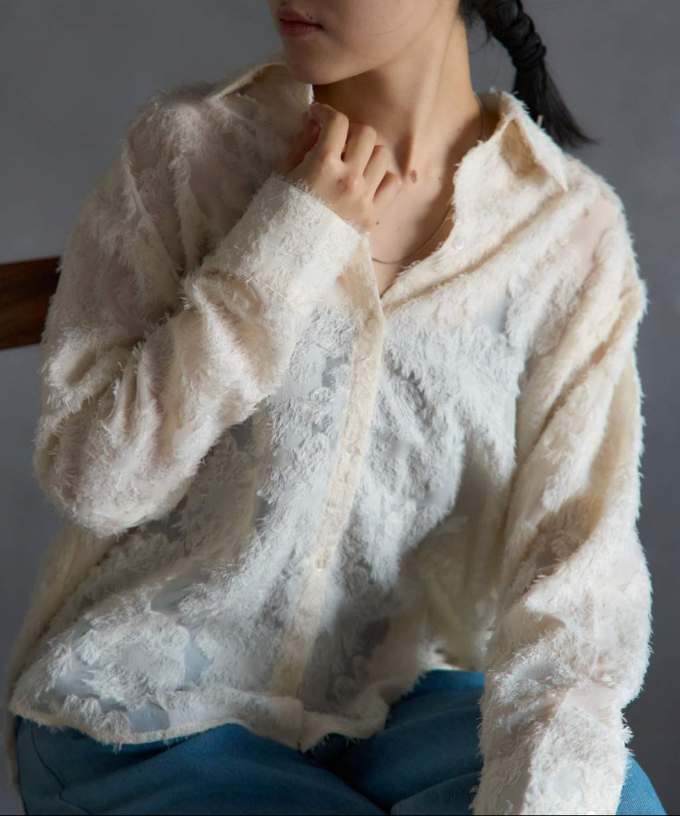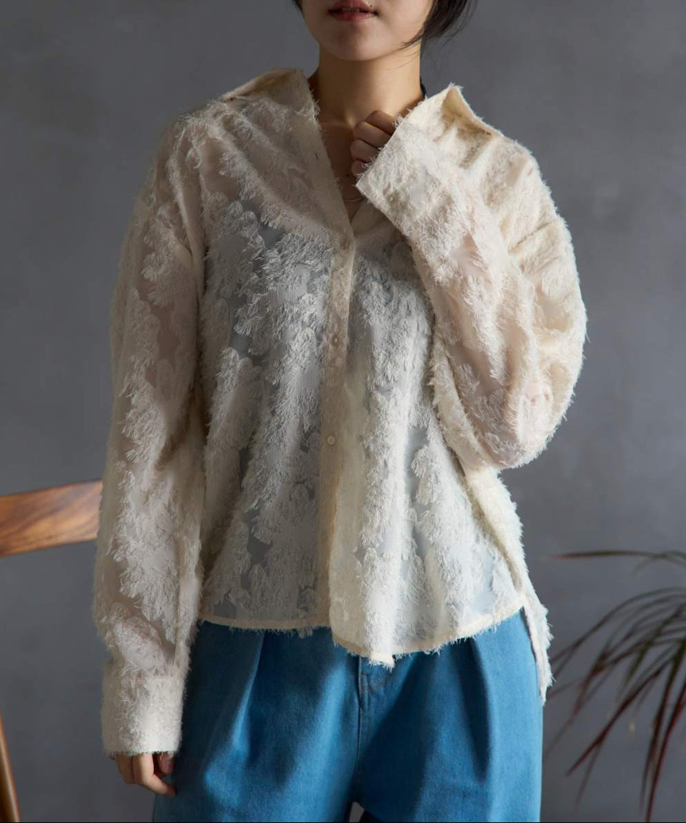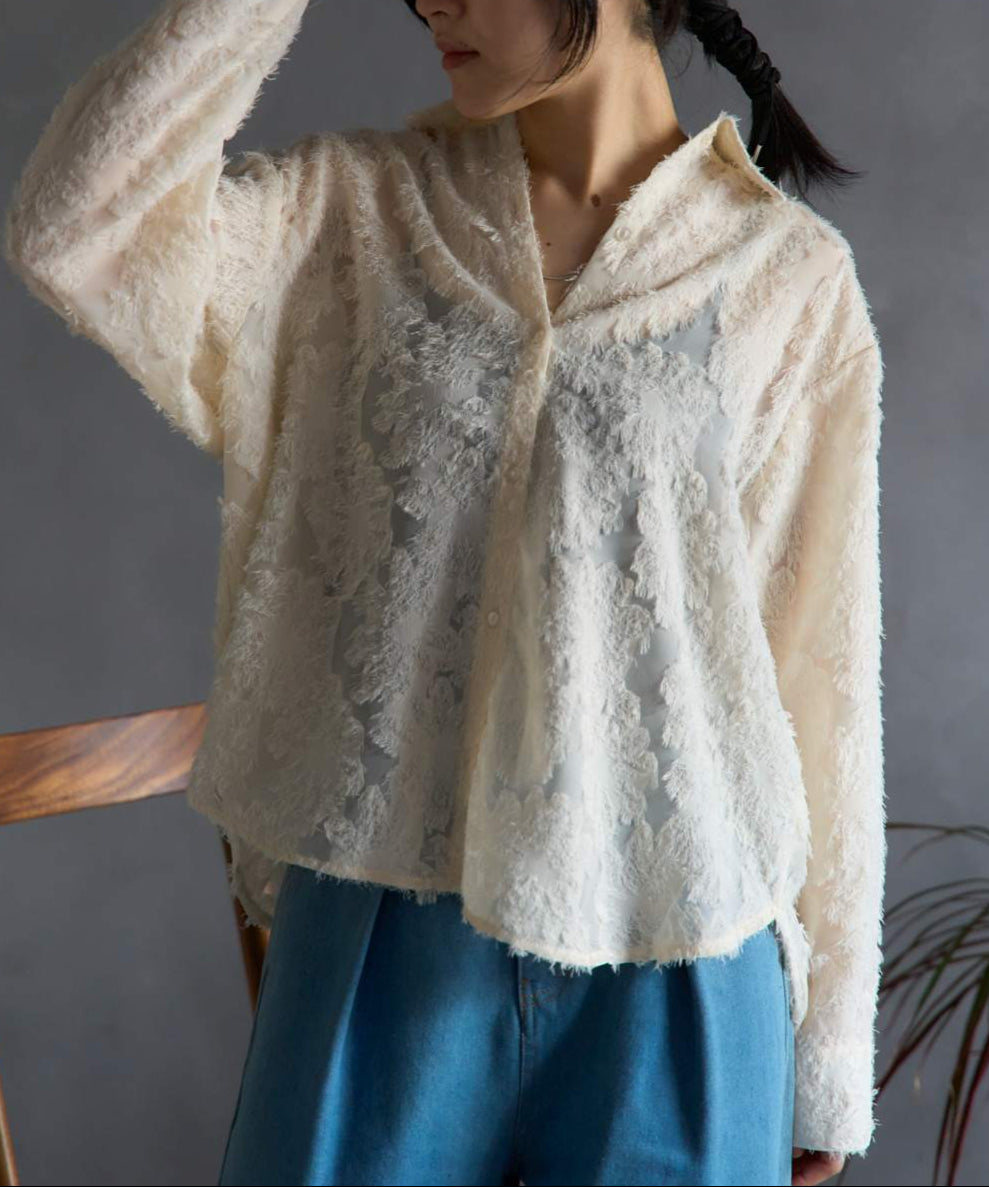 フラワーフリンジの立体感をプラスした華やかシャツ