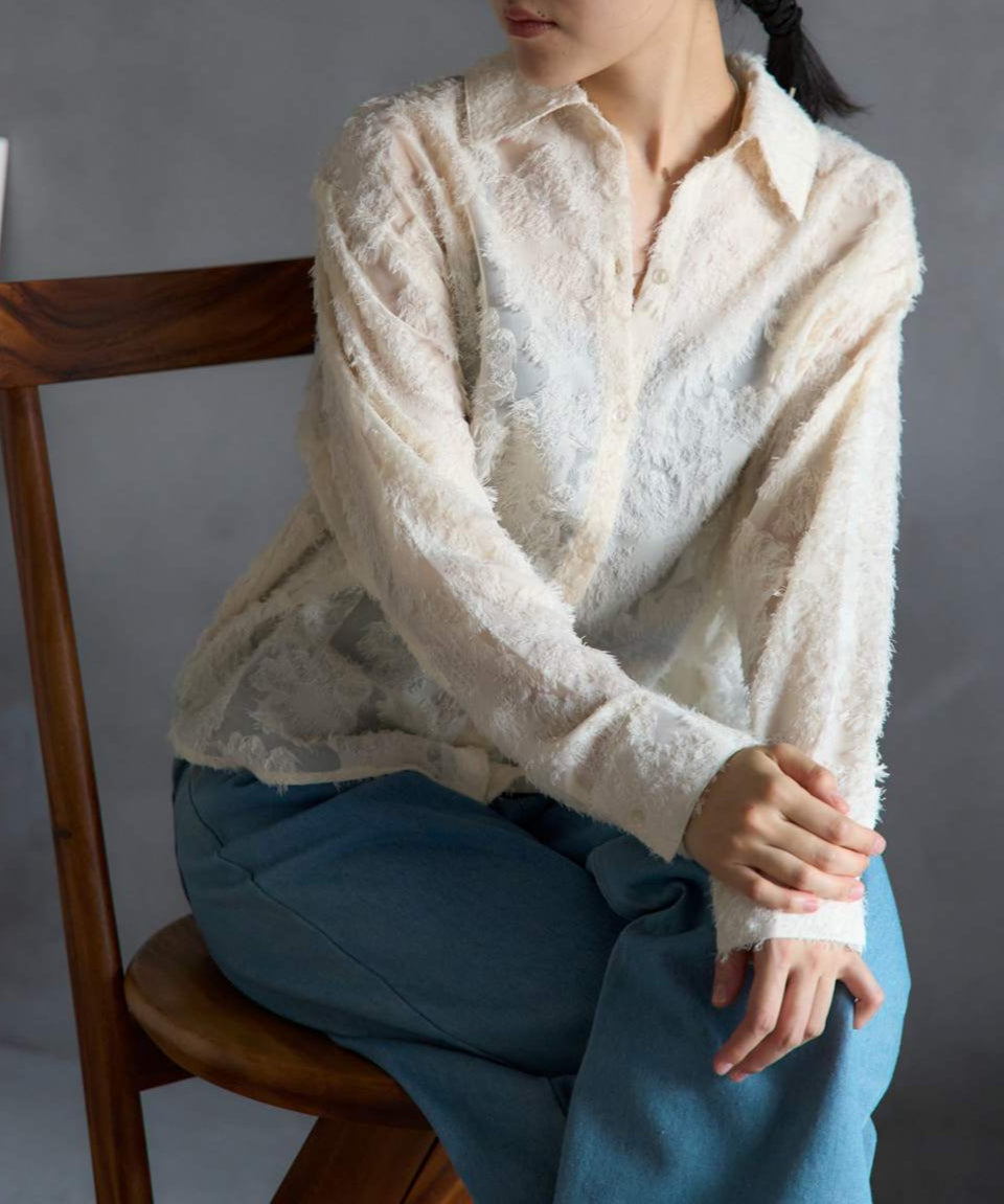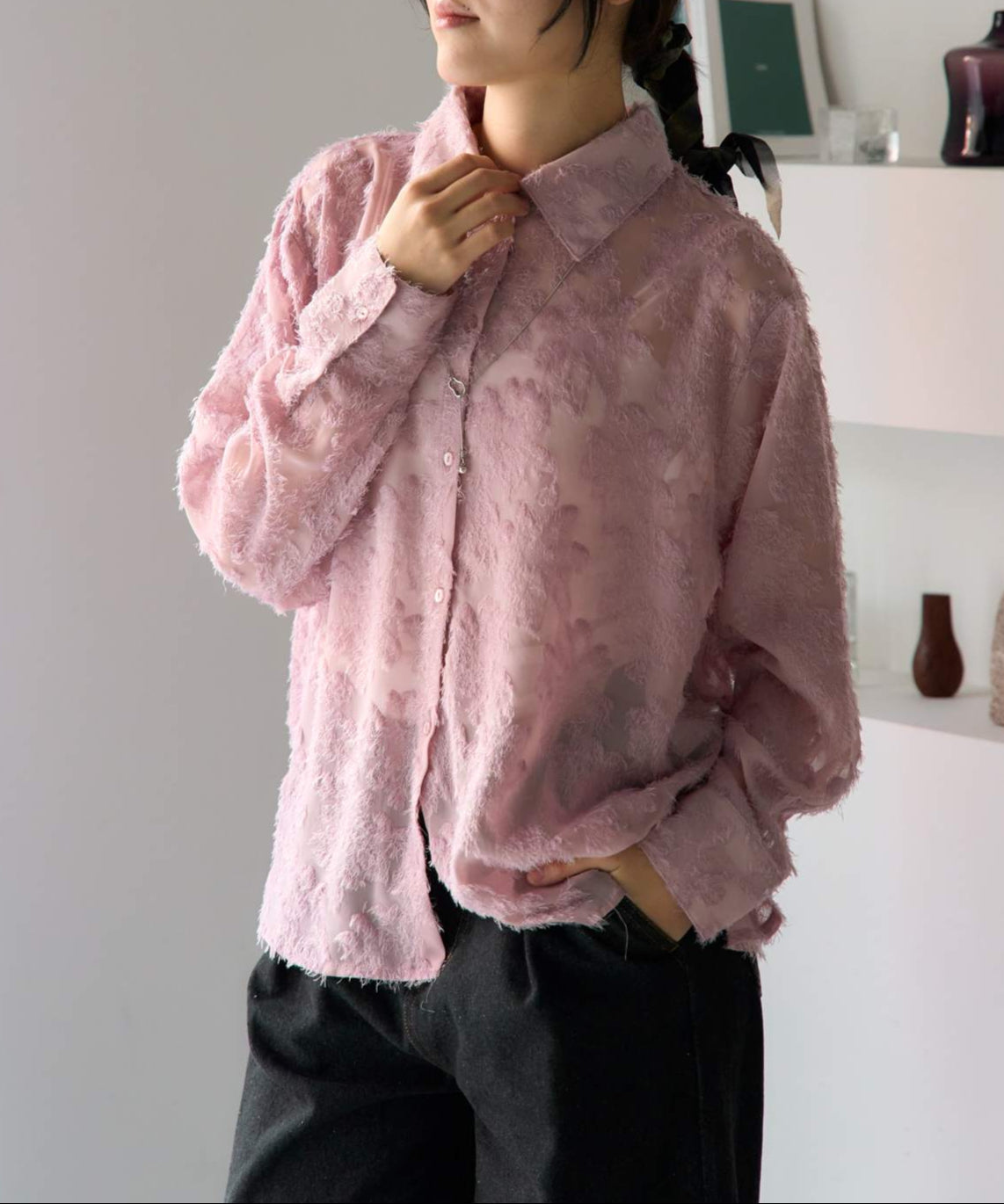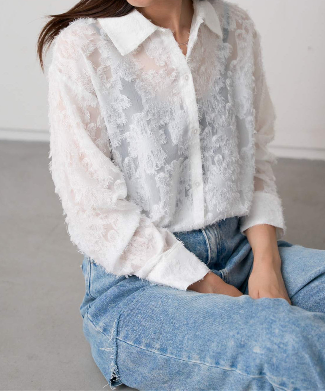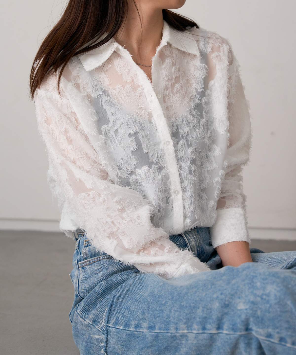 フラワーフリンジの立体感をプラスした華やかシャツ
