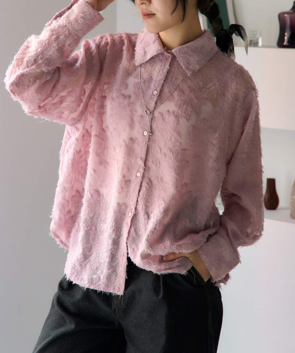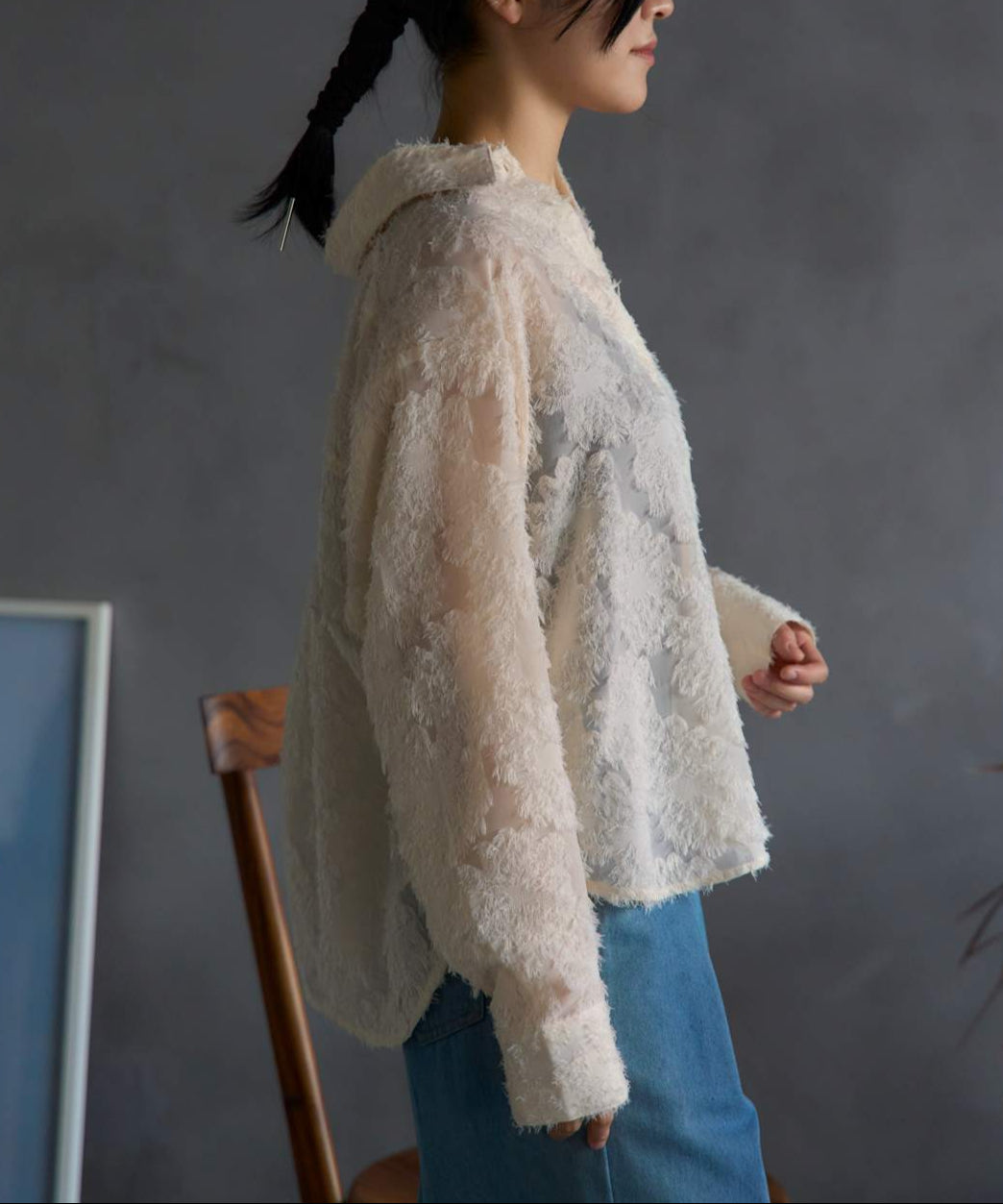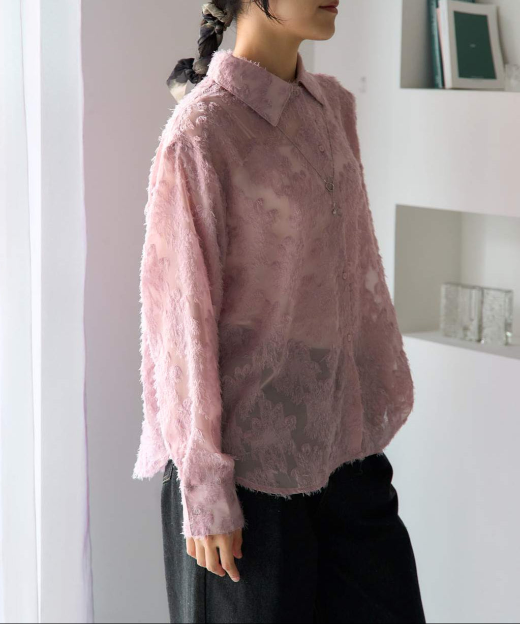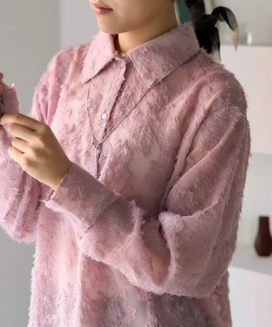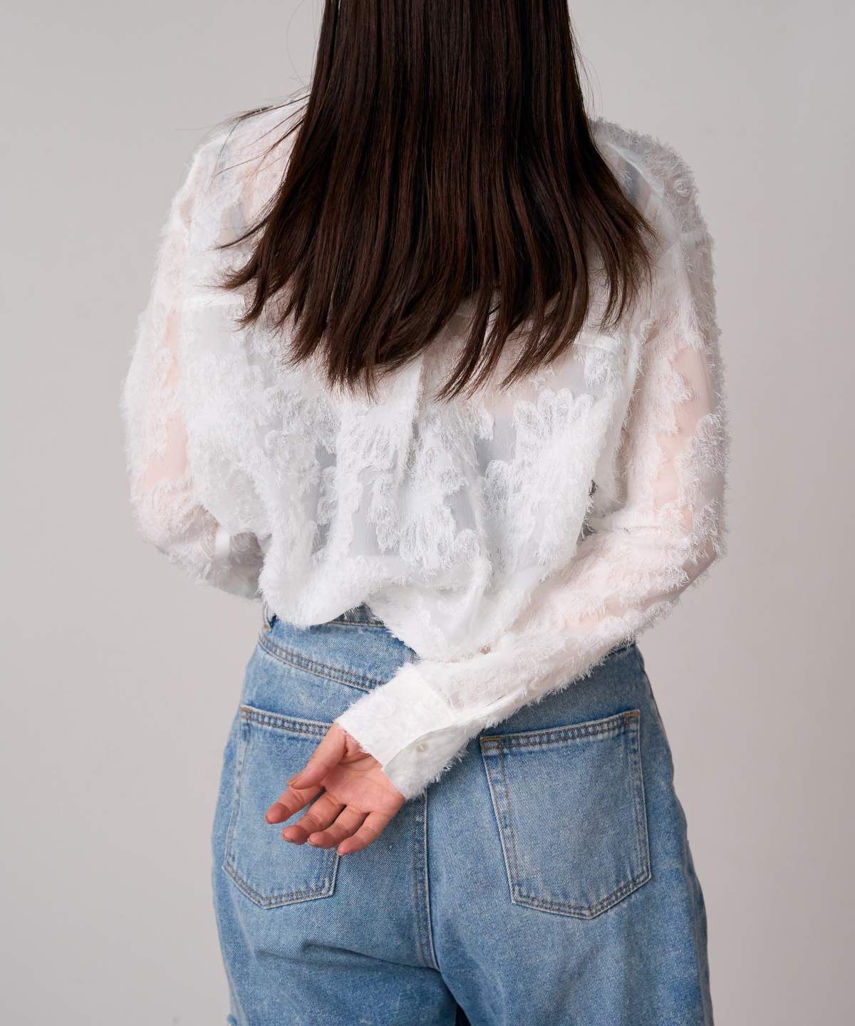 フラワーフリンジの立体感をプラスした華やかシャツ