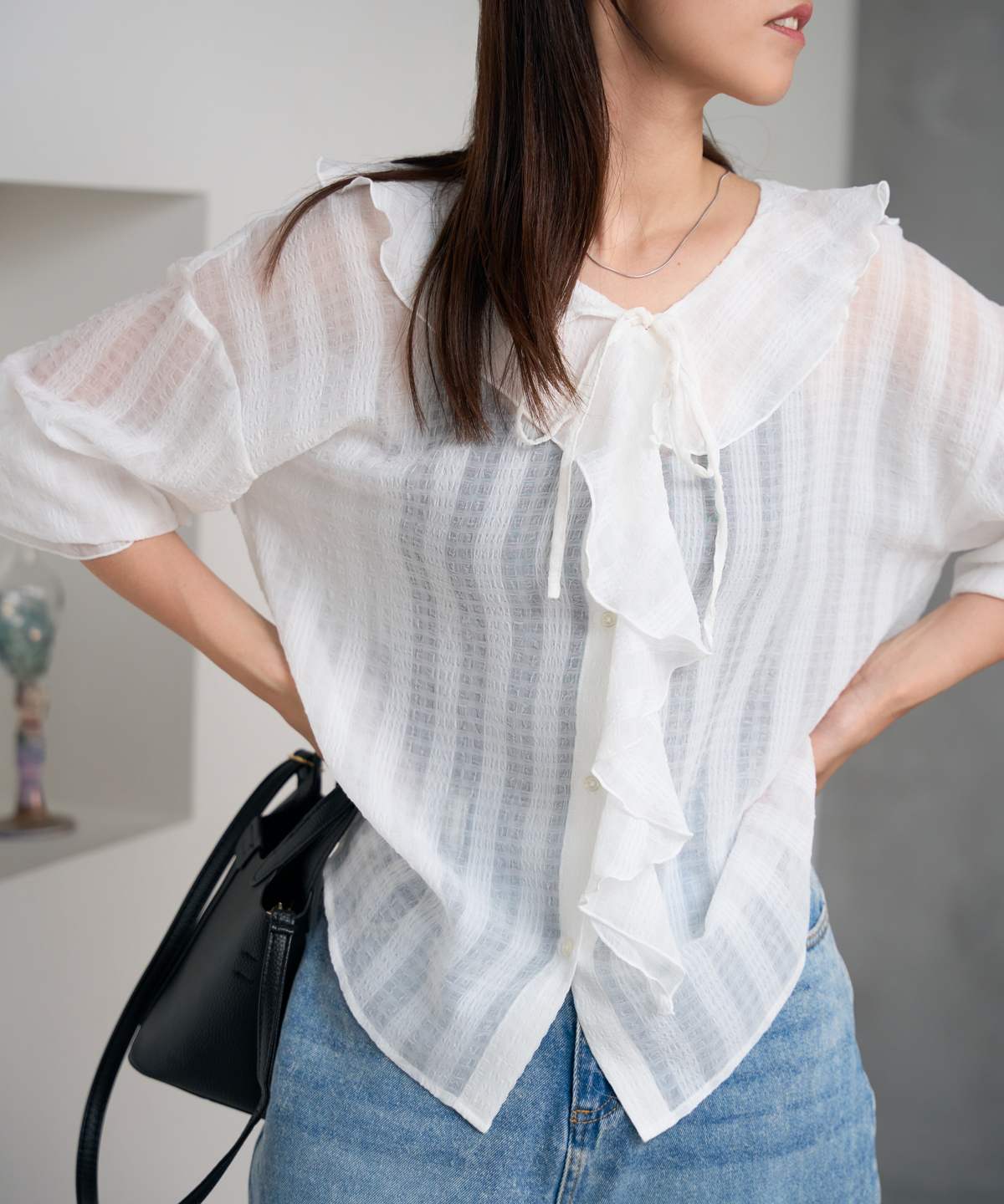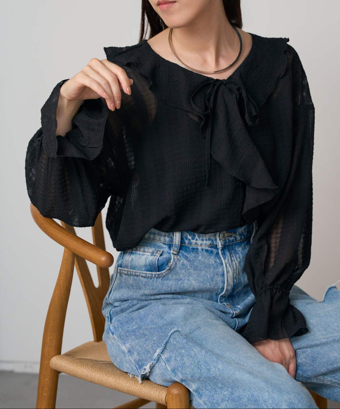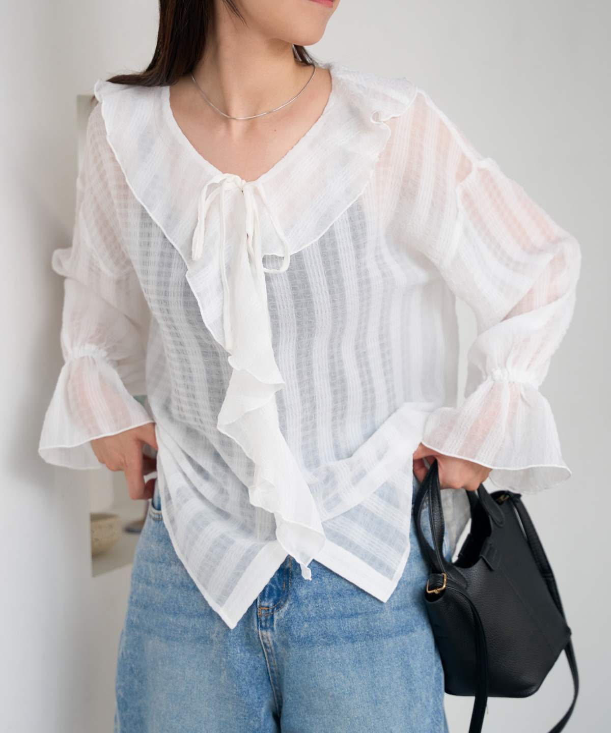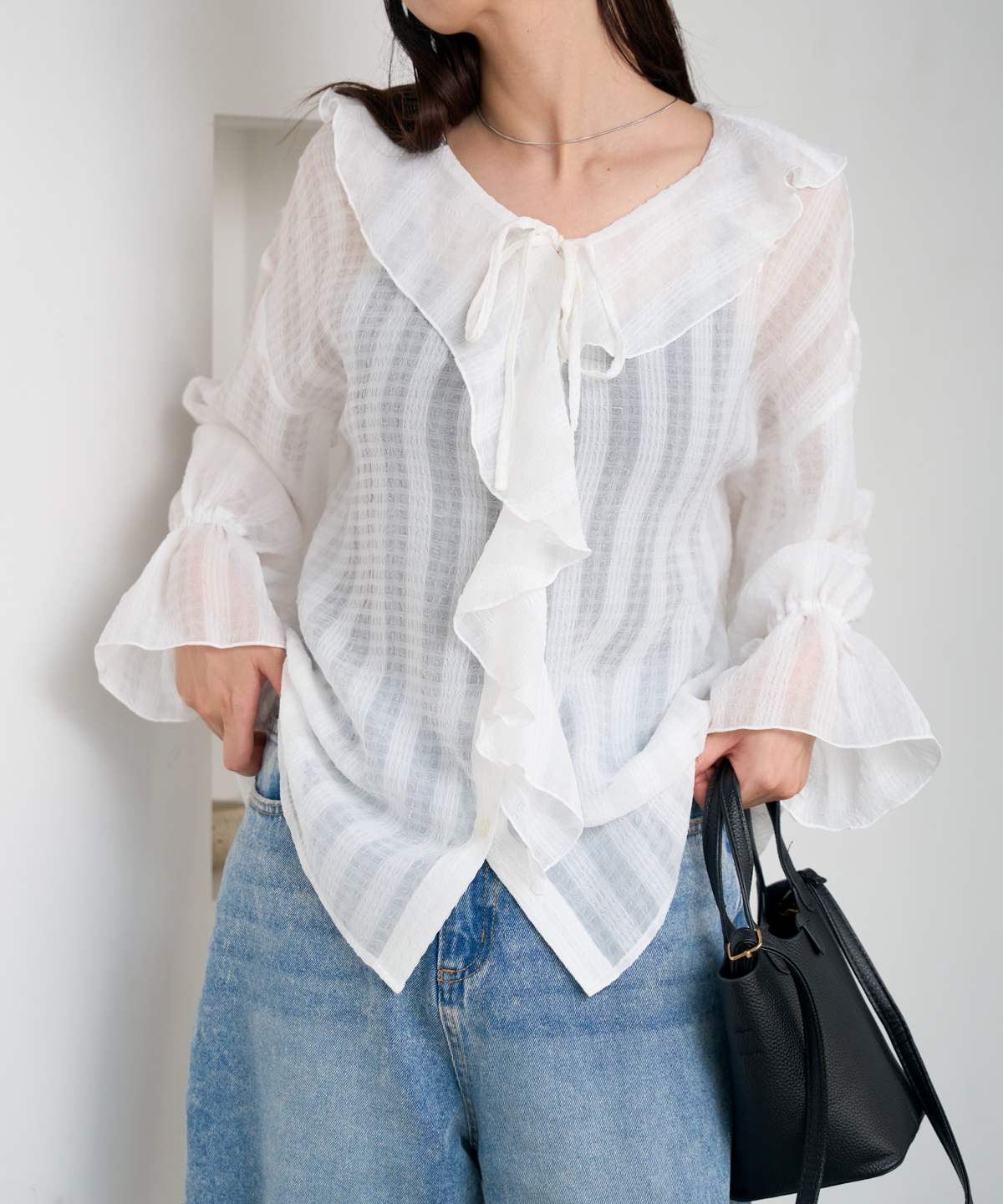 ひらりと揺れるラッフルが華やか、主役級ブラウス