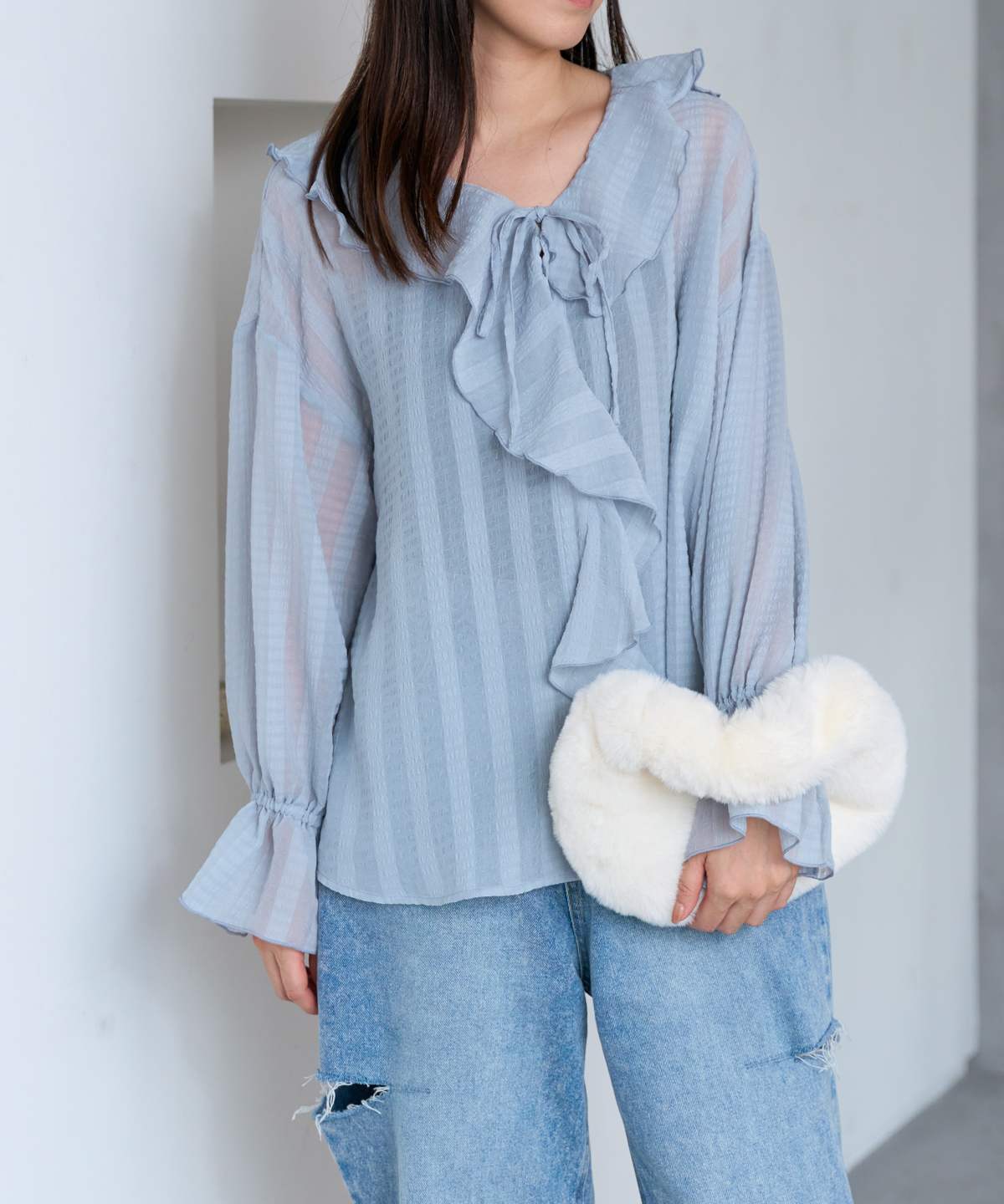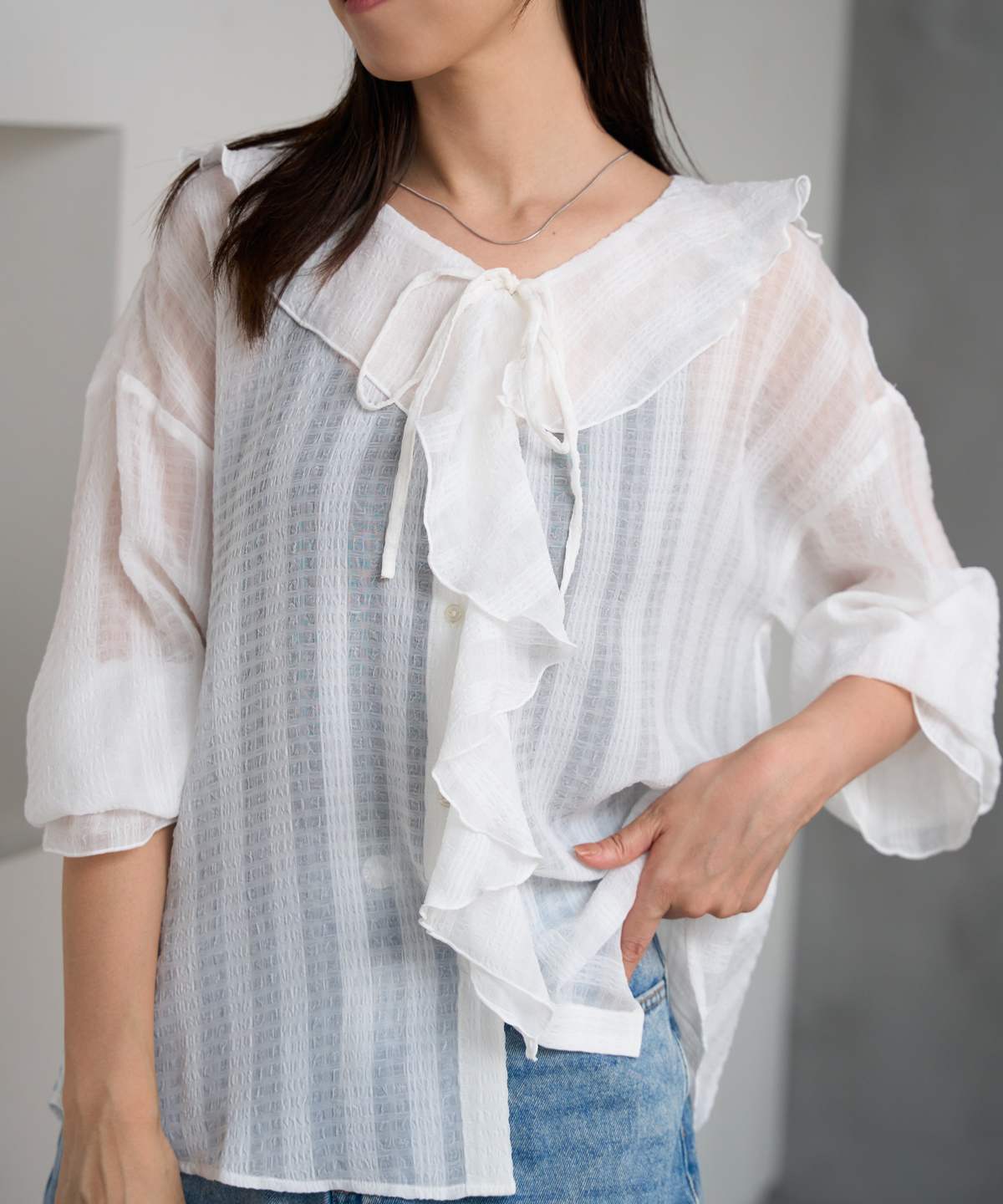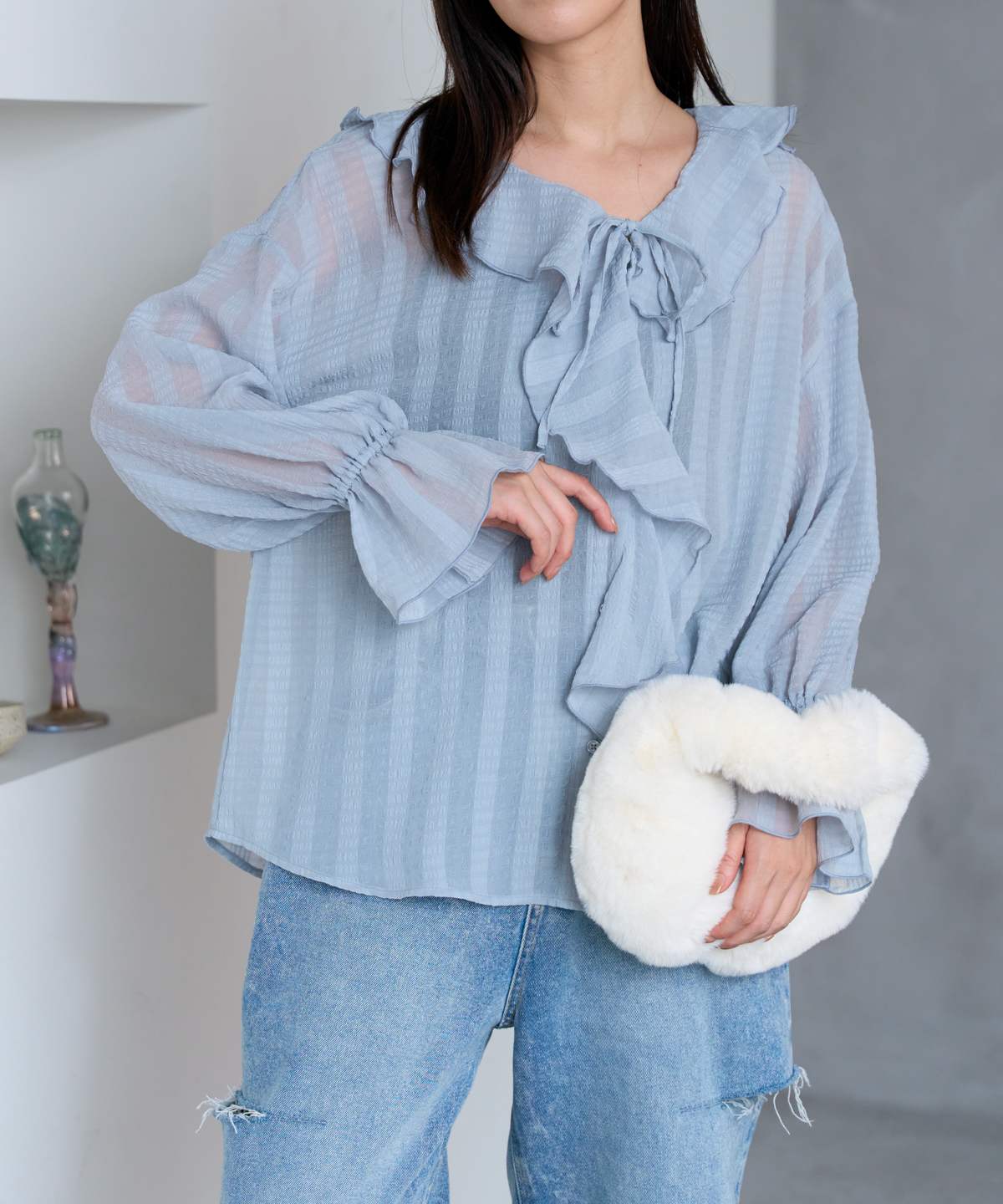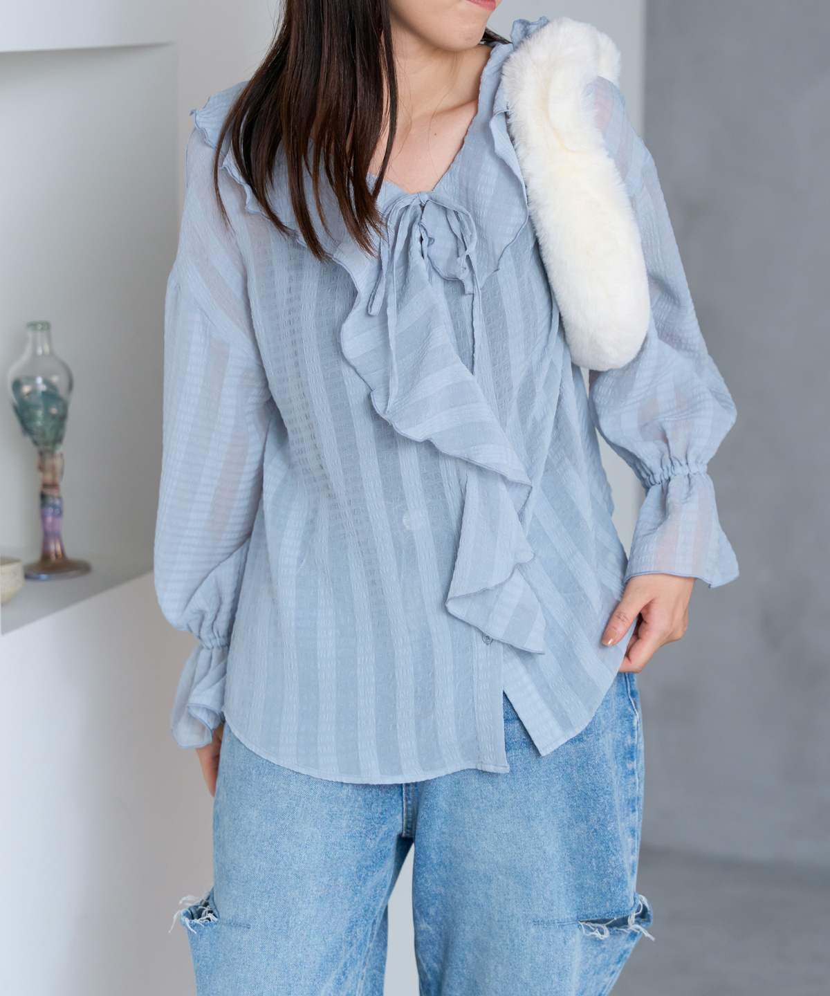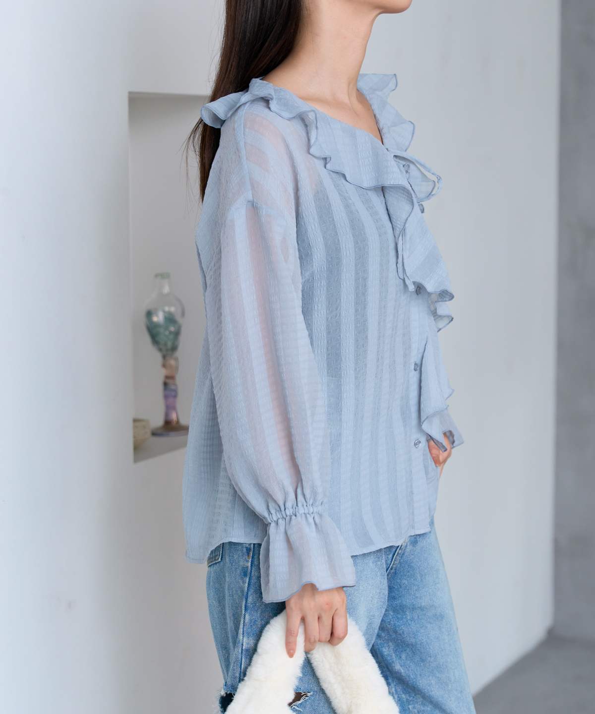 ひらりと揺れるラッフルが華やか、主役級ブラウス
