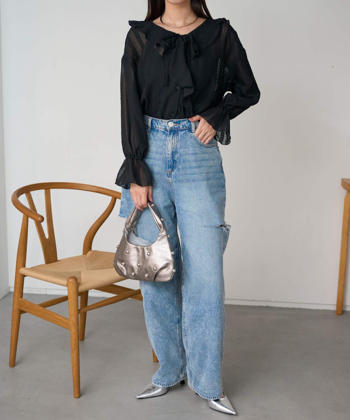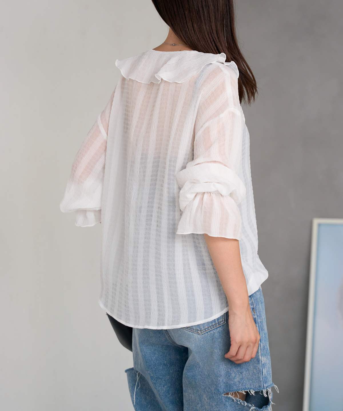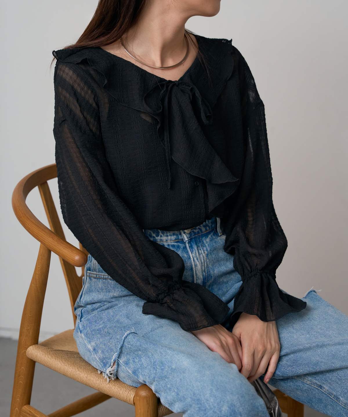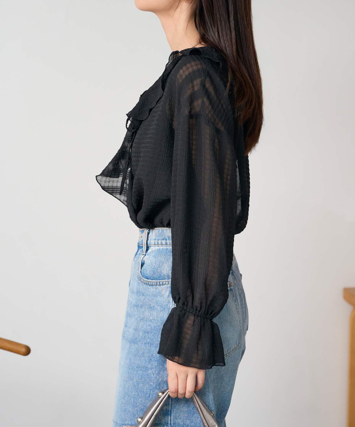 ひらりと揺れるラッフルが華やか、主役級ブラウス